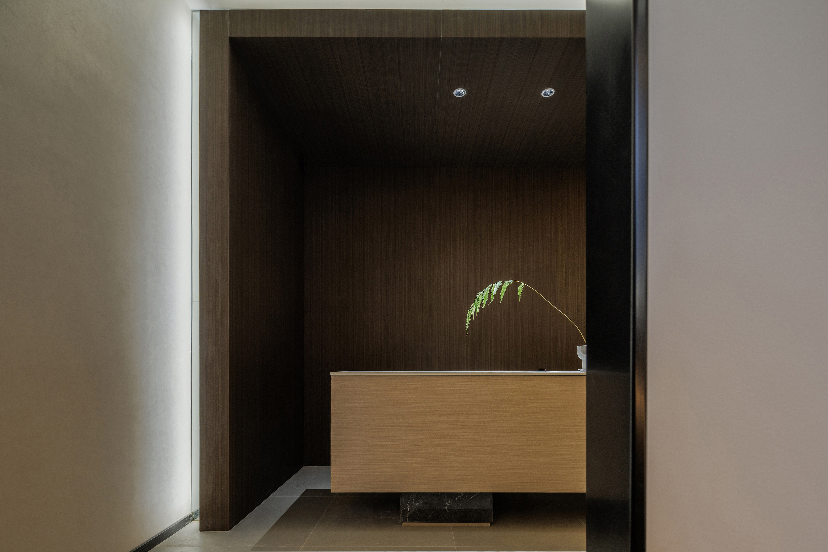 接待前台的摆放进行一定程度的扭转,尽可能的面向入口,迎接宾客,提升客户的体验感. -