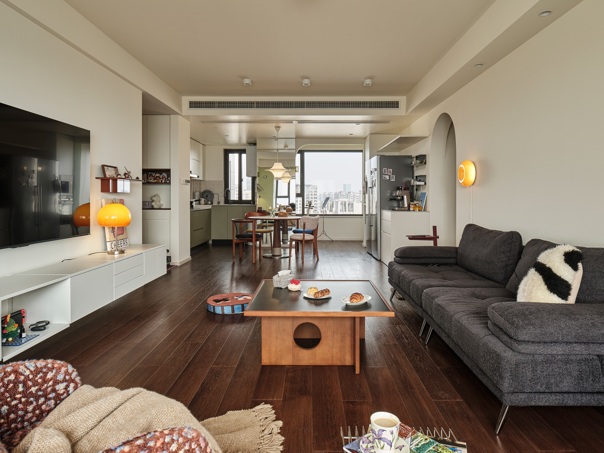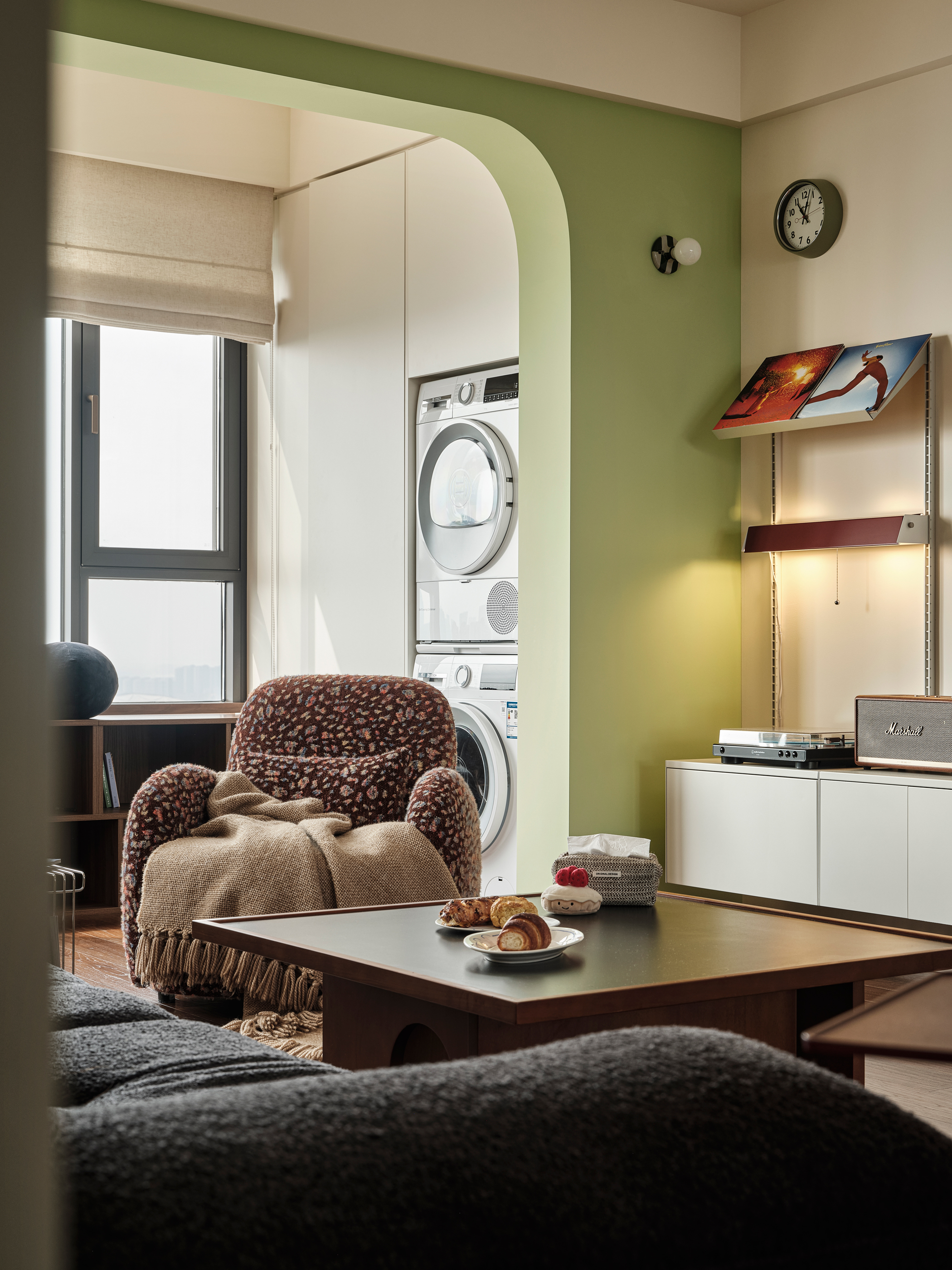 项目定位:屋主喜欢中古混搭风,整体不要太复杂的。我们通过几何色块、木质包浆,让这个家成为包豪斯与复古的调色盘。