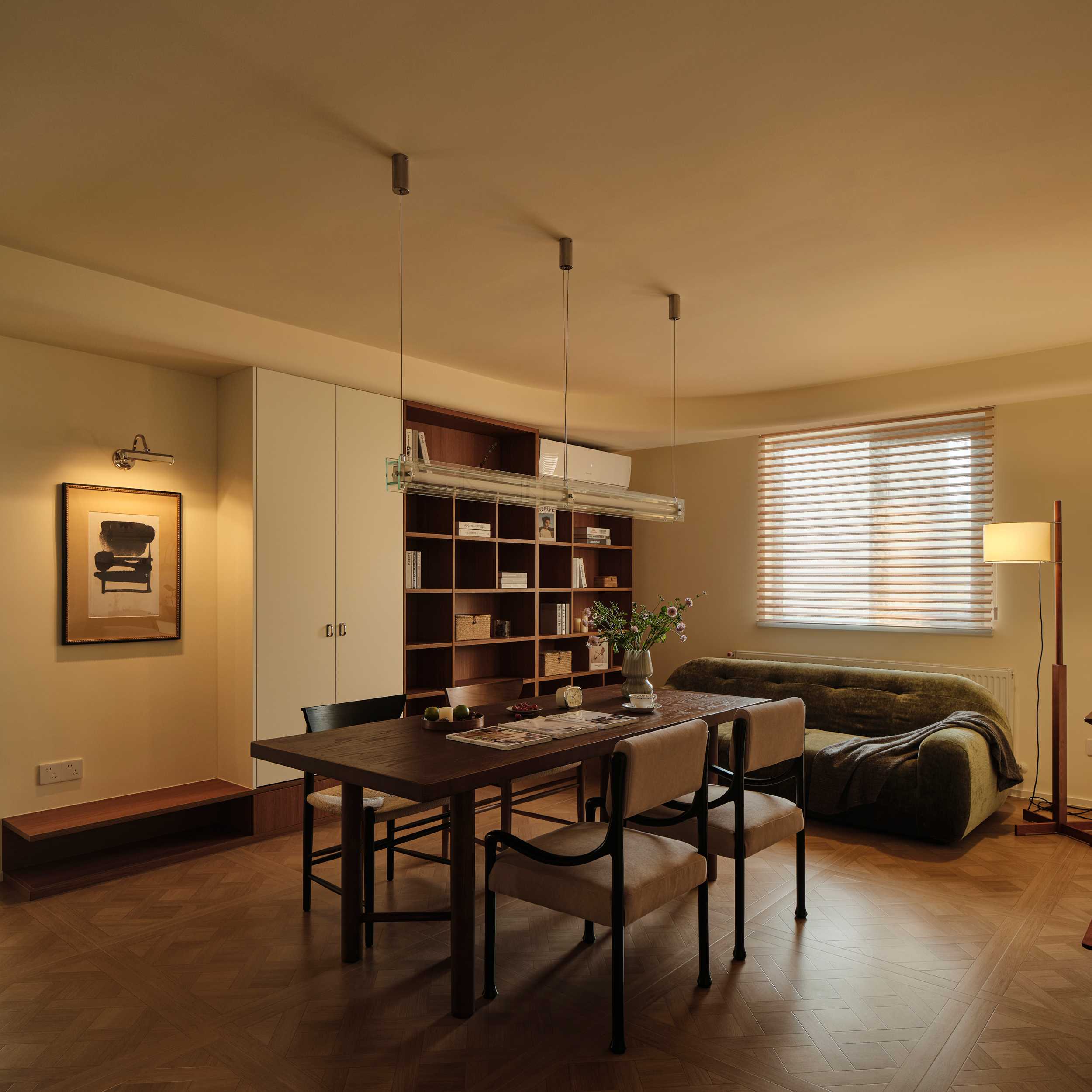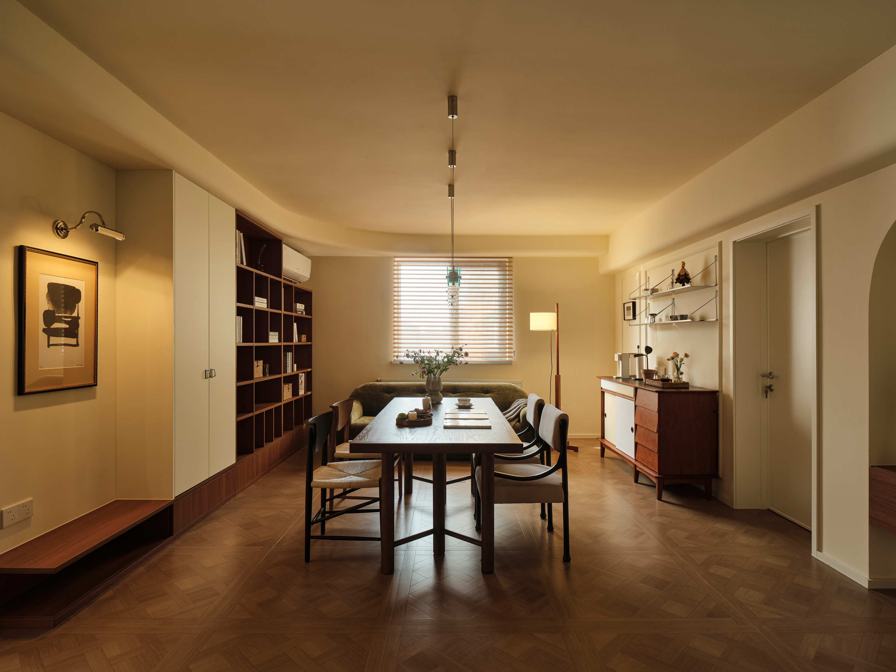屋主喜欢温柔复古风,家中有两位男孩。我们将此屋打造为温柔色调中的成长天地,复古与实用共融的慢调空间。