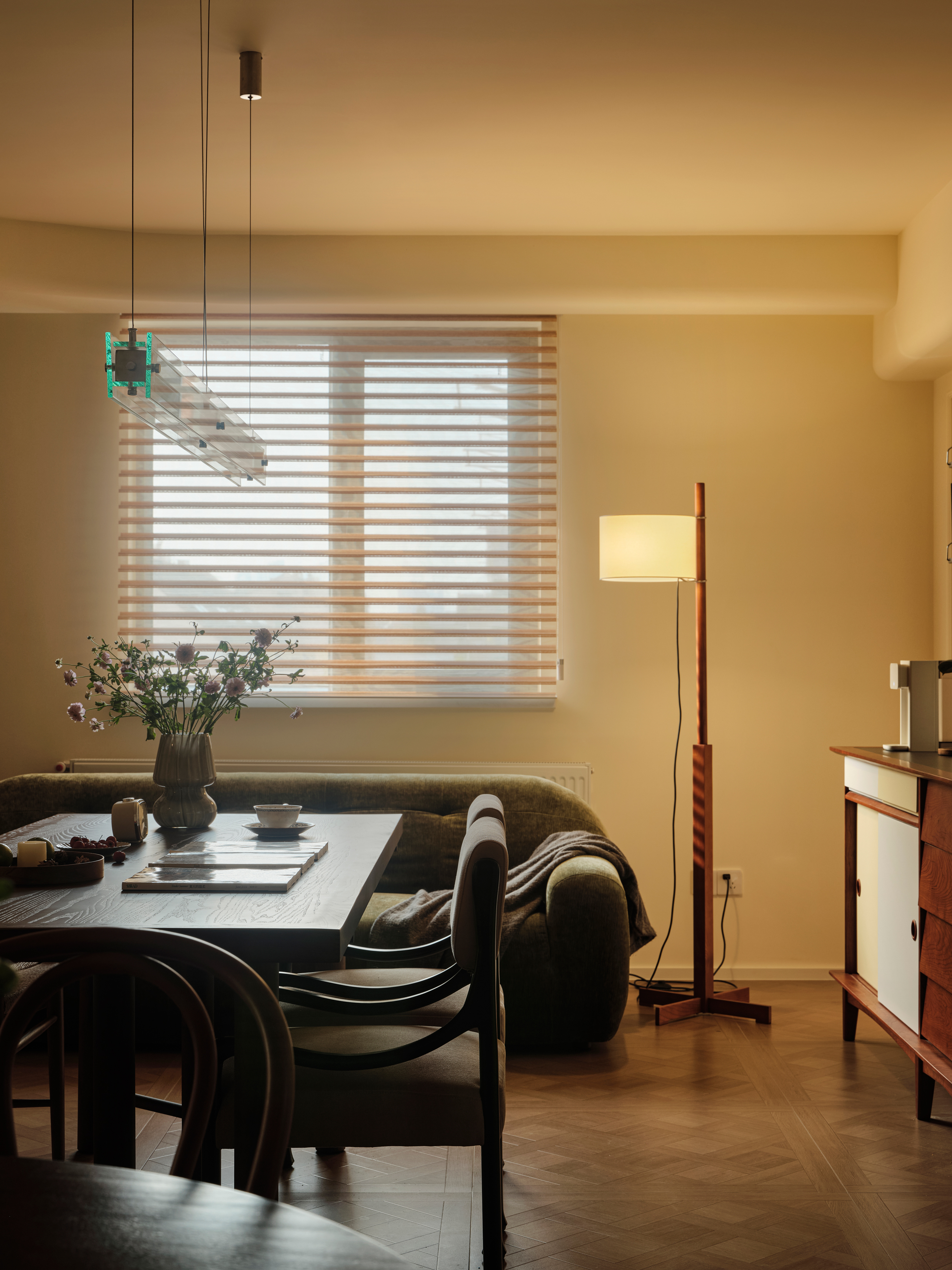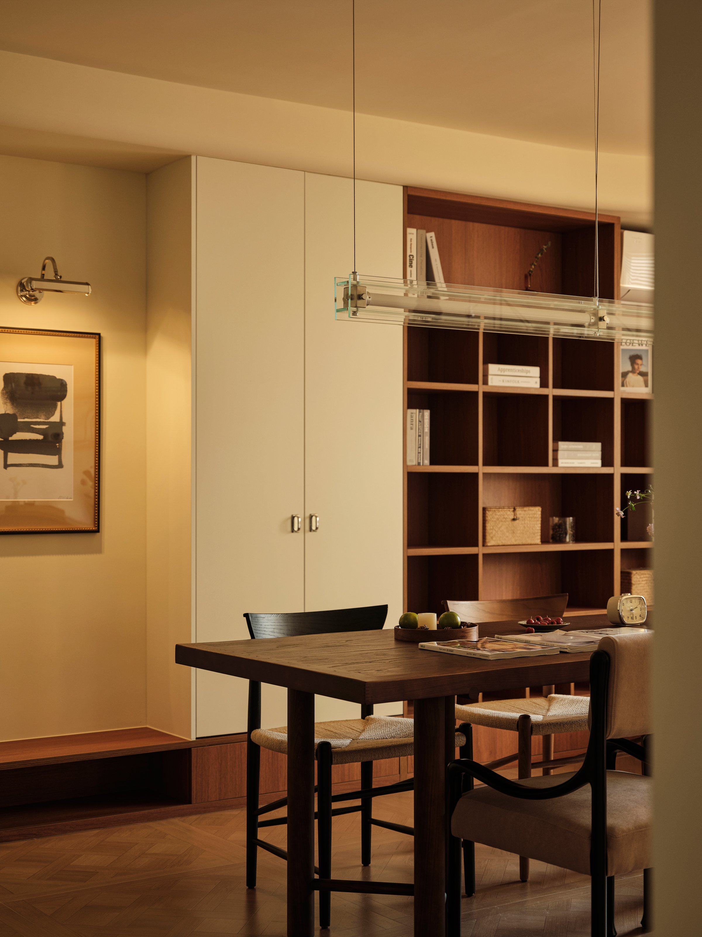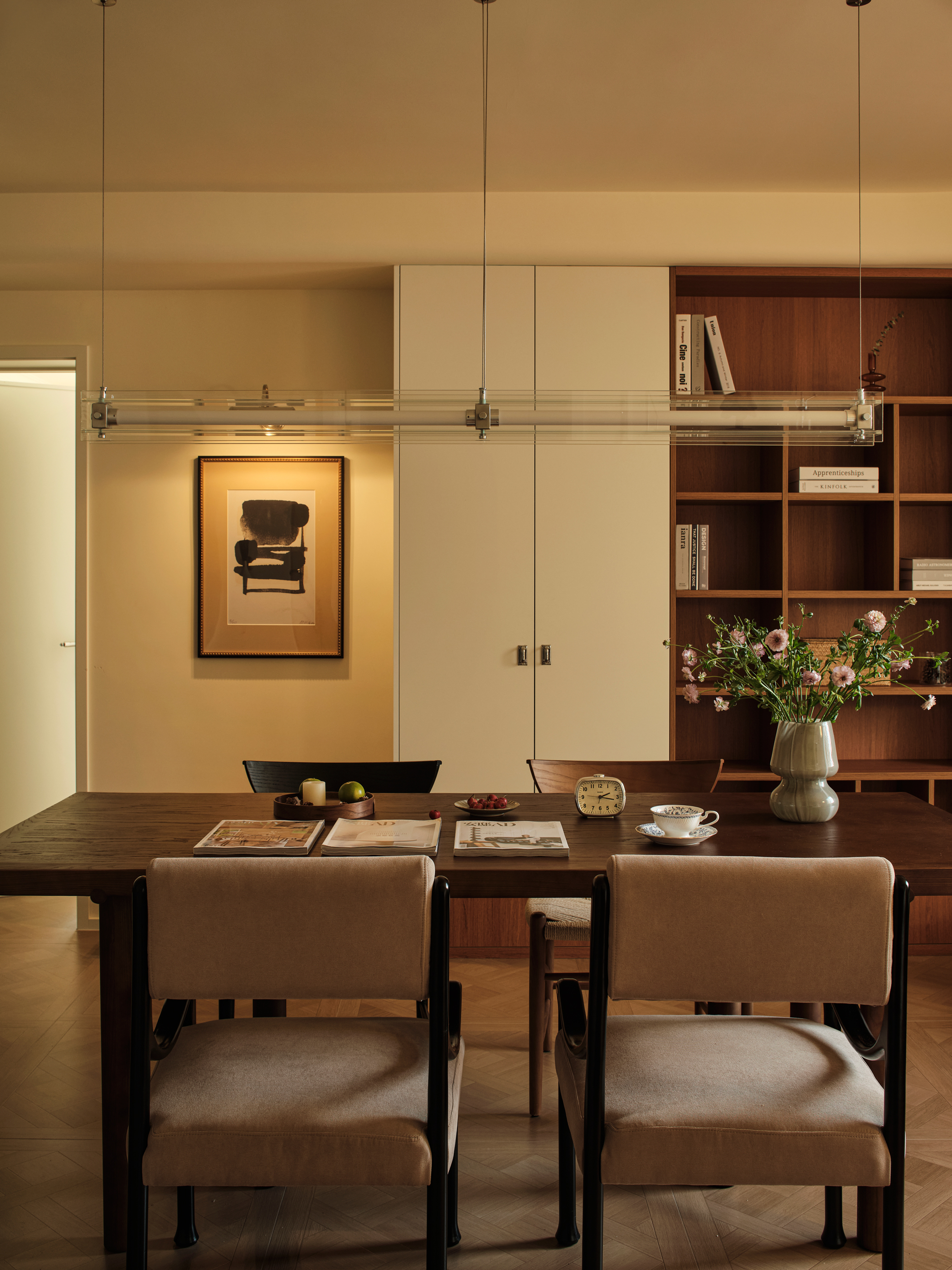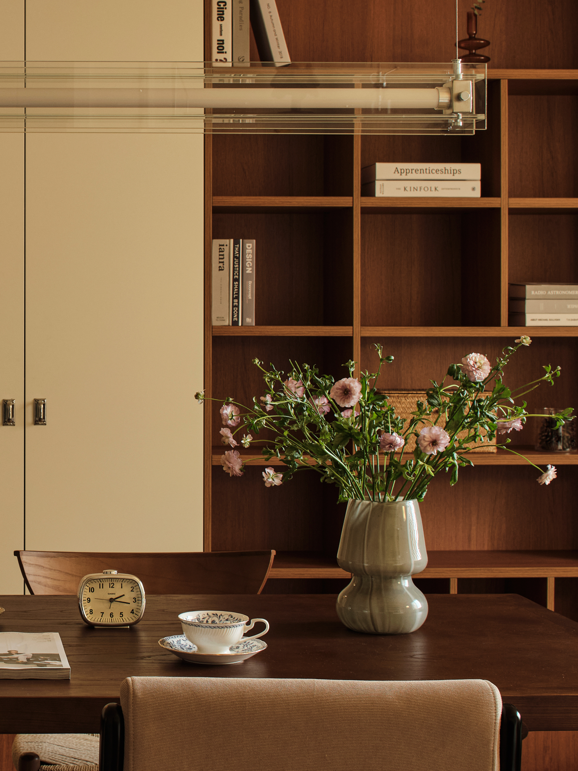 我们选用了一系列温柔的低饱和度色彩,再以深棕色作为点缀,营造出一种时光缓缓流淌的静谧氛围。复古元素的融入,让空间充满故事感,每一处细节都在诉说着生活的温暖与格调。