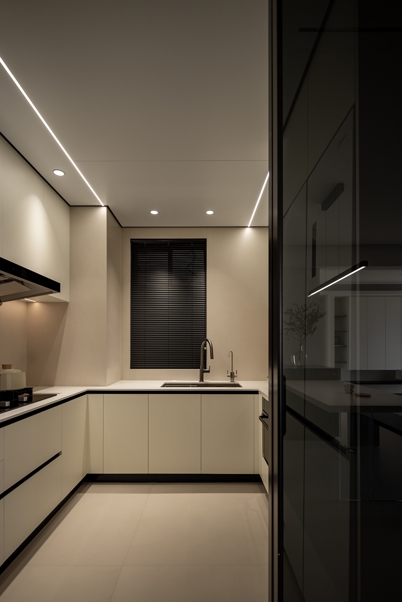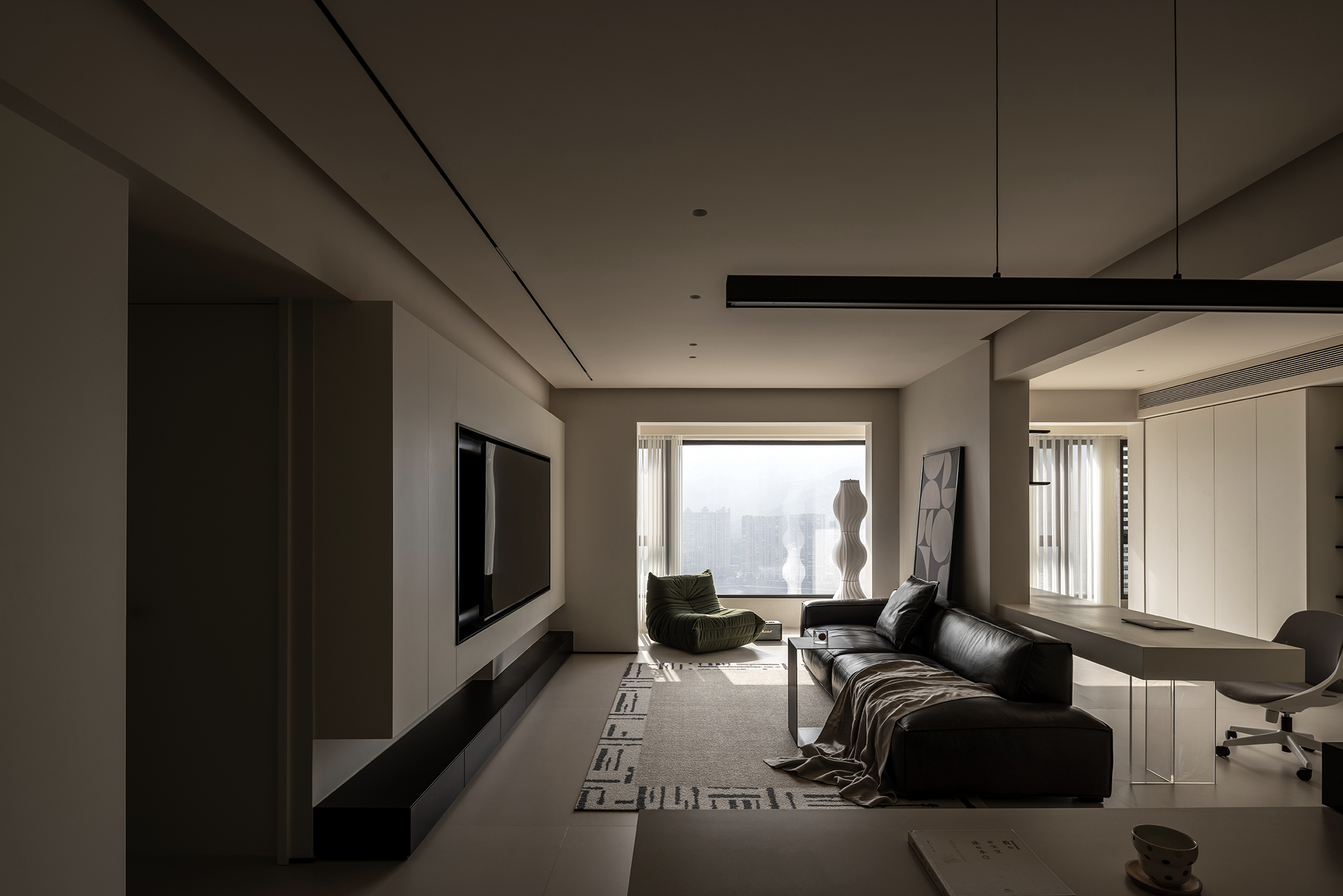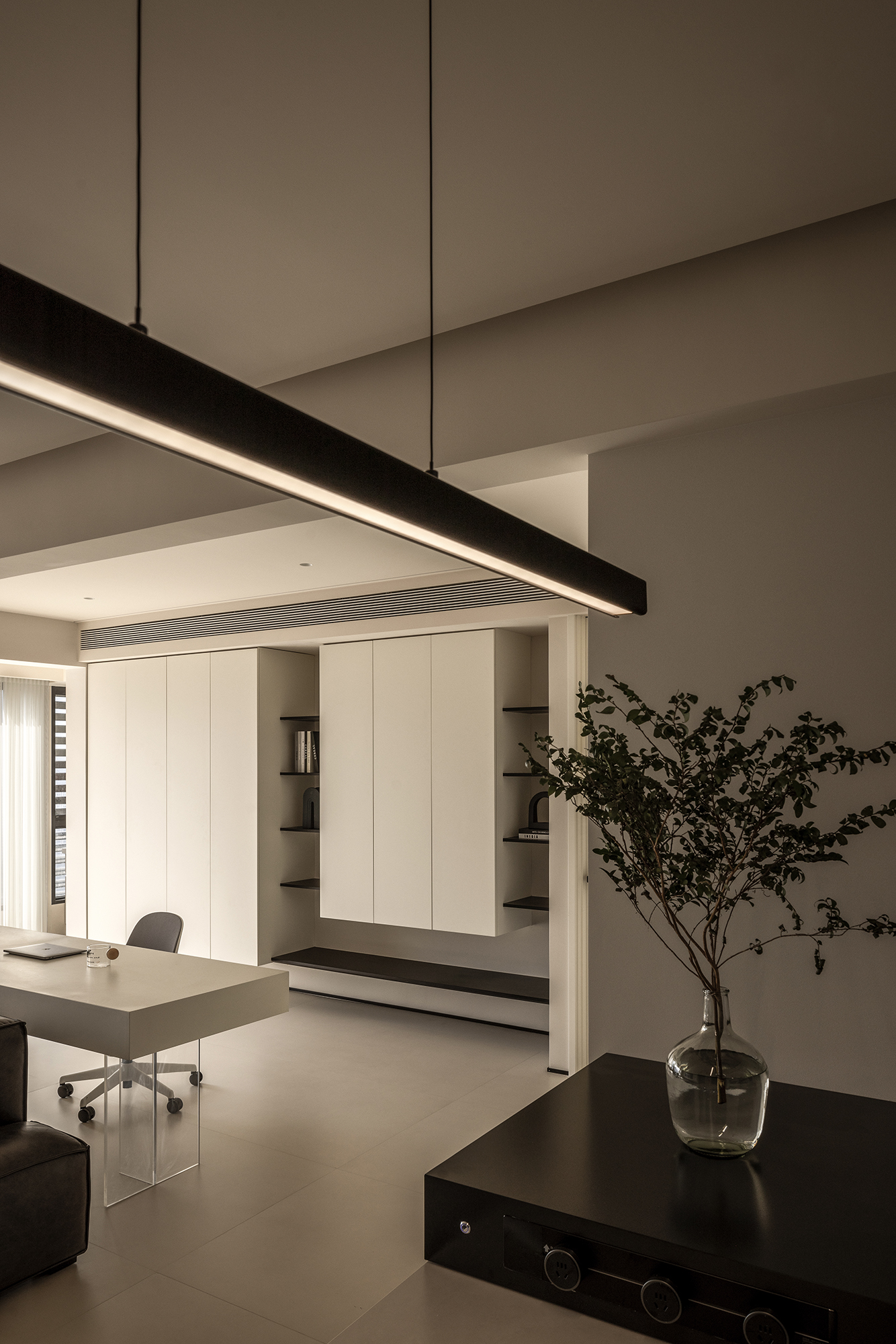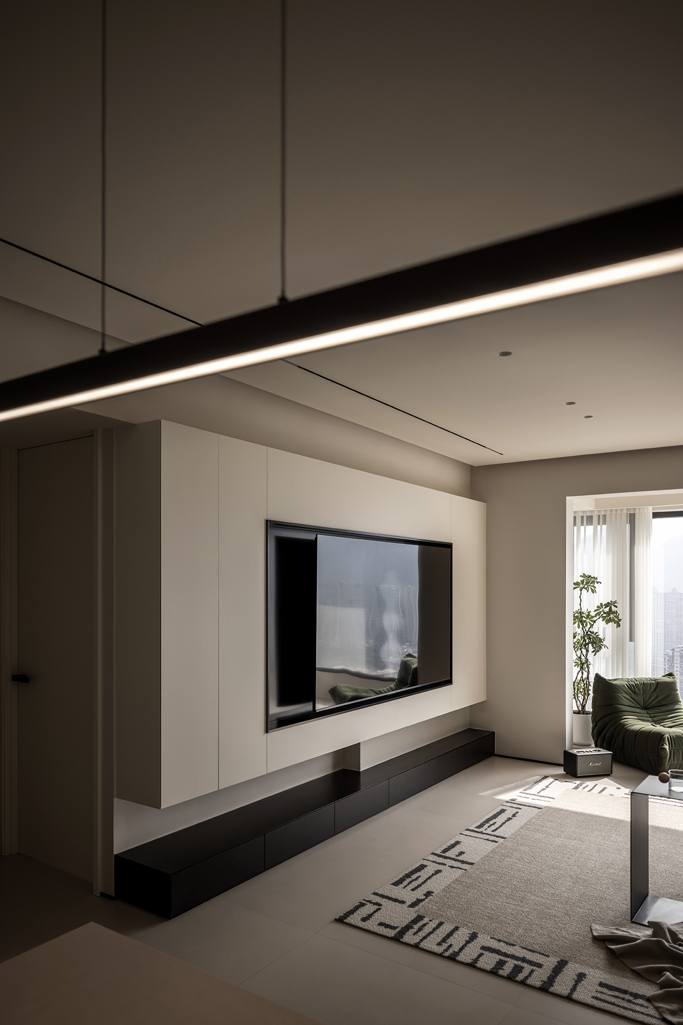 隐去冗余结构,用线性光带切割空间维度,让墙面与空气共生呼吸感 -