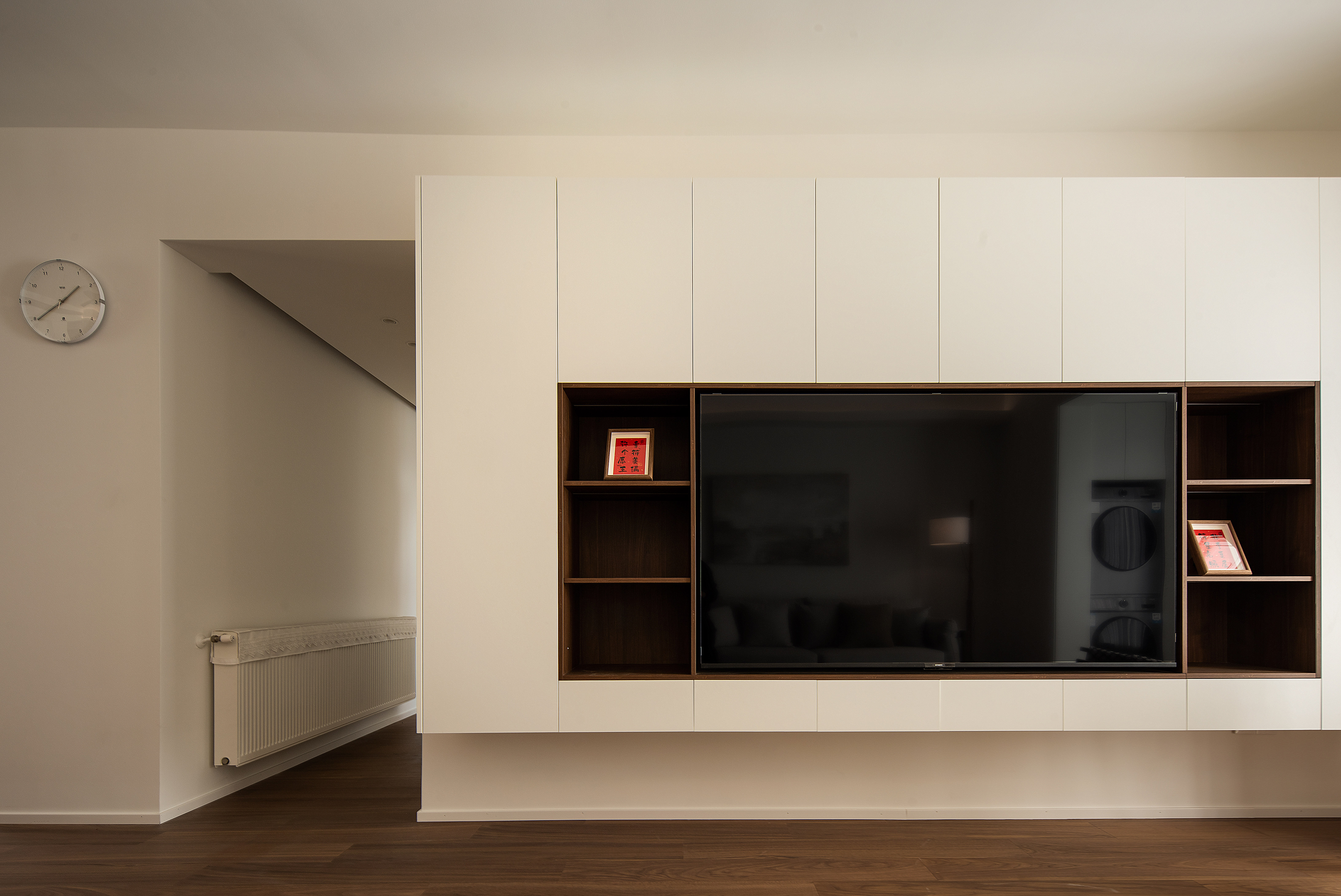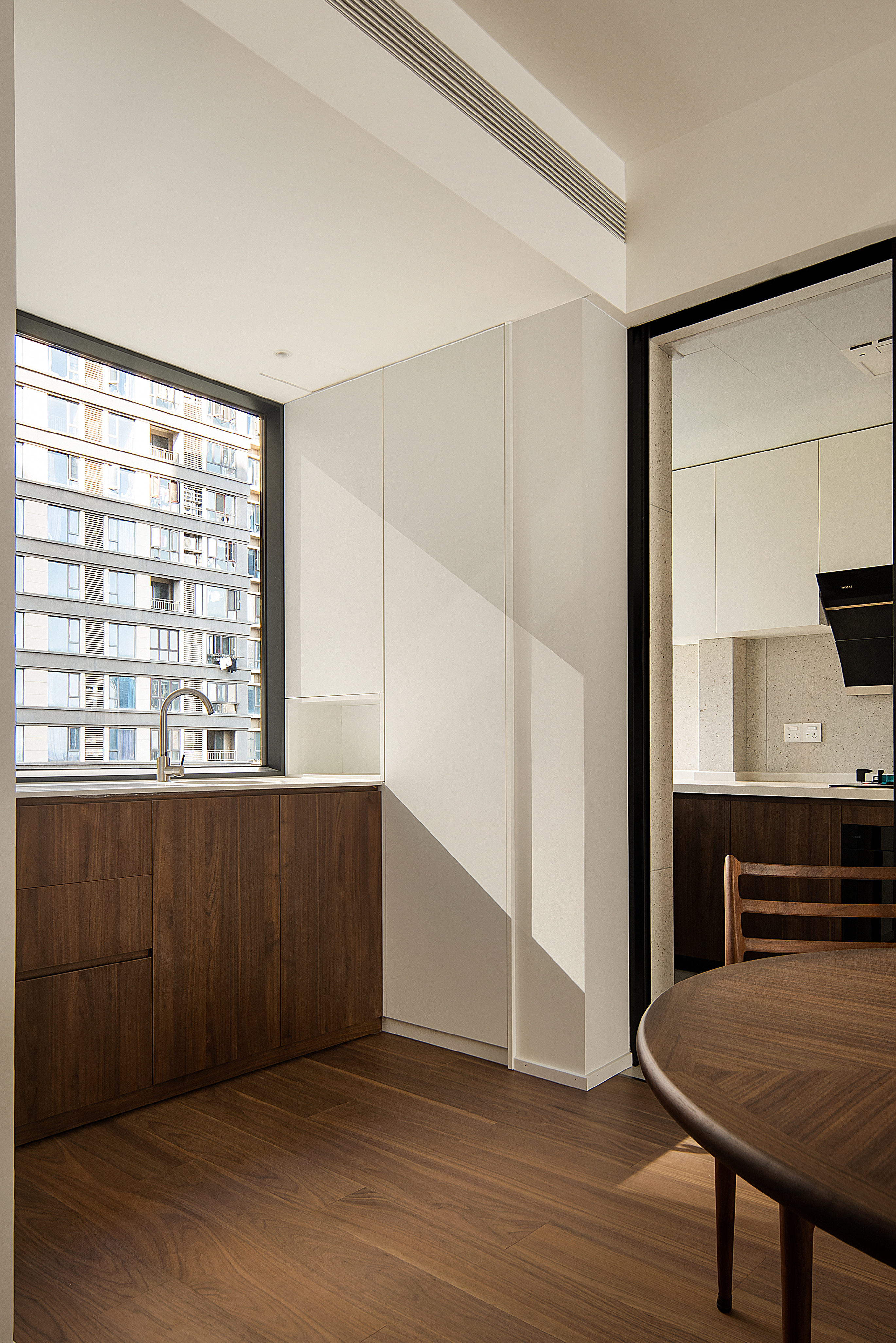 空间布局:原有户型结构方正,公共生活区的通透及采光性都较好,但主卧空间较小。我们针对现状,对空间进行重新梳理,将公共生活区的两处阳台有效利用,同时优化了主卧布局,充分提升了居住体验感。
