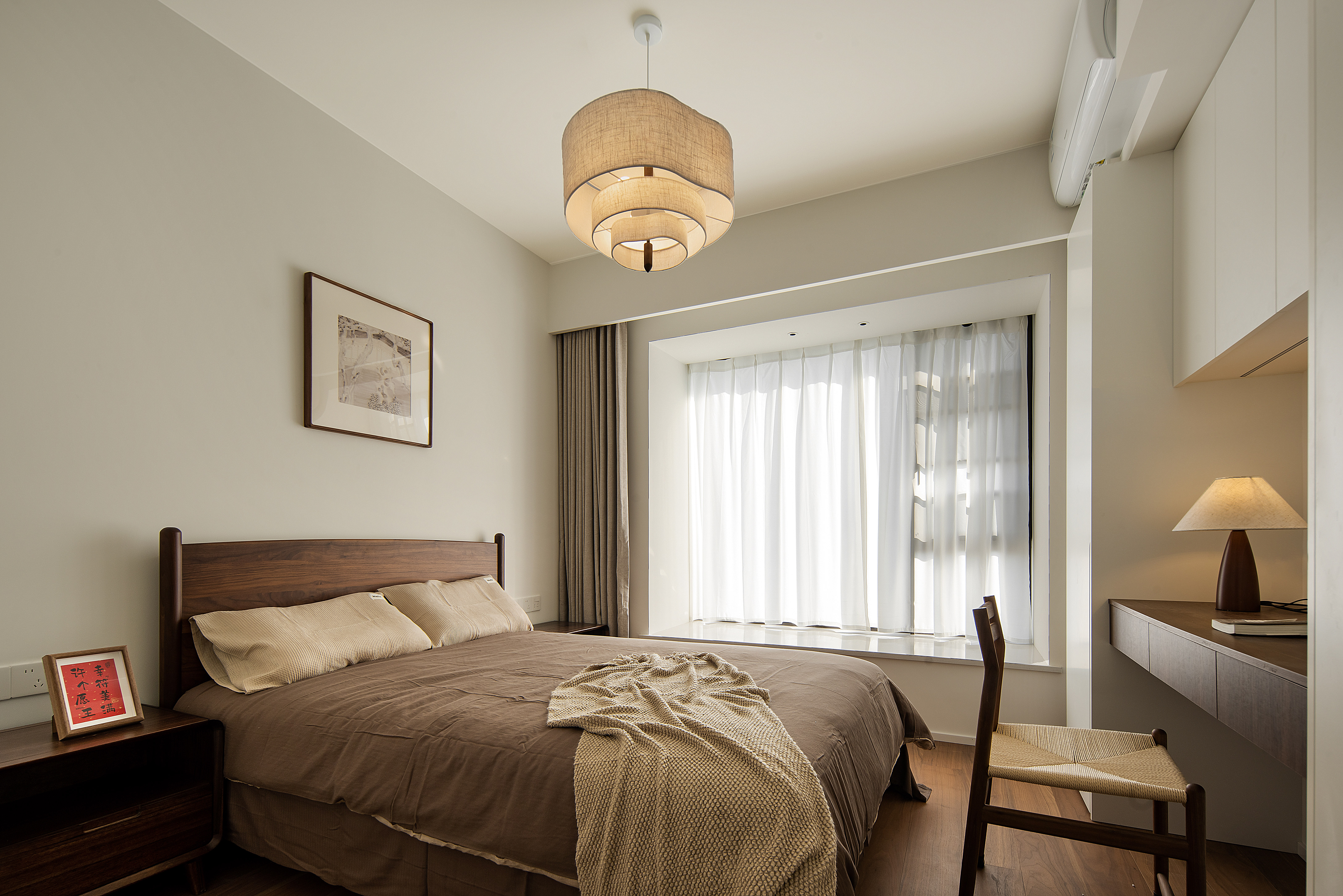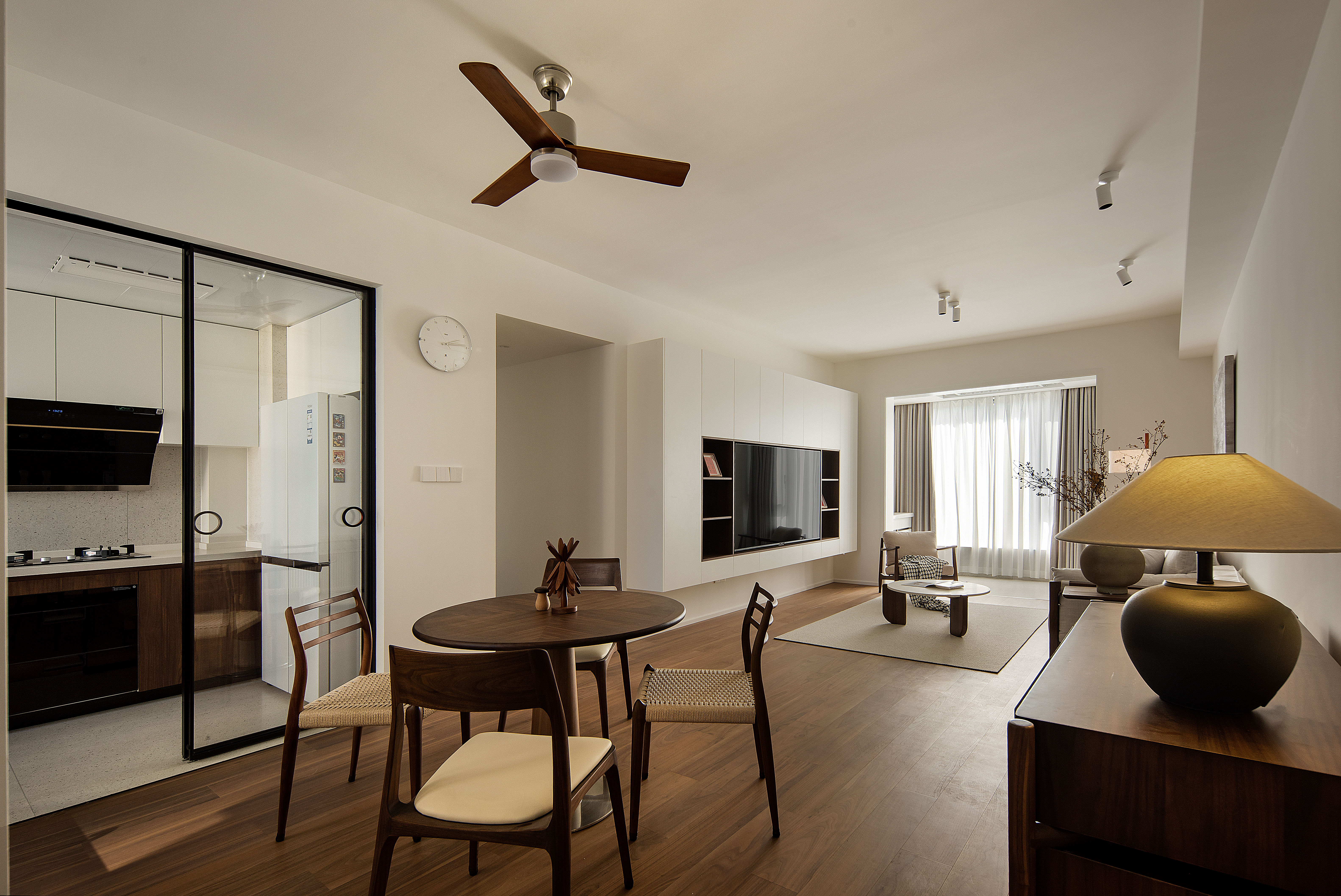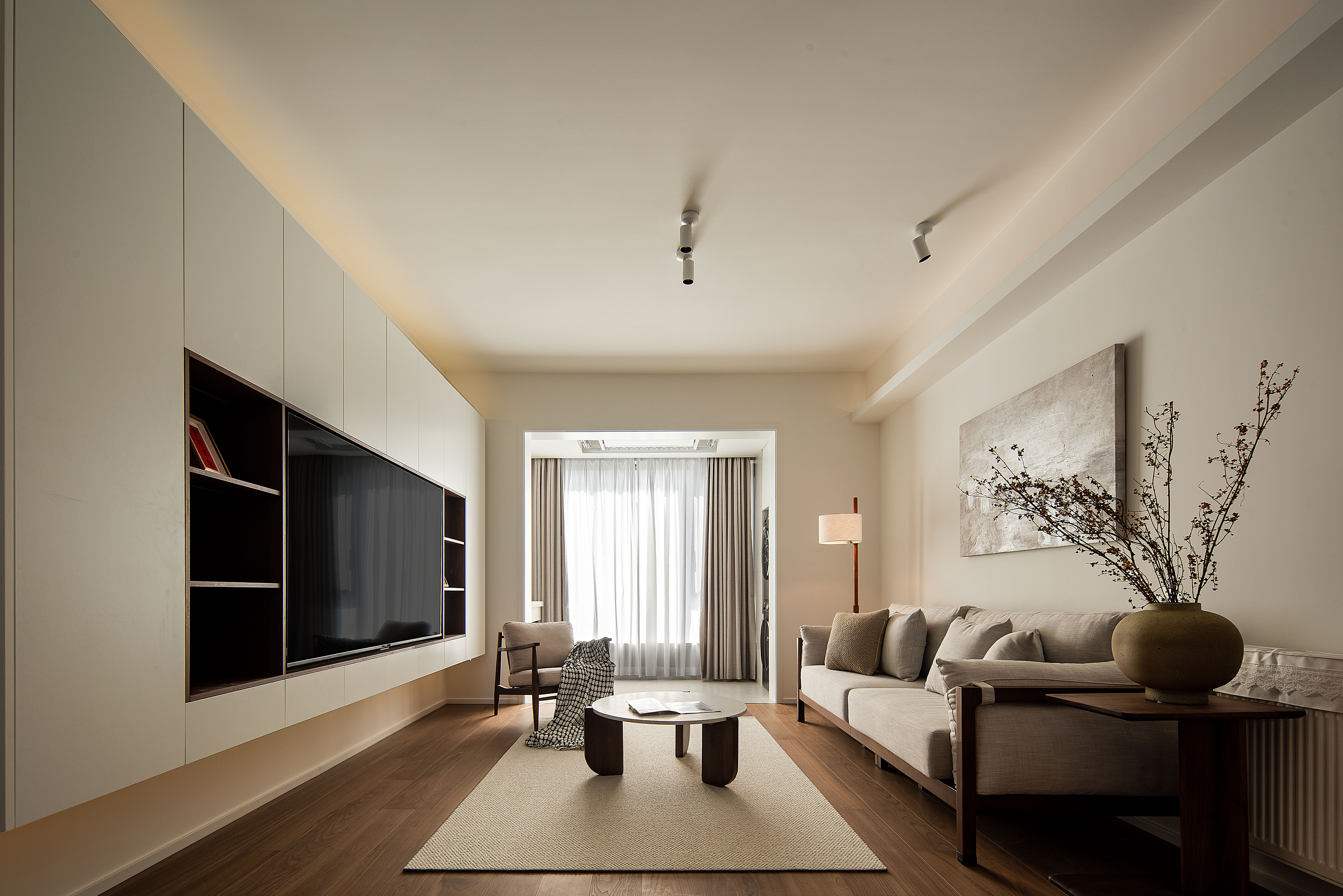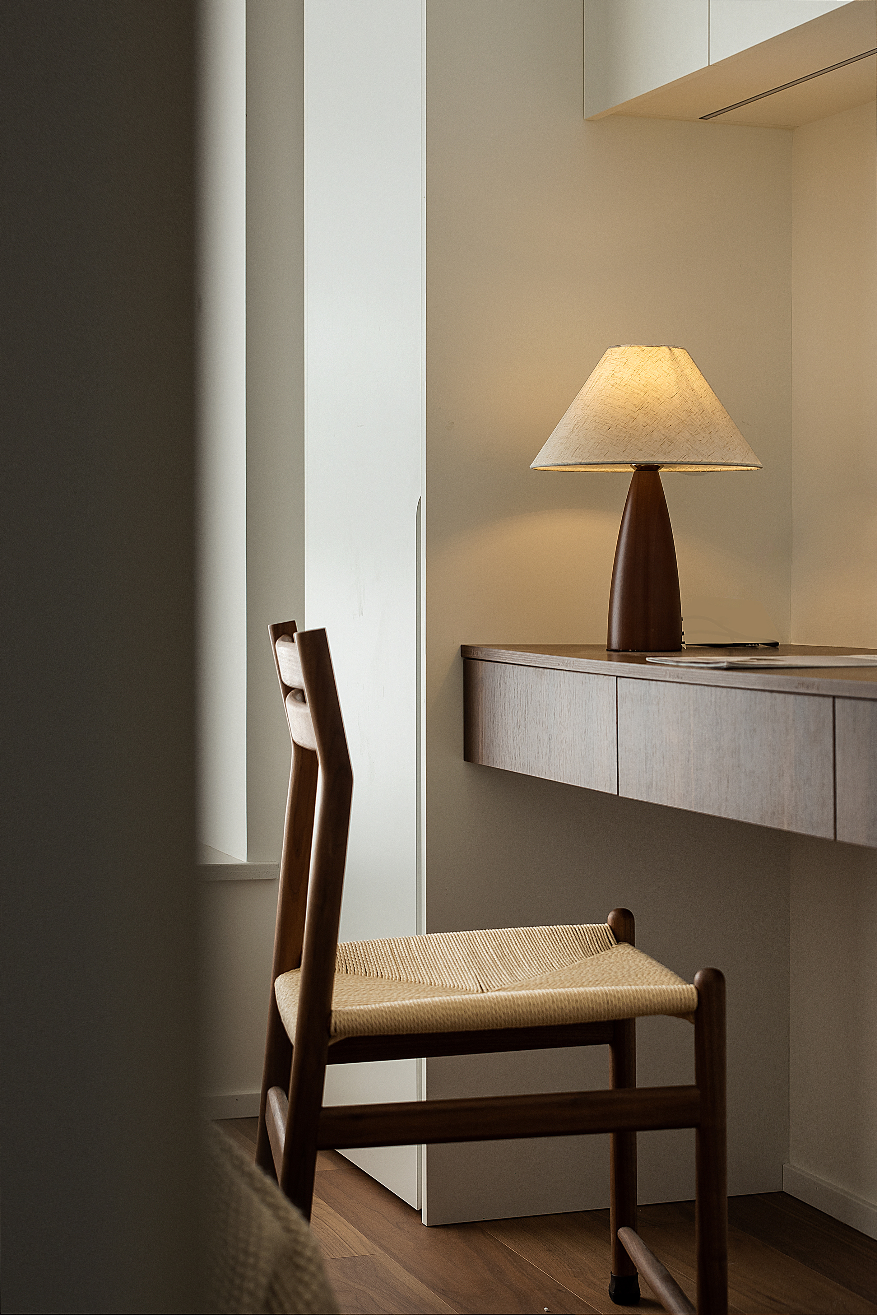 空间意境:摒弃了传统养老宅的保守与医疗感,致力于打造一个“隐龄的、温暖的、体面的”现代居家空间。我们采用现代简约融合东方禅意的风格基调,以浅色调墙面为基底,搭配木质家具,营造出温馨且雅致的氛围,打破传统养老房沉闷感,既符合长辈对舒适居家的需求,又具现代美学感。