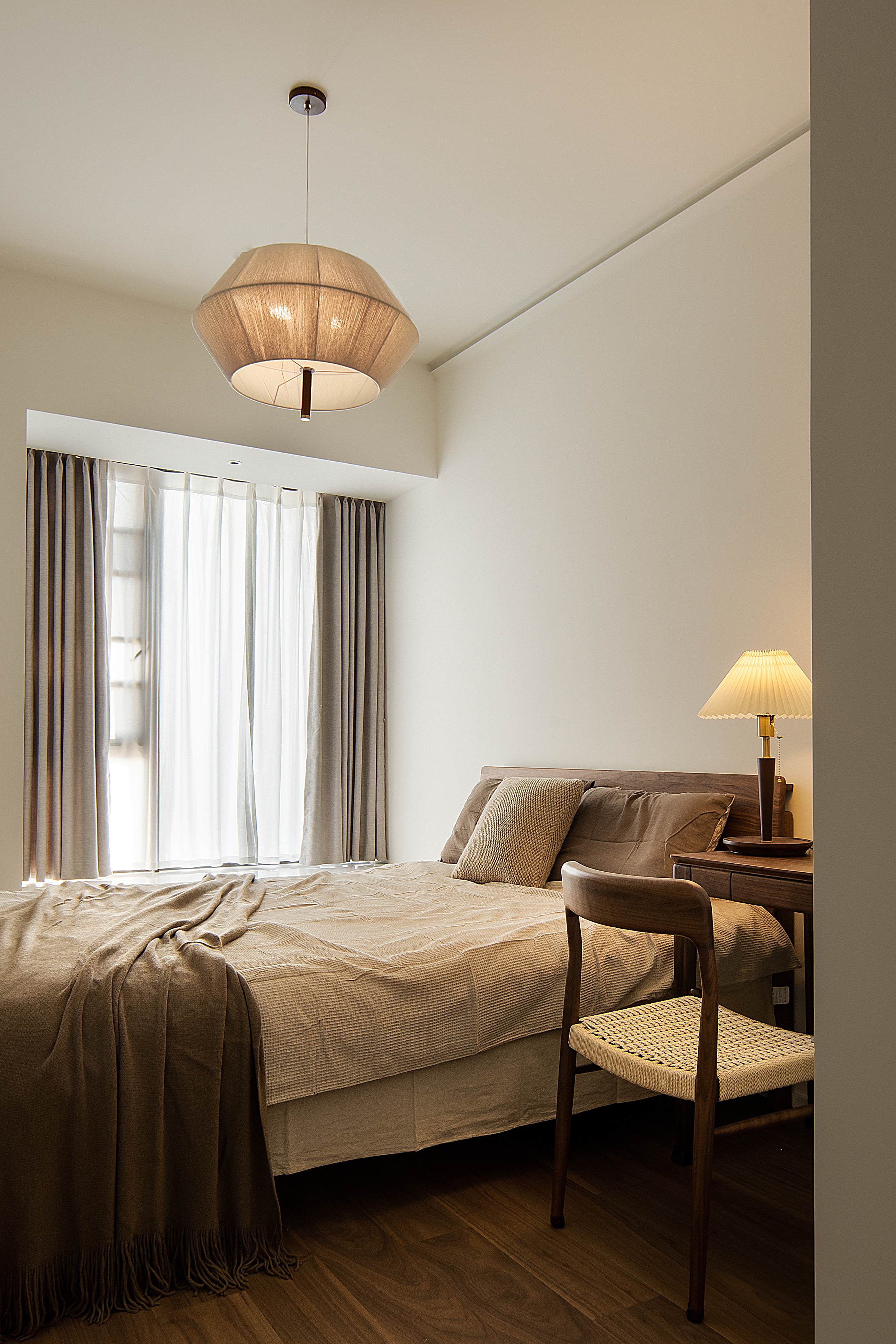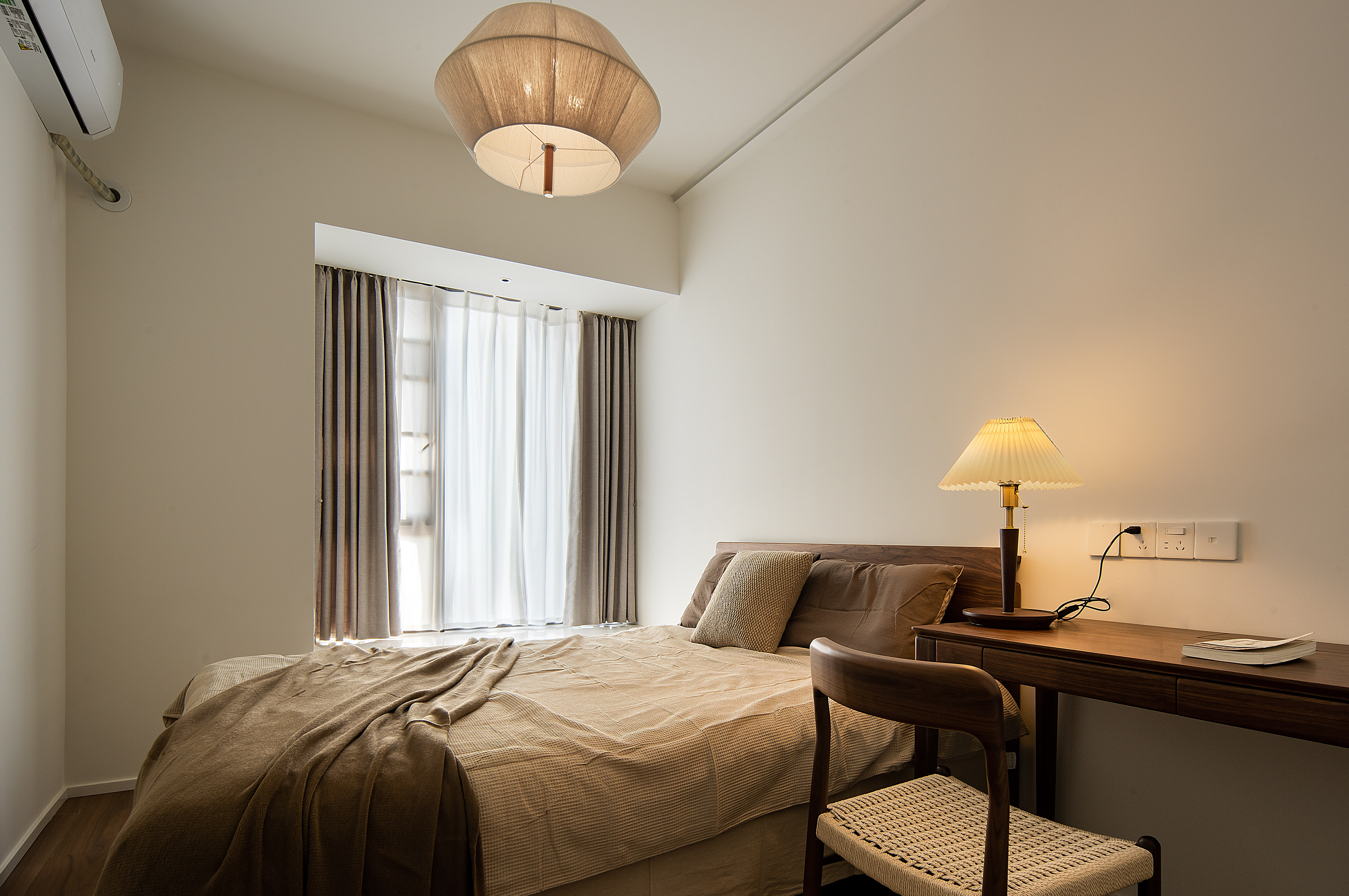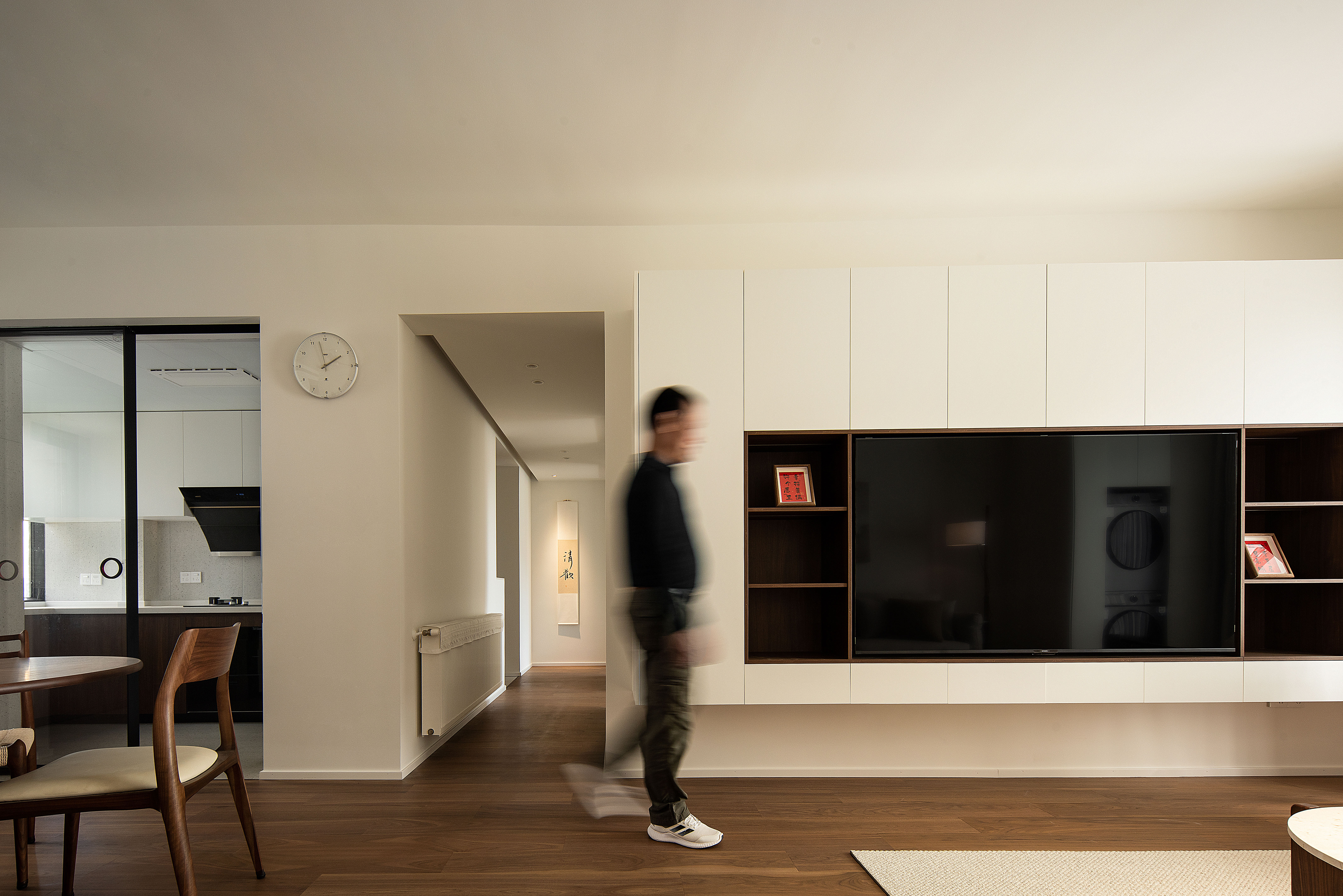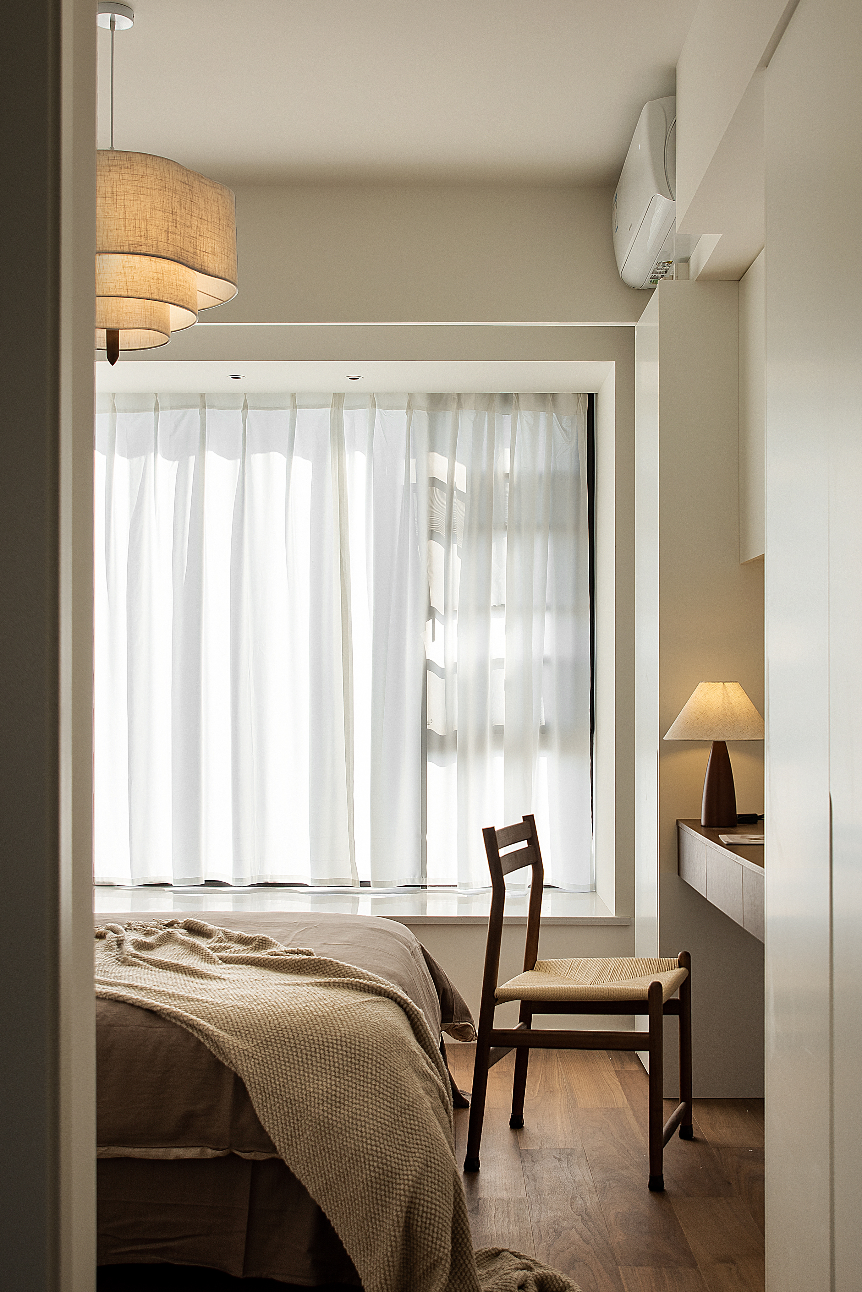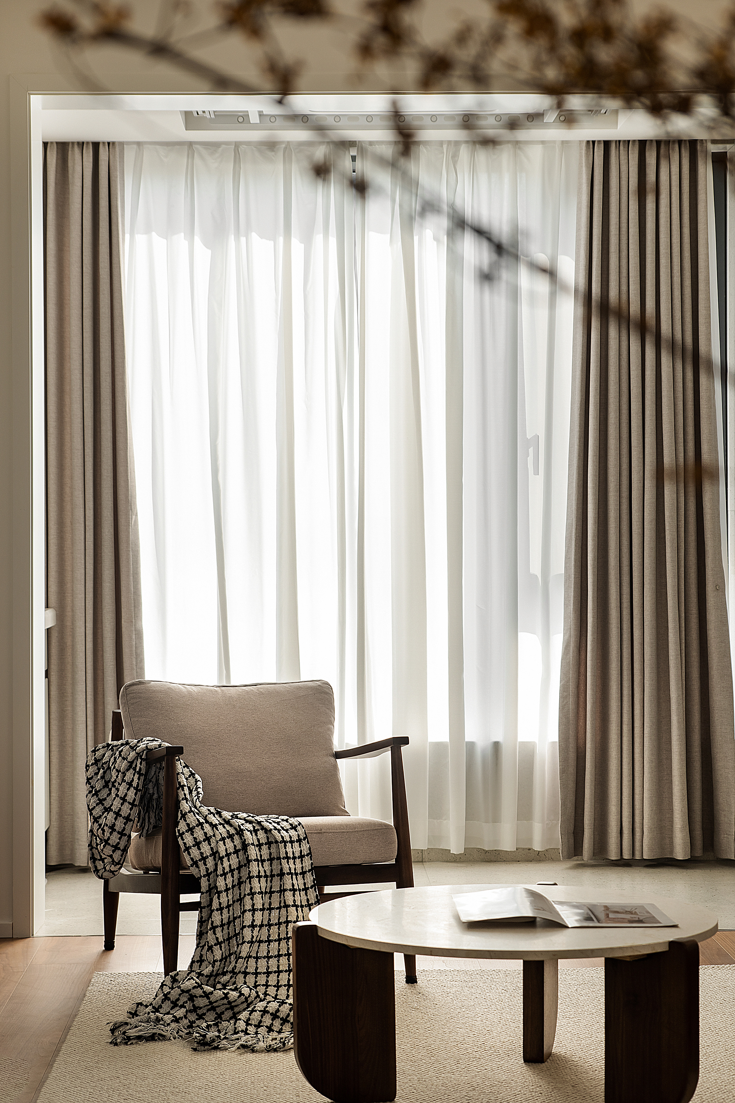 空间意境:摒弃了传统养老宅的保守与医疗感,致力于打造一个“隐龄的、温暖的、体面的”现代居家空间。我们采用现代简约融合东方禅意的风格基调,以浅色调墙面为基底,搭配木质家具,营造出温馨且雅致的氛围,打破传统养老房沉闷感,既符合长辈对舒适居家的需求,又具现代美学感。
