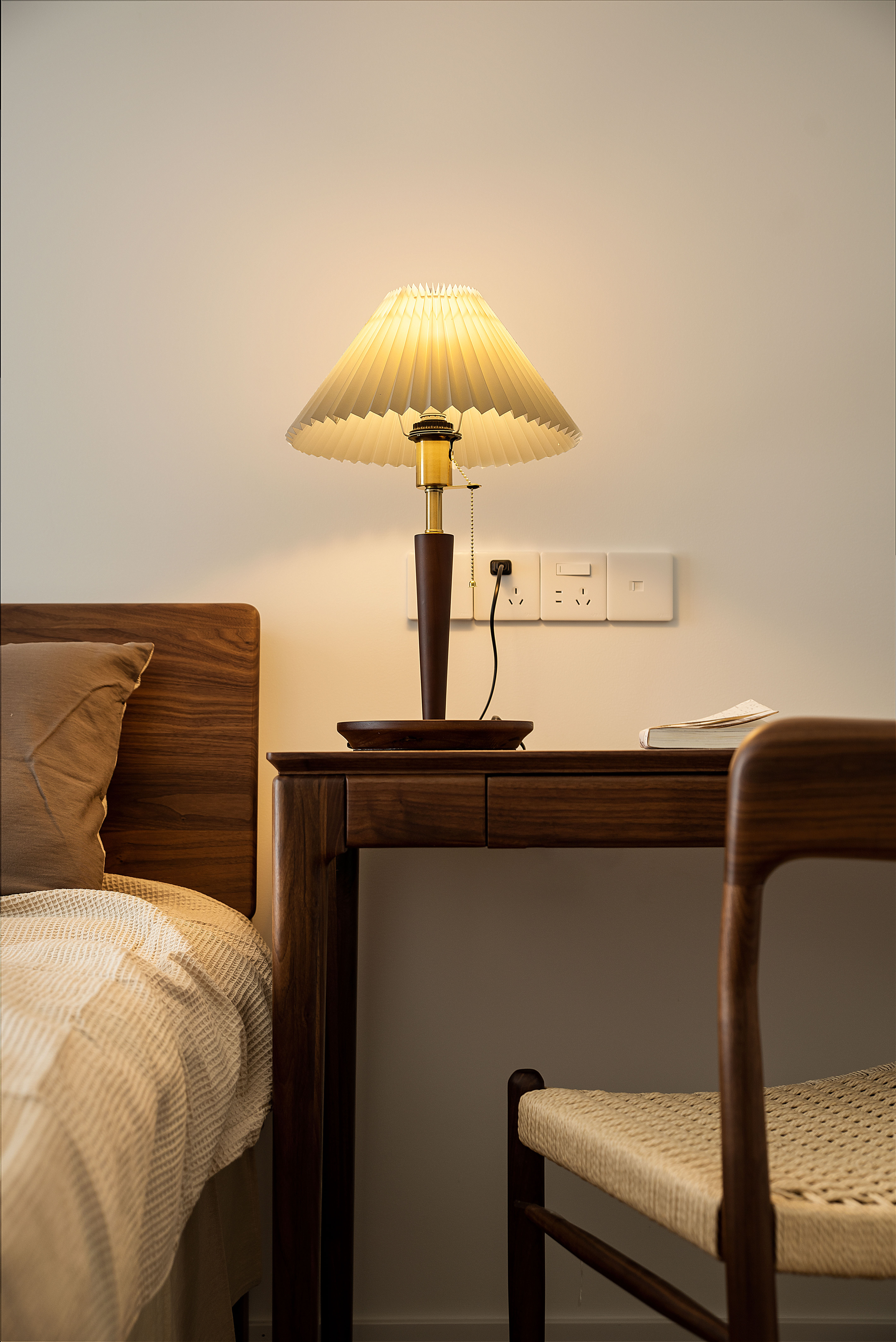 设计选材:在选材上,我们大量采用了胡桃木色系的家具与地板。胡桃木色泽温润、纹理沉稳,能为长者营造一个宁静、舒缓且有归属感的居家氛围,完美契合“隐龄化”设计的核心;墙面和天花板的简洁处理,减少了装饰性材料的使用,降低了成本。家具的选择也考虑到了耐用性和性价比。