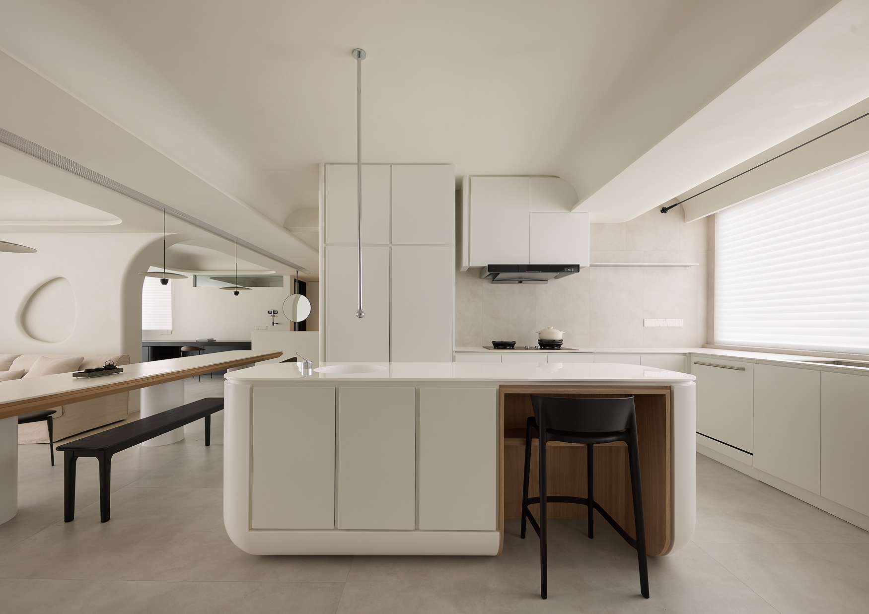 空间意境:这里没有冗余的装饰符号只有曲线与直线共舞的几何诗意白并非苍白 而是包容万千的底色让每一束光、每一道影、每一次驻足都成为空间的主角