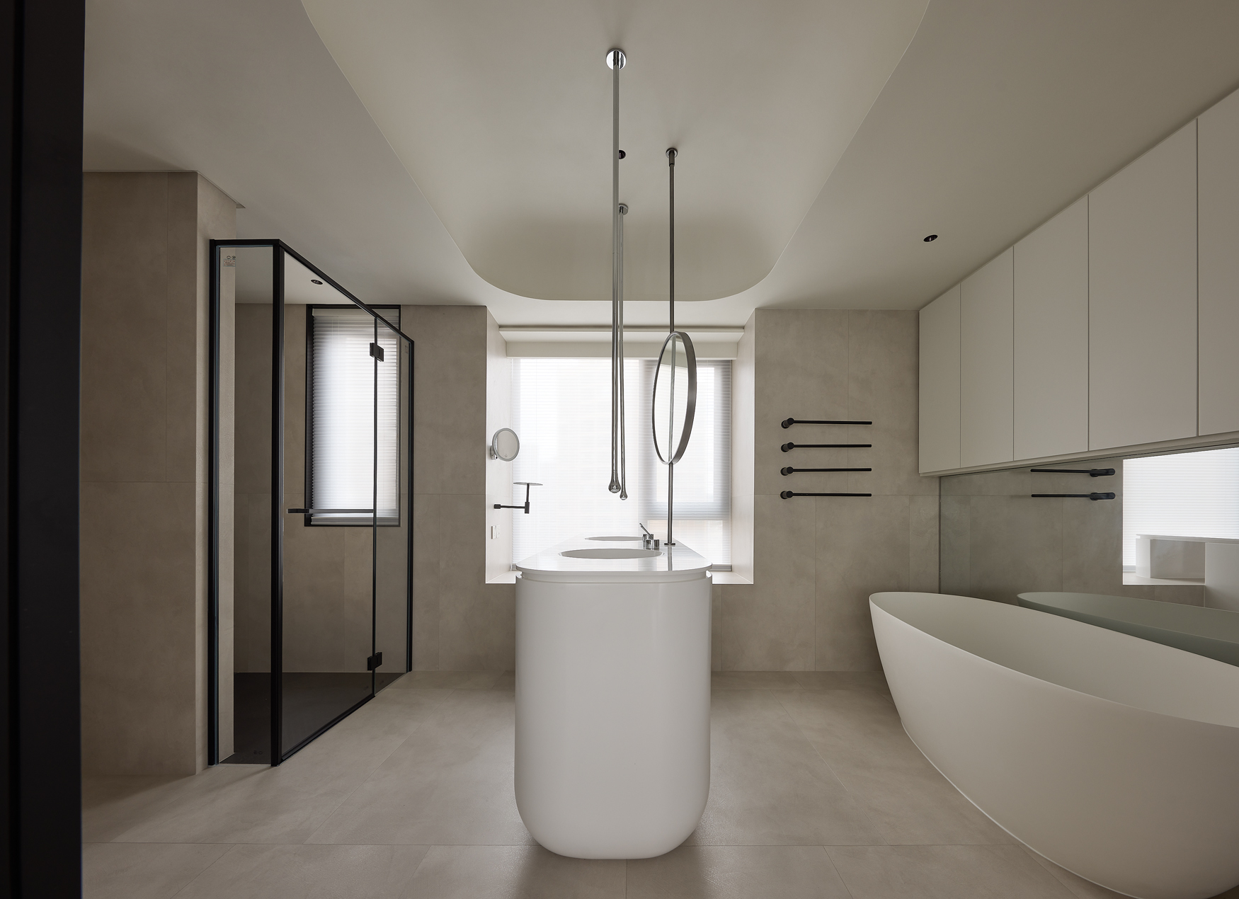 转身踏入沐浴秘境独立浴缸如一件雕塑艺术品在纯白领域里泛起温润光泽