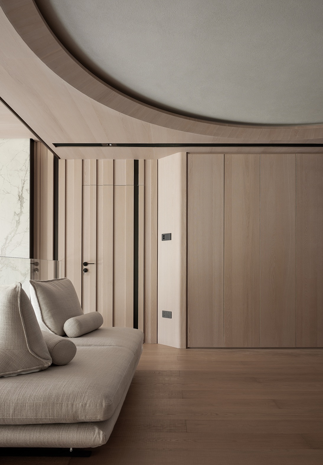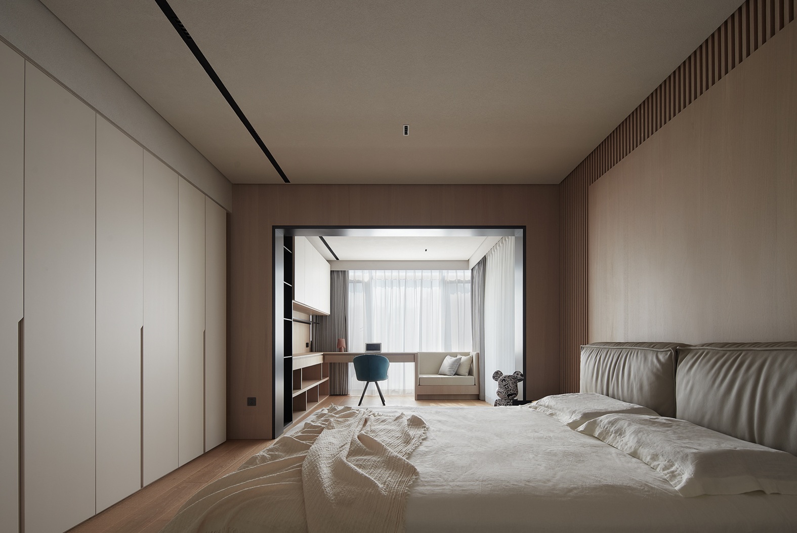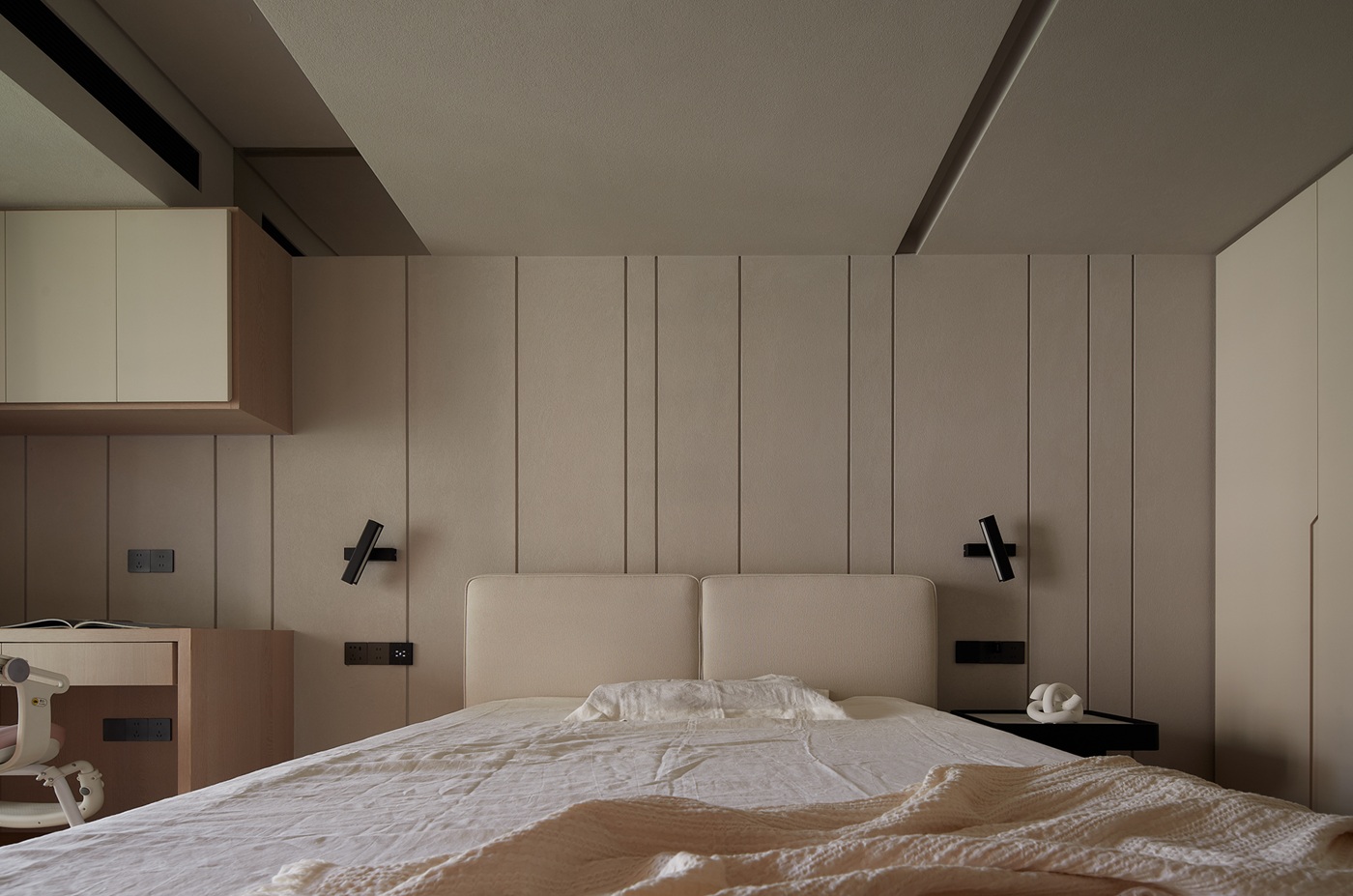 柔和的配色演绎出和缓的空间节奏,赋予空间更多的温度与舒适愉悦之感,兼具美学与功能的同时达到理性与感性的平衡,简单中散发着一种沉稳安定的情绪感染力