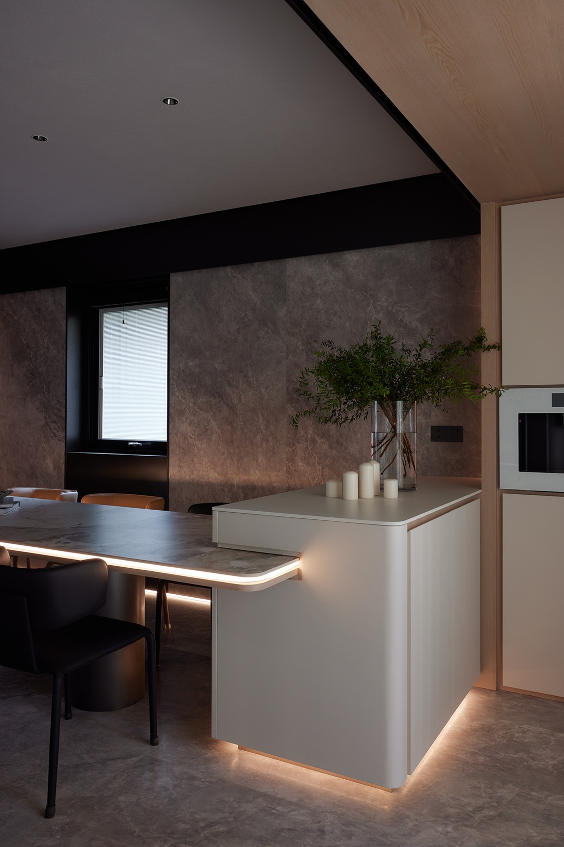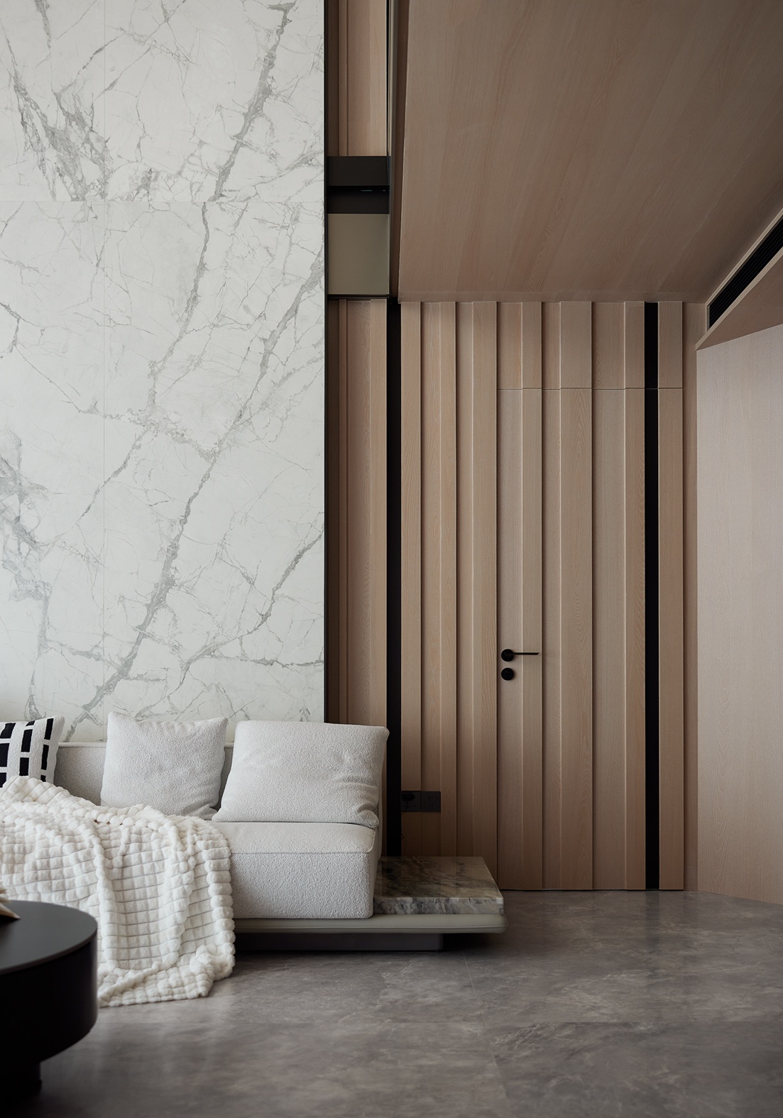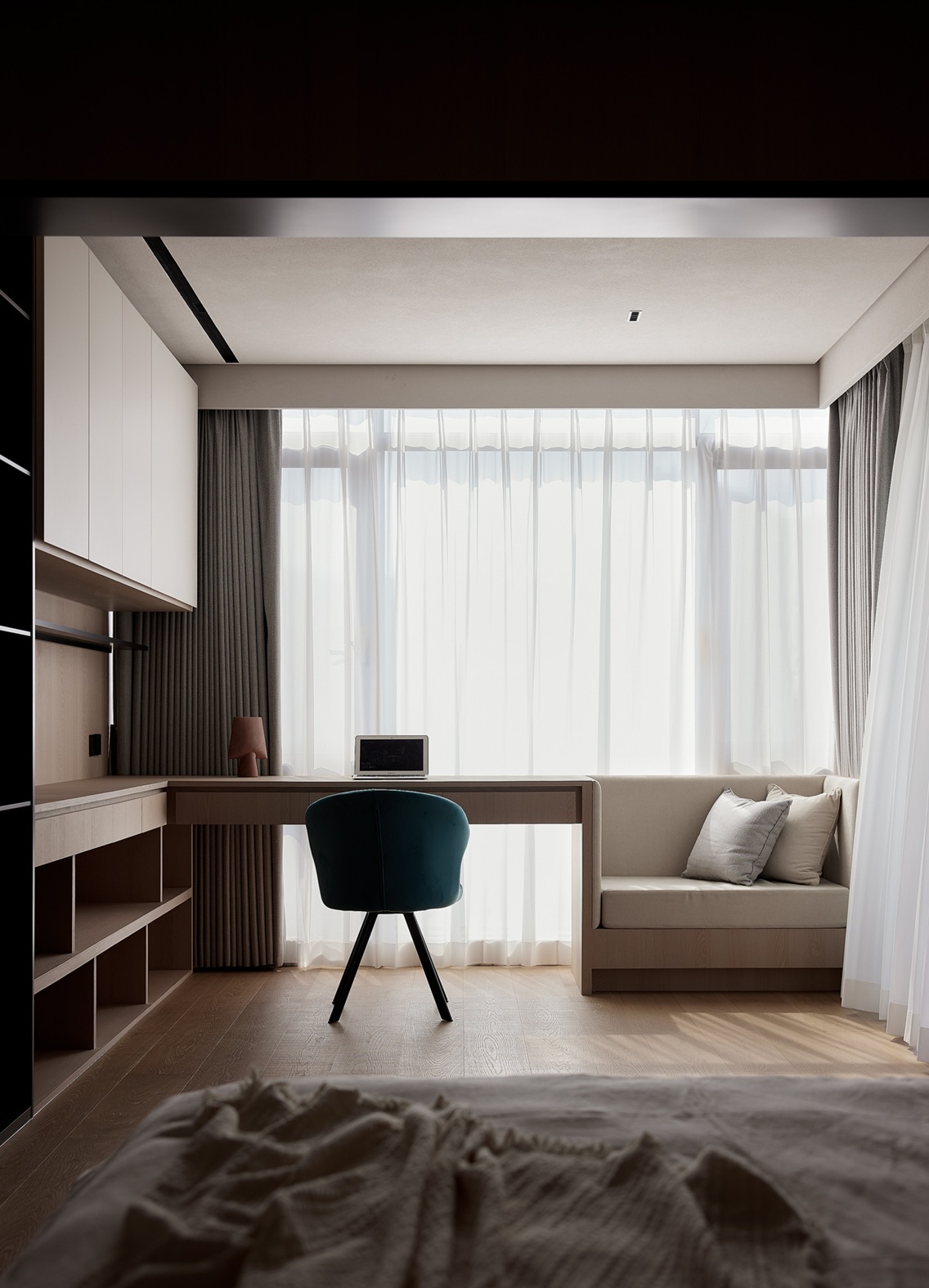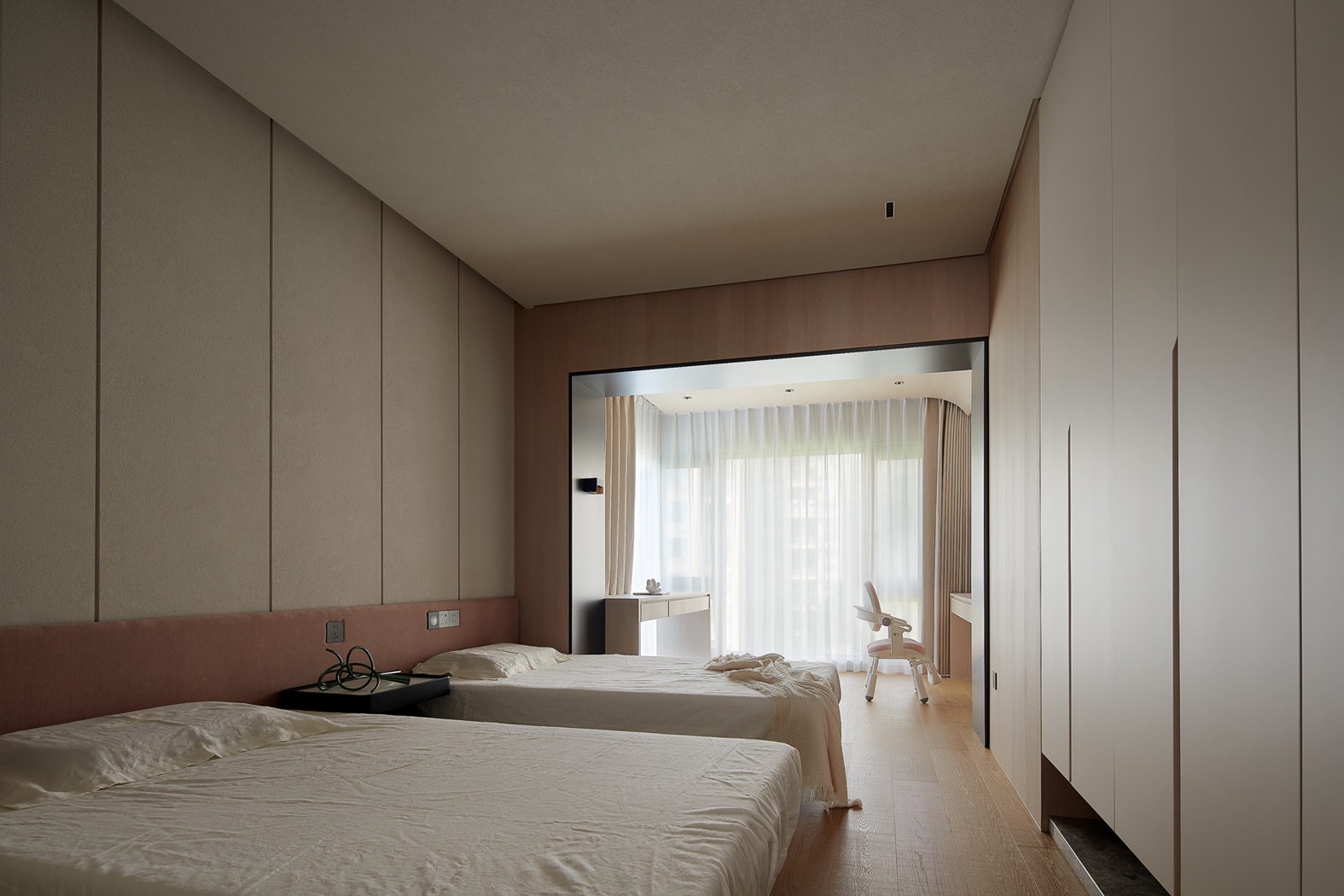 柔和的配色演绎出和缓的空间节奏,赋予空间更多的温度与舒适愉悦之感,兼具美学与功能的同时达到理性与感性的平衡,简单中散发着一种沉稳安定的情绪感染力