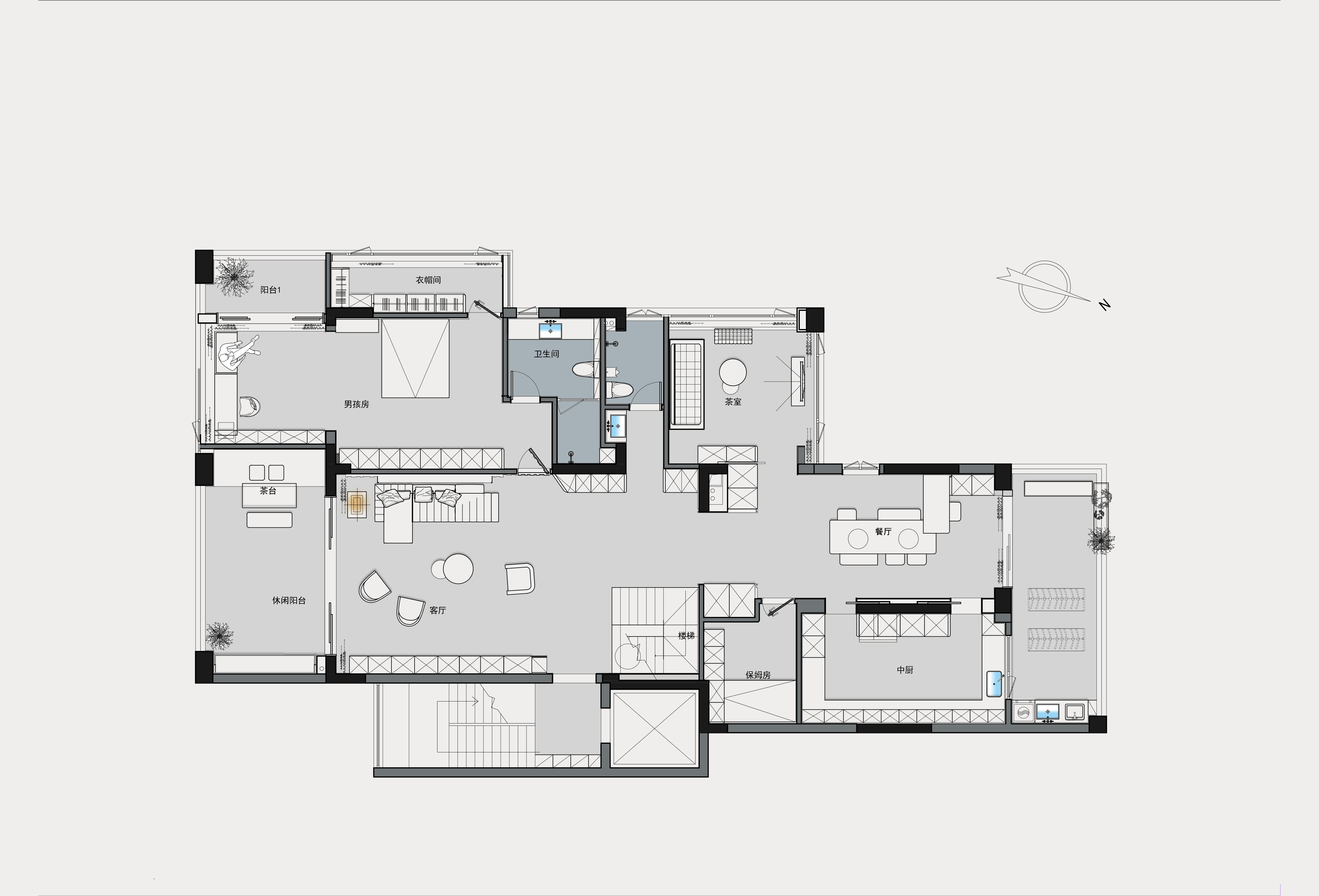 当空间化繁为简,元素之间和谐而宁静,恰到好处的设计语言简约而不简单。在生活需求与感官体验之上,呈现最纯粹的美感与力量,是对设计美学艺术的理解与诠释。