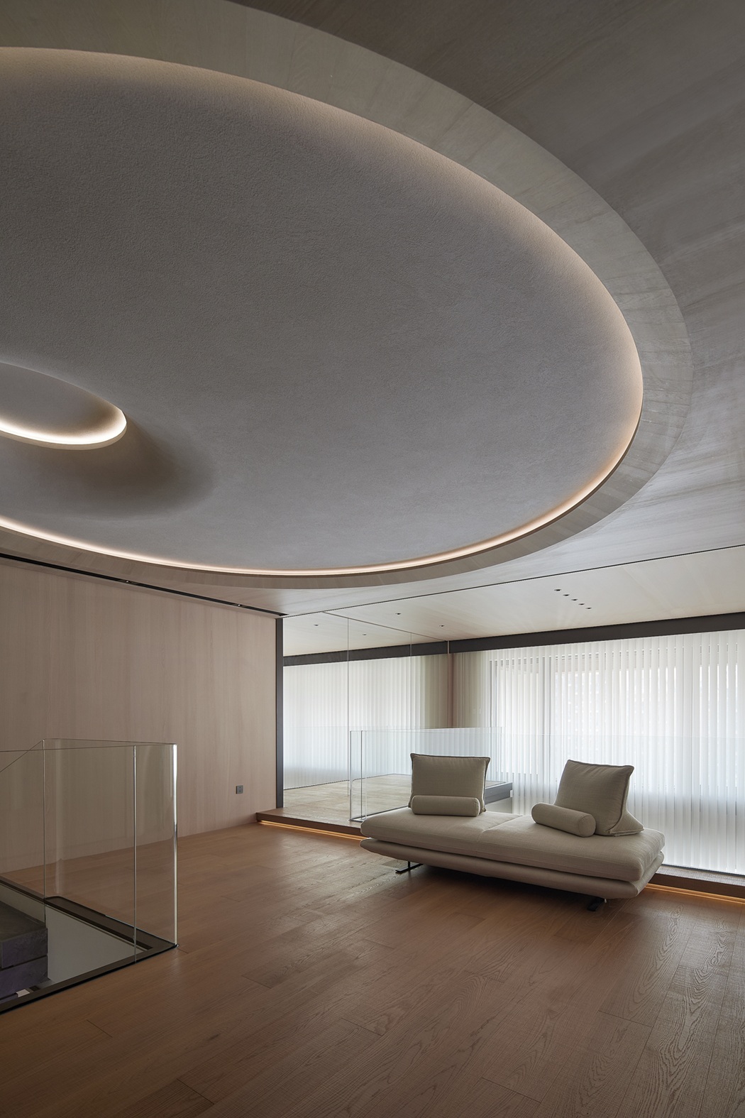 项目定位:每一层来自顶部空间的光,与两侧南北的光,相互交织,形成丰富的光影关系。光在这里拥有了多重的含义,它是空间的旋律,时而激烈,时而轻柔;它是一种装饰,毫不费力就可填满空间;它是一种材质,在灰、白与木之间寻找到一种平衡