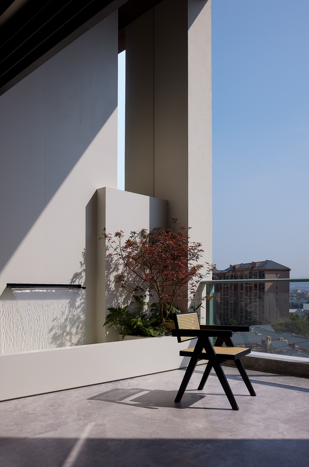 每一层来自顶部空间的光,与两侧南北的光,相互交织,形成丰富的光影关系。光在这里拥有了多重的含义,它是空间的旋律,时而激烈,时而轻柔;它是一种装饰,毫不费力就可填满空间;它是一种材质,在灰、白与木之间寻找到一种平衡