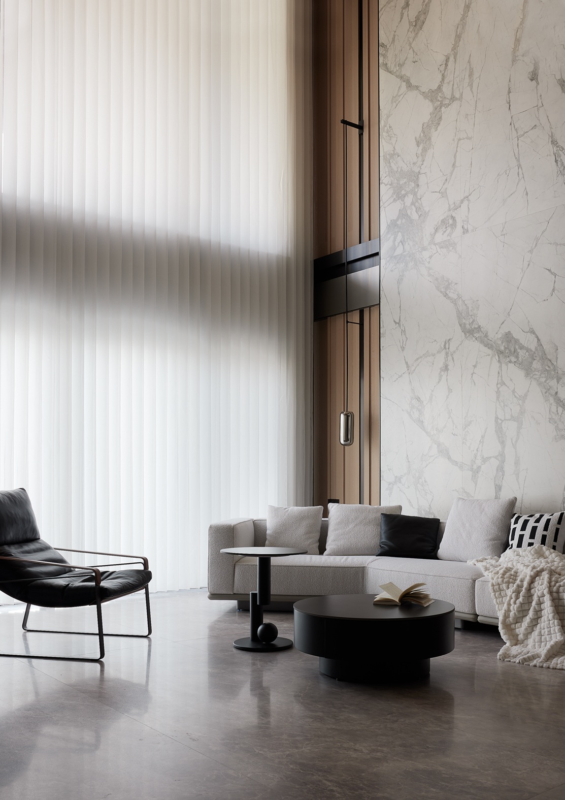 设计选材:当空间化繁为简,元素之间和谐而宁静,恰到好处的设计语言简约而不简单。在生活需求与感官体验之上,呈现最纯粹的美感与力量,是对设计美学艺术的理解与诠释。