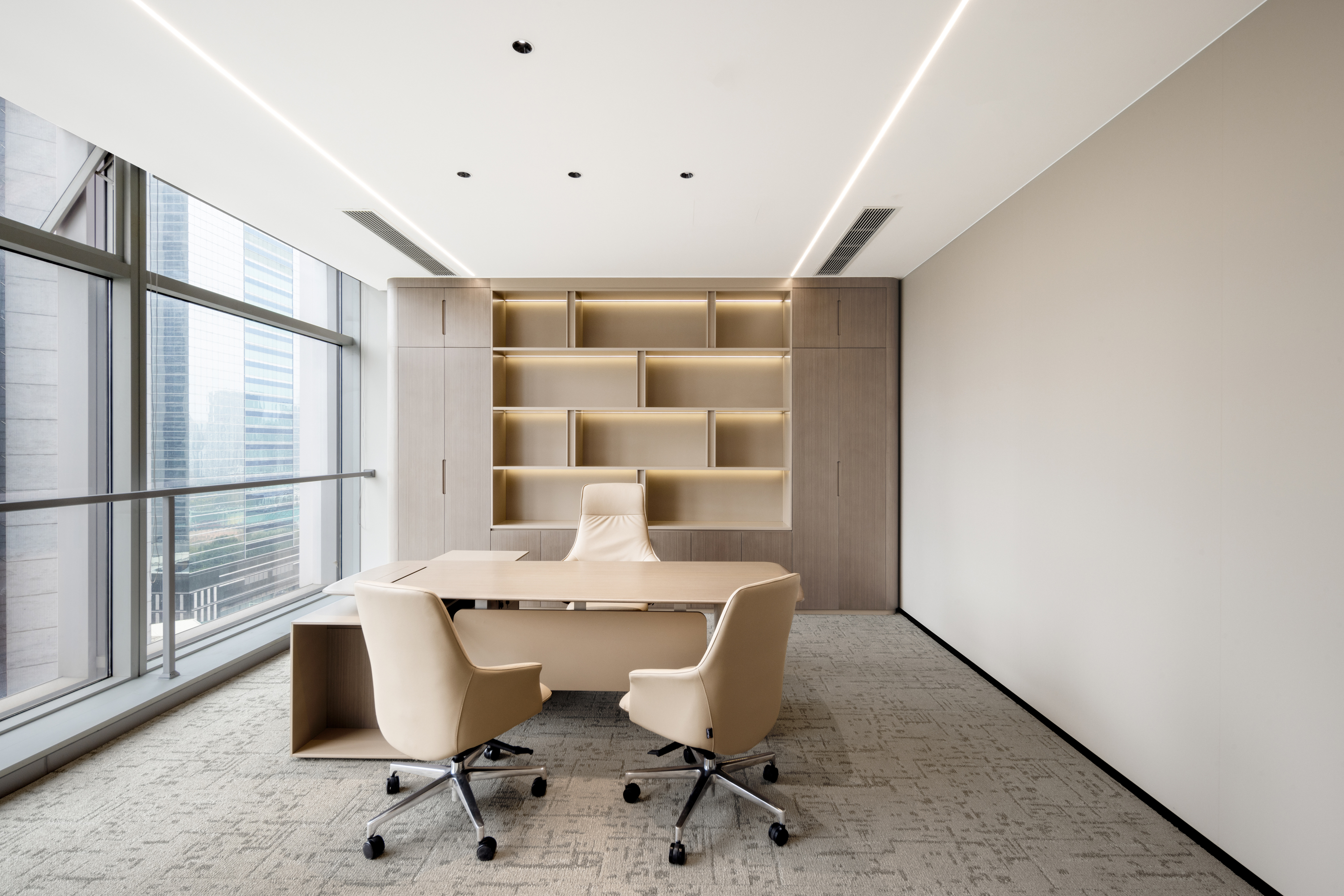 妙 构 建 空 间 的 包 裹 之 感 与 自 然 触 感 , 为 办 公 空 间 注 入 清
