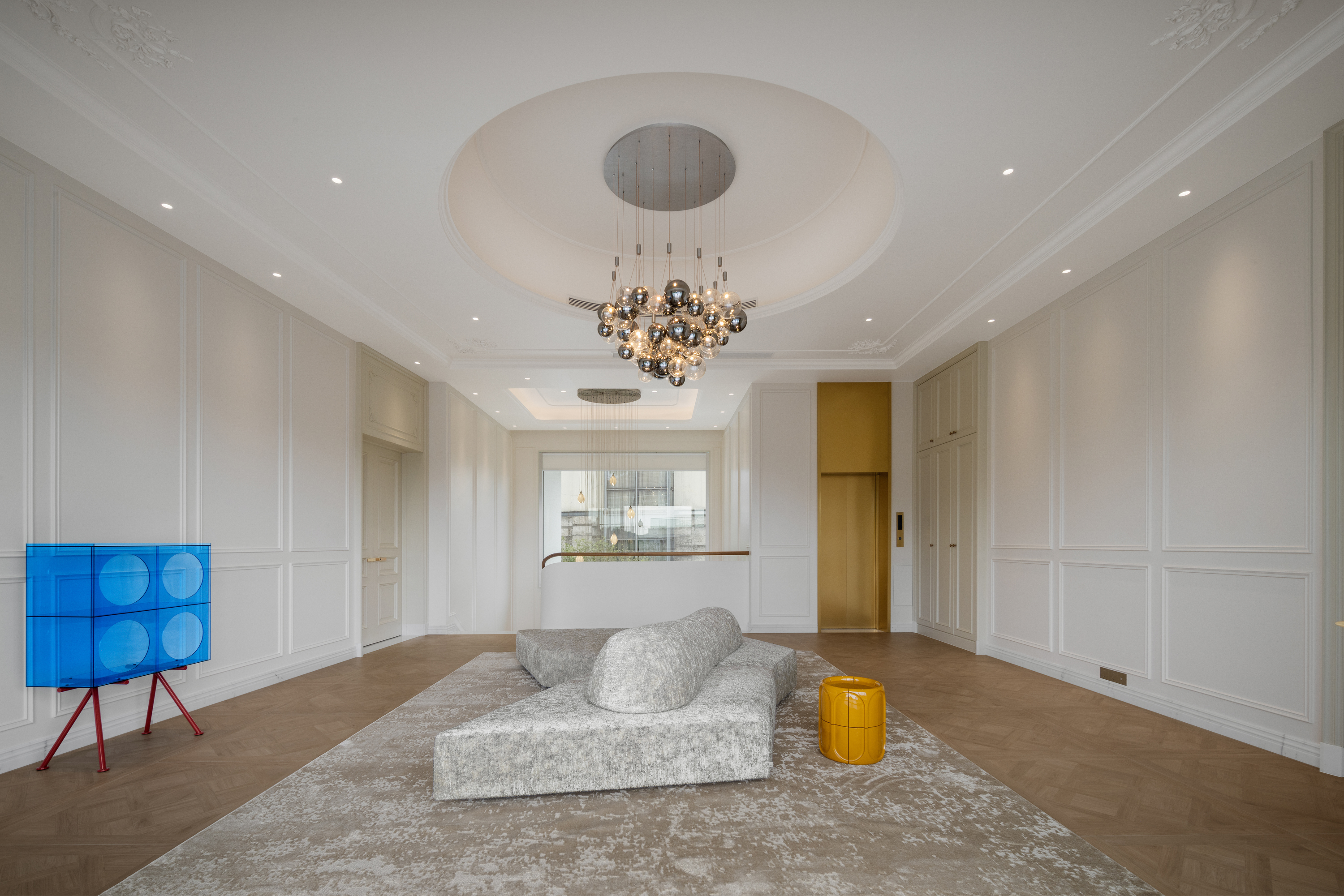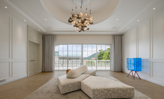 空间意境:空间亦兼顾多功能储备与代际共居需求。水平厅室与茶室可灵活转换为家庭办公室或复合用途空间,适应未来多元社交模式。四层分区设计满足不同年龄层的生活需求,儿童游乐区与酒窖博物馆并置,呼应多子女家庭与老龄化趋势。此外,智能照明与空气环境系统集成实现光影、温湿的精准调节,为未来全屋智能升级预留可能。