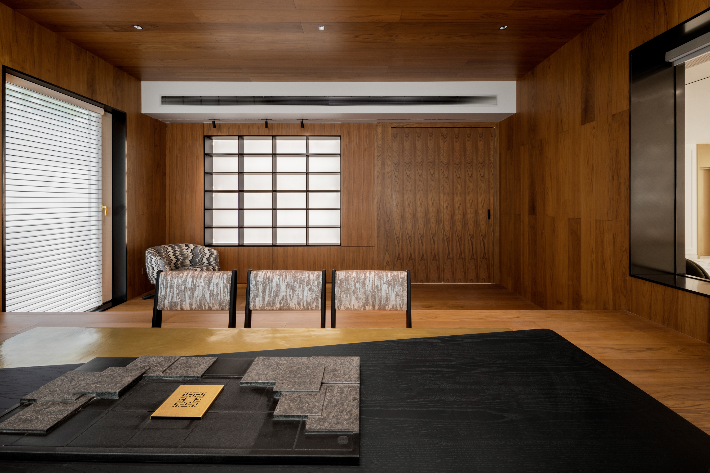 一处茶席,几张木椅,奢华,是每一次品茗时的悠然自得,每一页阅读中的灵魂共鸣;书房兼茶室的空间营造,引领身心远离尘世纷扰,沉浸宁静致远之境。