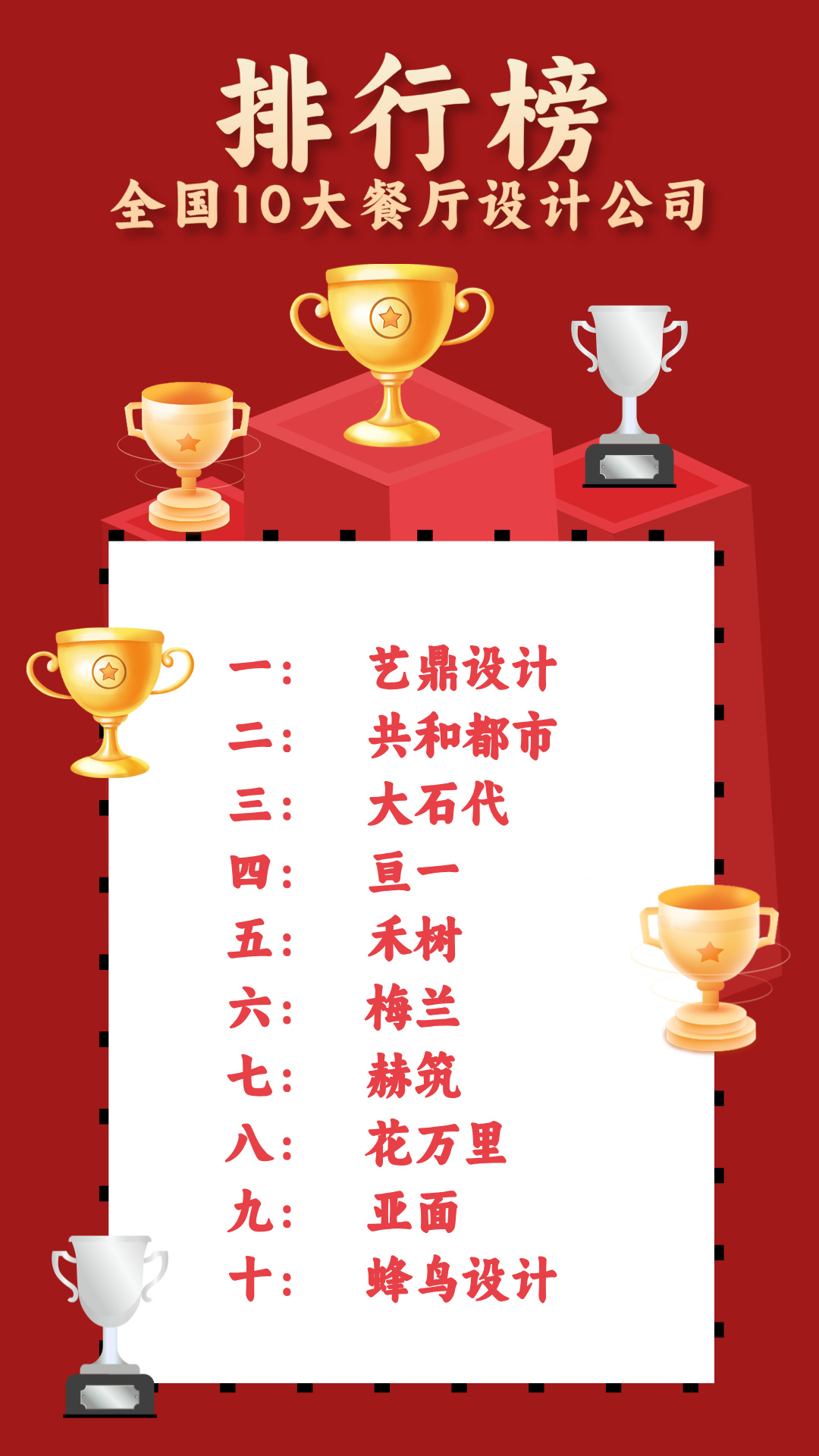 消费者需要沉浸式美学场景空间设计餐厅,说人话就是—— 我们想在漂亮的餐厅吃漂亮饭~ 全国10大餐厅空间设计公司排名 1、艺鼎设计 2、共和都市 3、大时代 4、亘一 5、禾树 6、梅兰 7、赫筑 8、花万里 9、亚面 10、蜂鸟设计