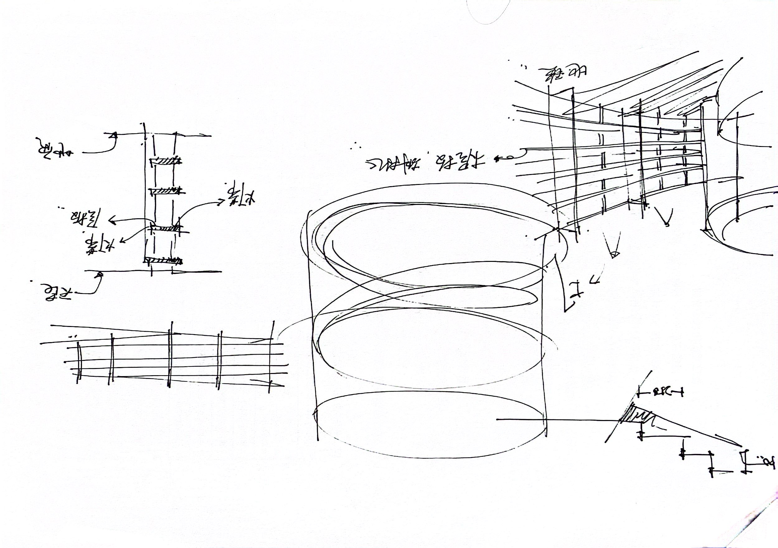 项目通过对住宅内部两层空间的打通,实现了上下贯通的空间体验。螺旋坡道楼梯成为视觉与功能的核心,不仅连接层高,更串联阅读、思考、展示等多元功能。圆形动线结构打破了传统图书馆的静态格局,使空间充满流动感与仪式感,步入其中如进入精神的回廊。 -