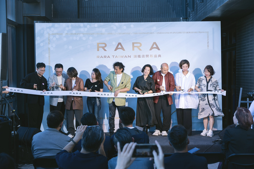 ▲杨翊总监(左一)、赵国豪总监(左二)与一众设计师一同为RARA TAIWAN旗舰店的开幕仪式剪綵。
