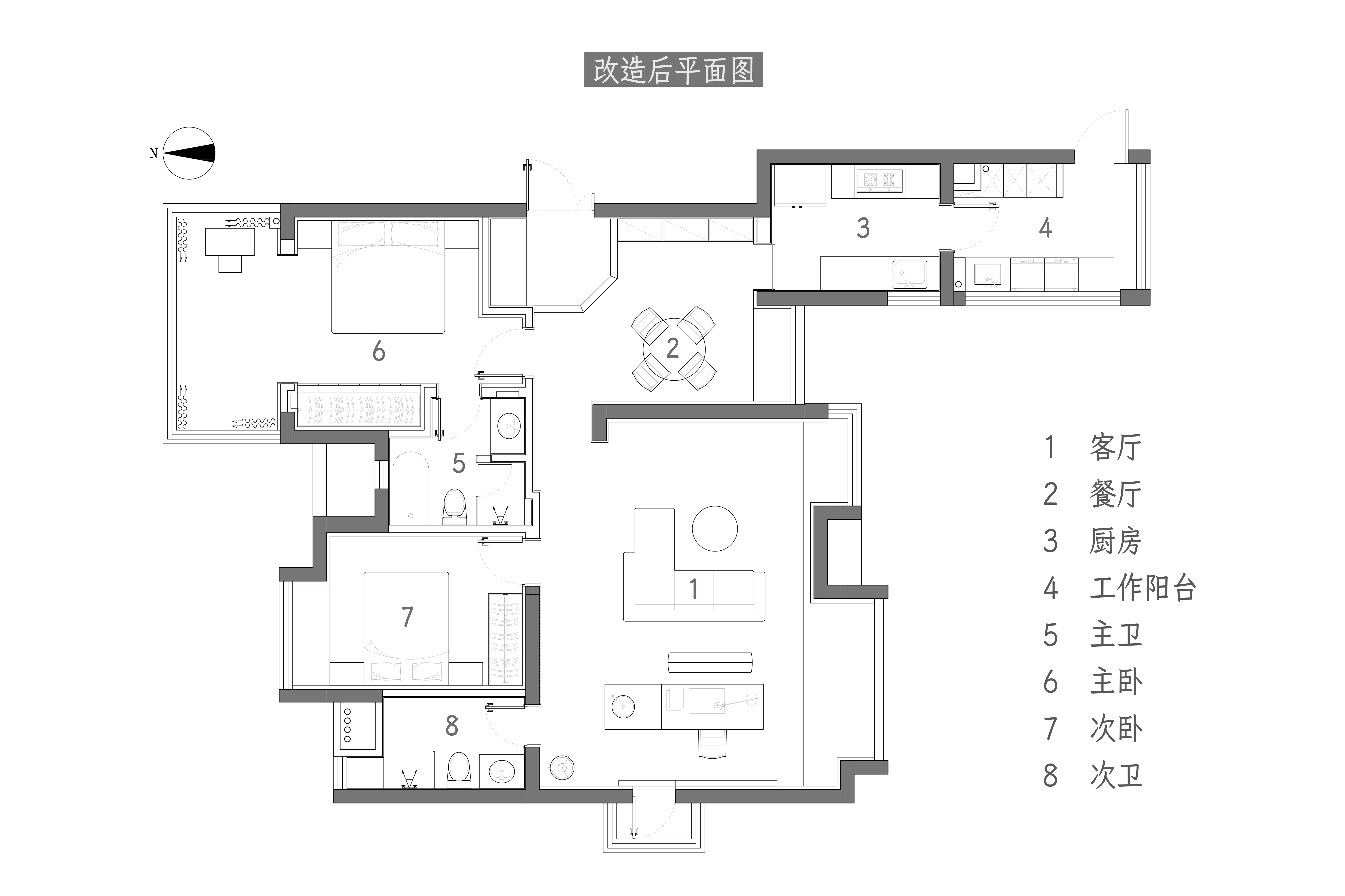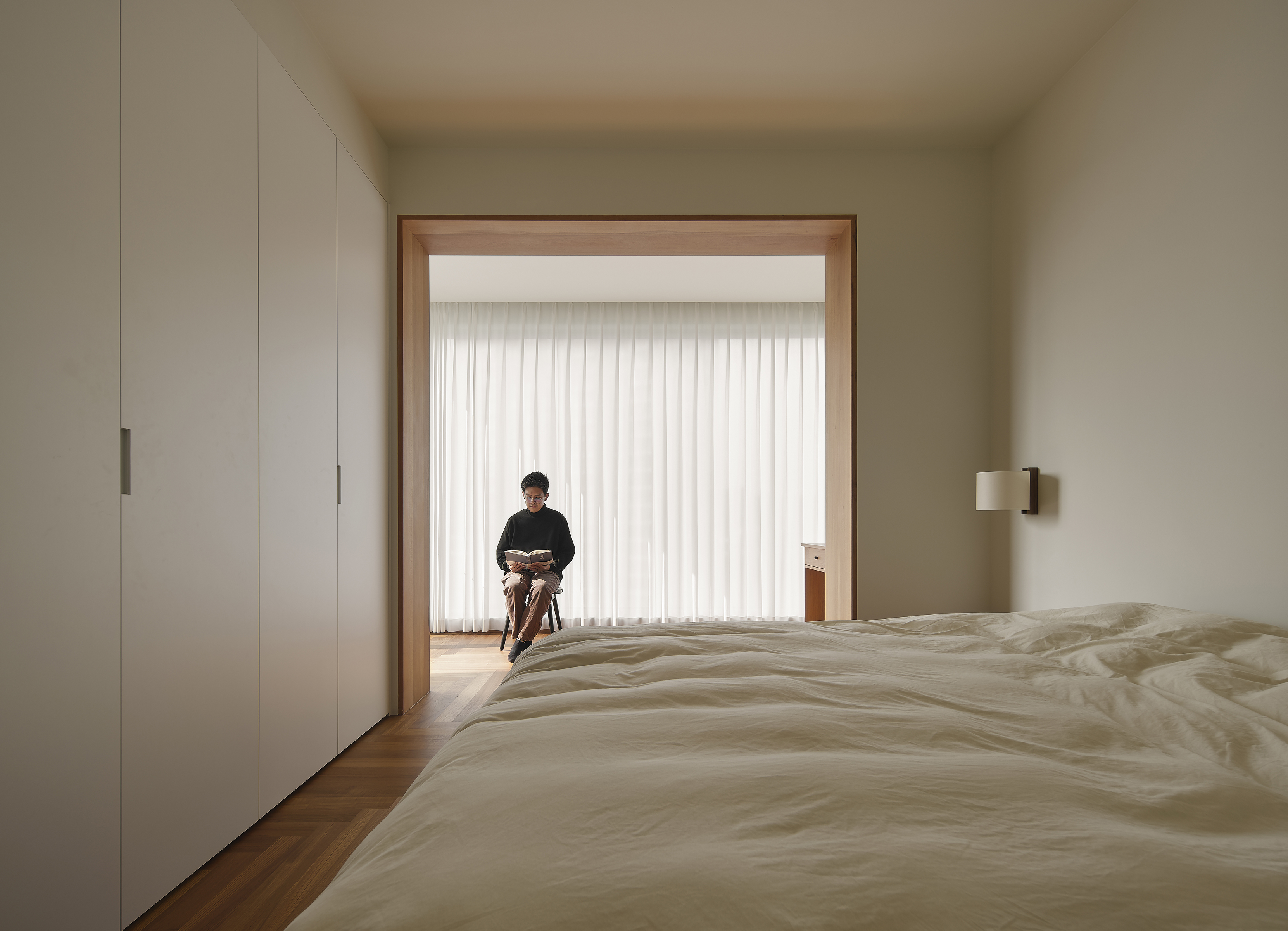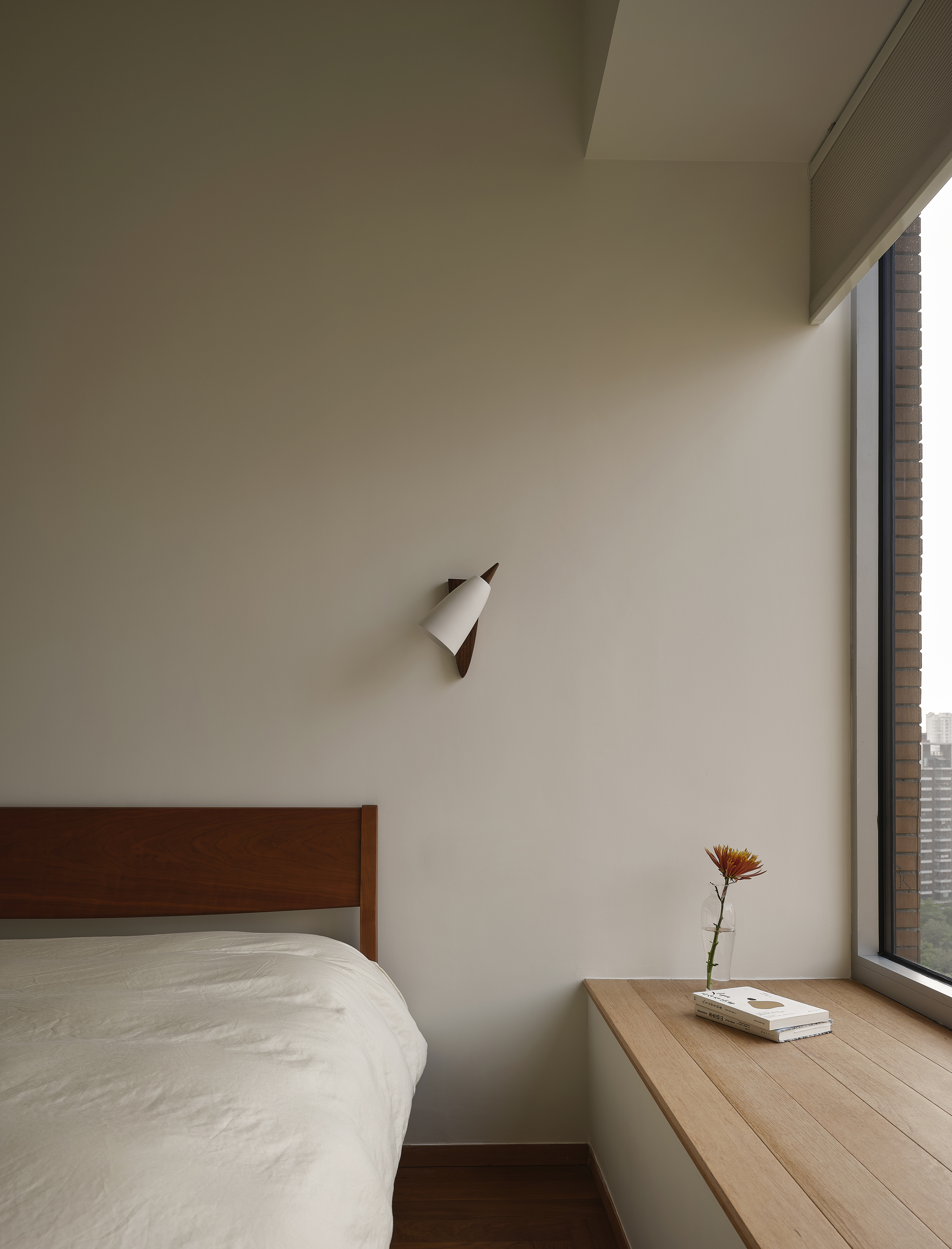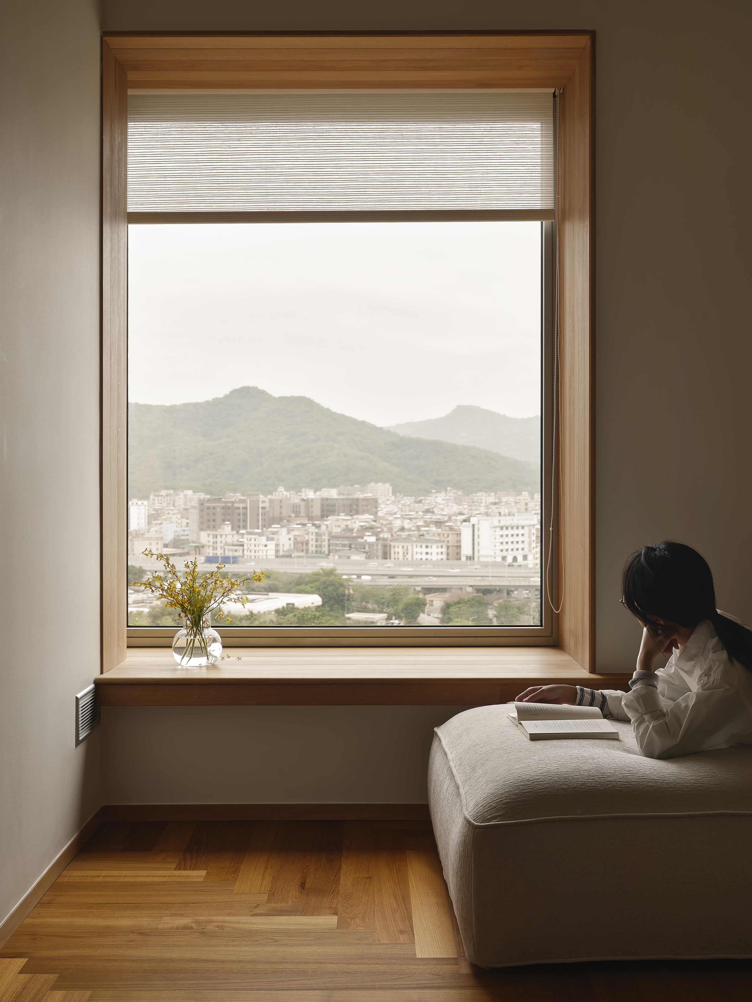 基于对空间尺度、通风采光、及室内外景观的综合考量,设计师大胆地改动原格局,将原「客厅」和「卧室」位置调换,获得采光优越的南向大横厅,将白云山景与城市景观“框”入起居空间,真正发挥出“山景房”的优势。