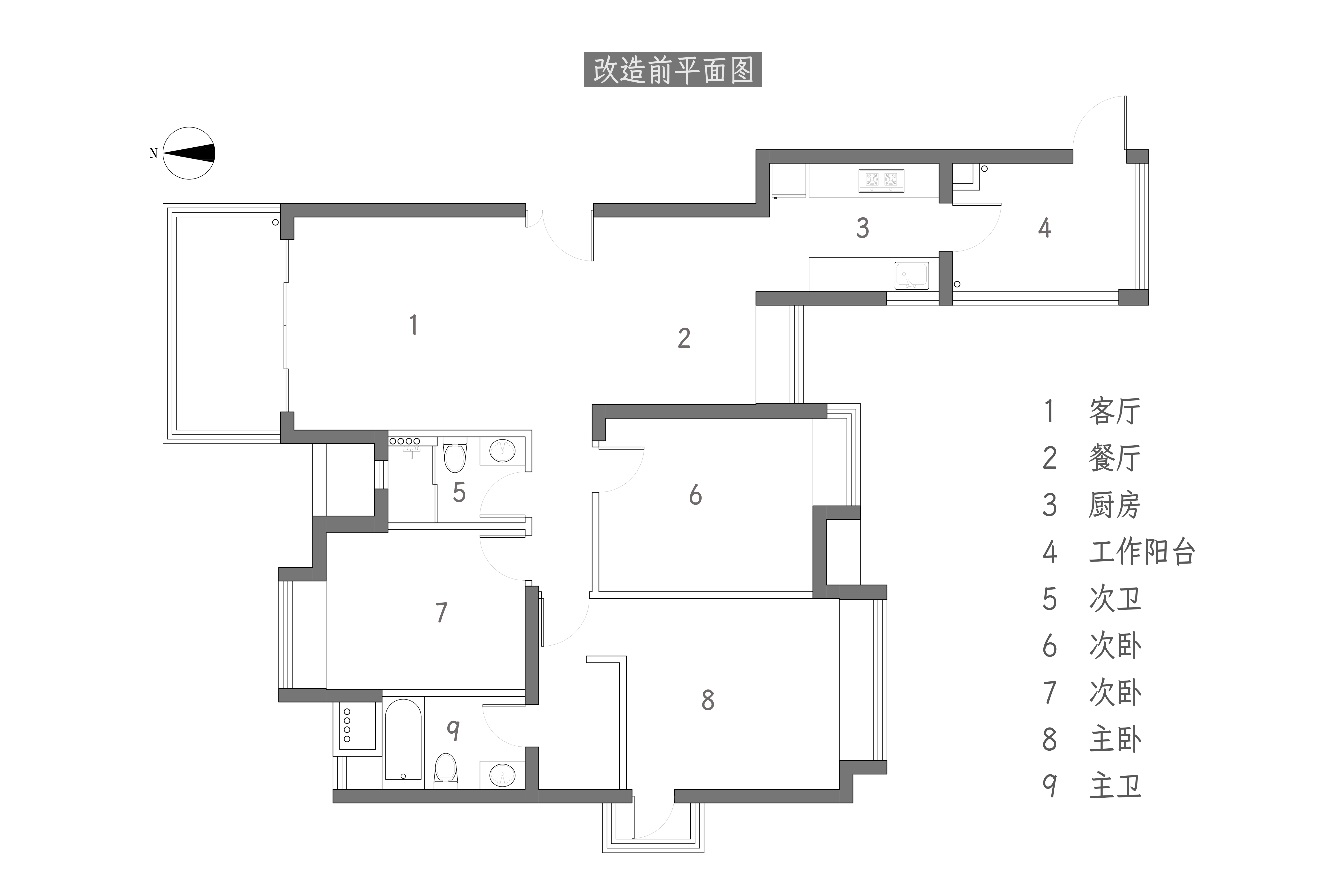 空间意境:原户型客厅朝北望楼房,视野缺少开阔感,隐私性差;原主次卧朝南望连绵山景,是该户型极大独特优势。
