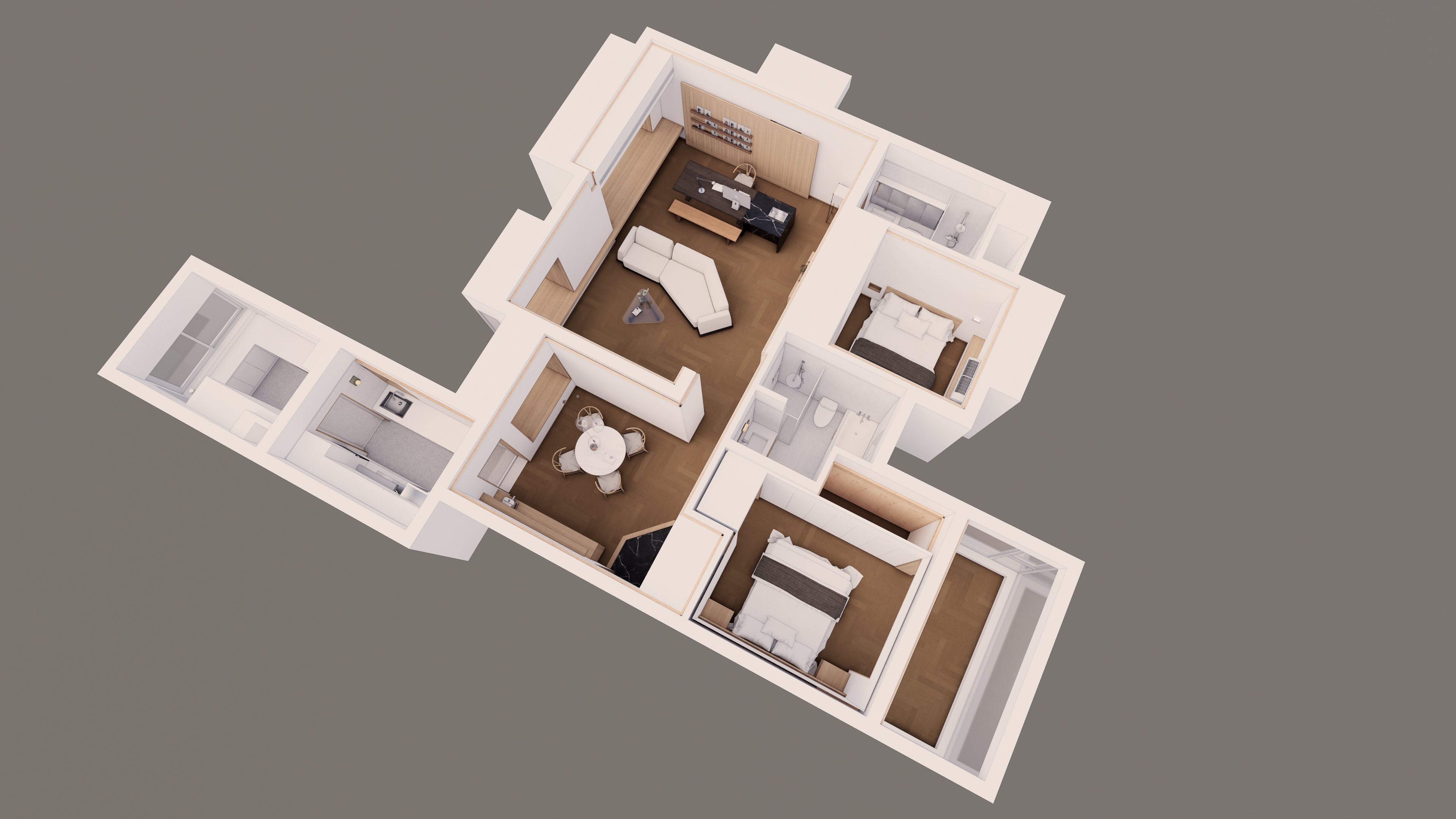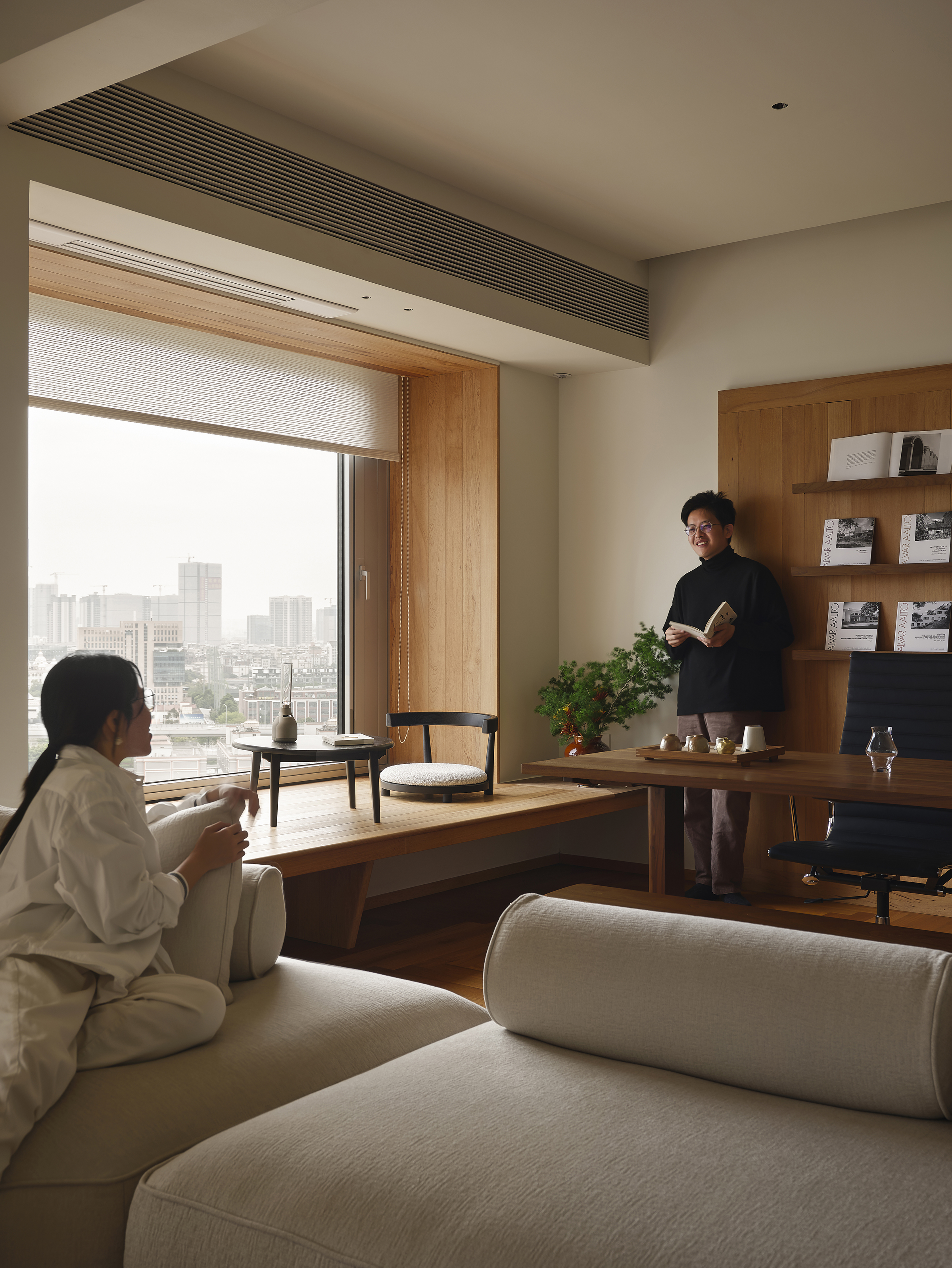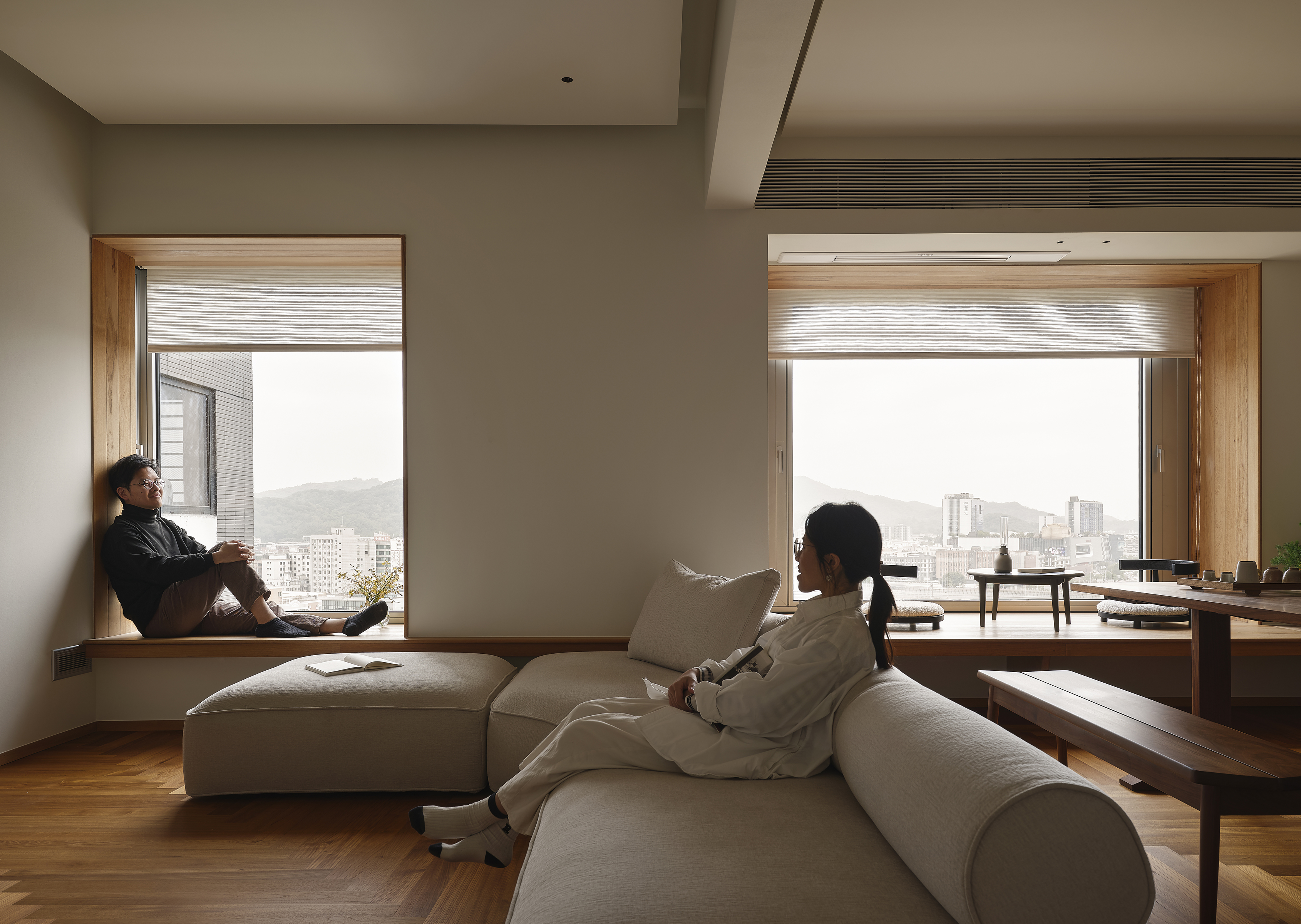 空间布局:心理关照方面,重点营造“安心角”,将用餐、品茶、阅读、瑜伽等休闲场景布局于最佳景观视角,打造三面围合的口袋型角落,定制包裹式实木飘窗榻,为当代都市 “i 人” 打造出放松的精神栖居之所。