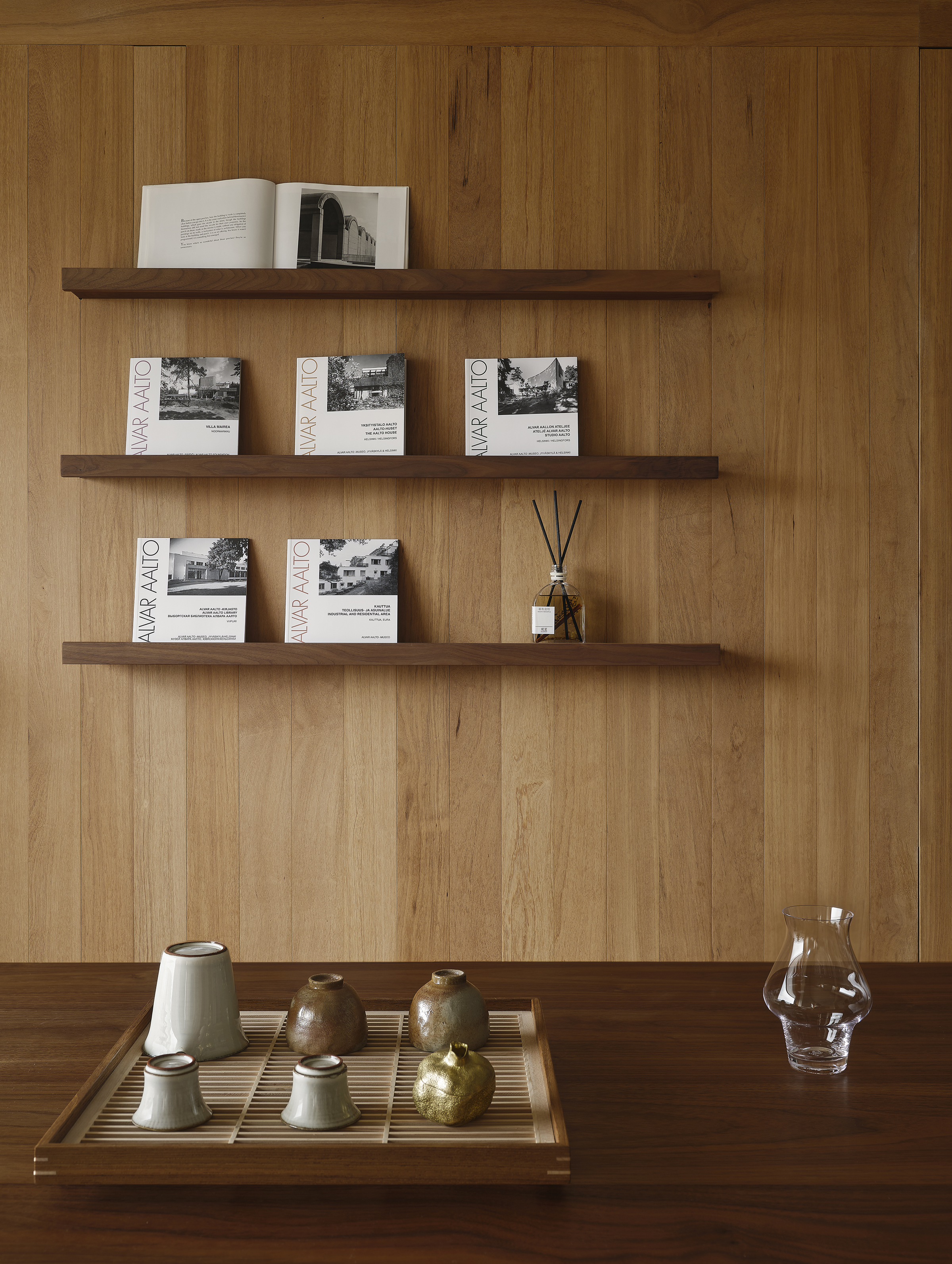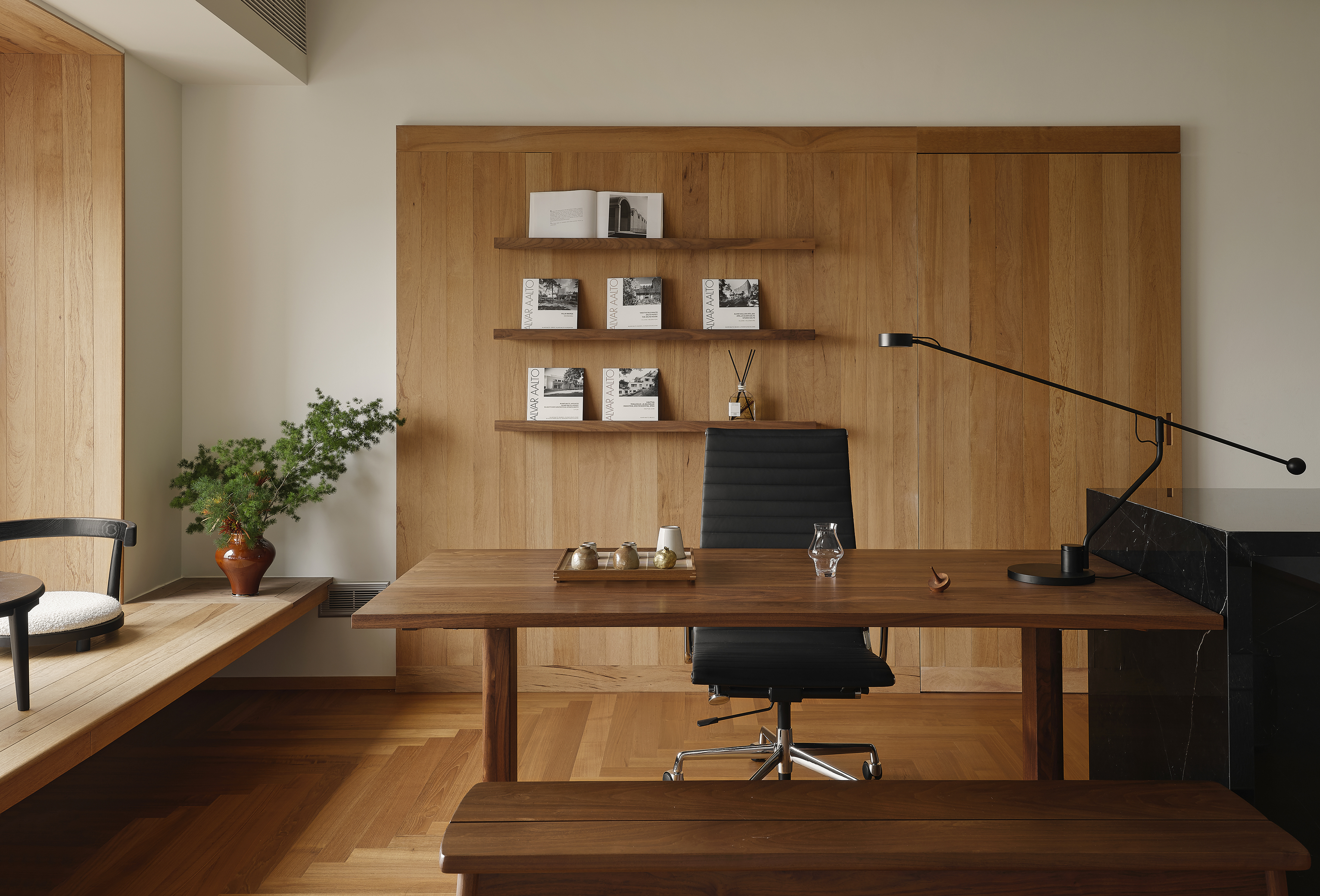 实木作为可持续使用的材料,经久耐用又极致环保,在缩短业主等待入住时间的同时,也能为空间增加更多自然温度。