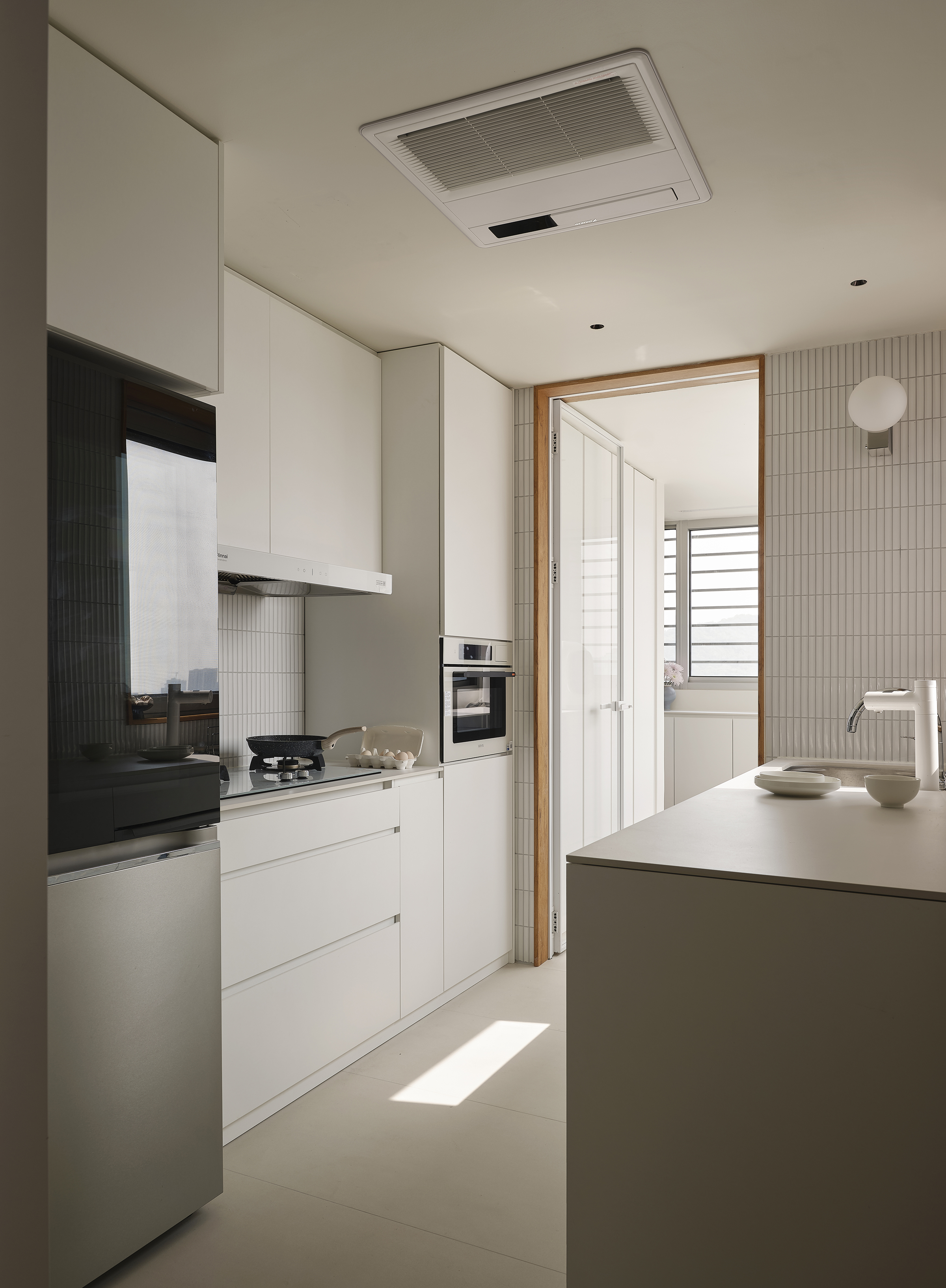 此外,本案完成了房屋被动性改造,包括:配备进口系统窗、除湿新风系统、墙面内保温层,以较低能耗维持适宜的室内温湿度,实现舒适体感与环保的平衡。 -