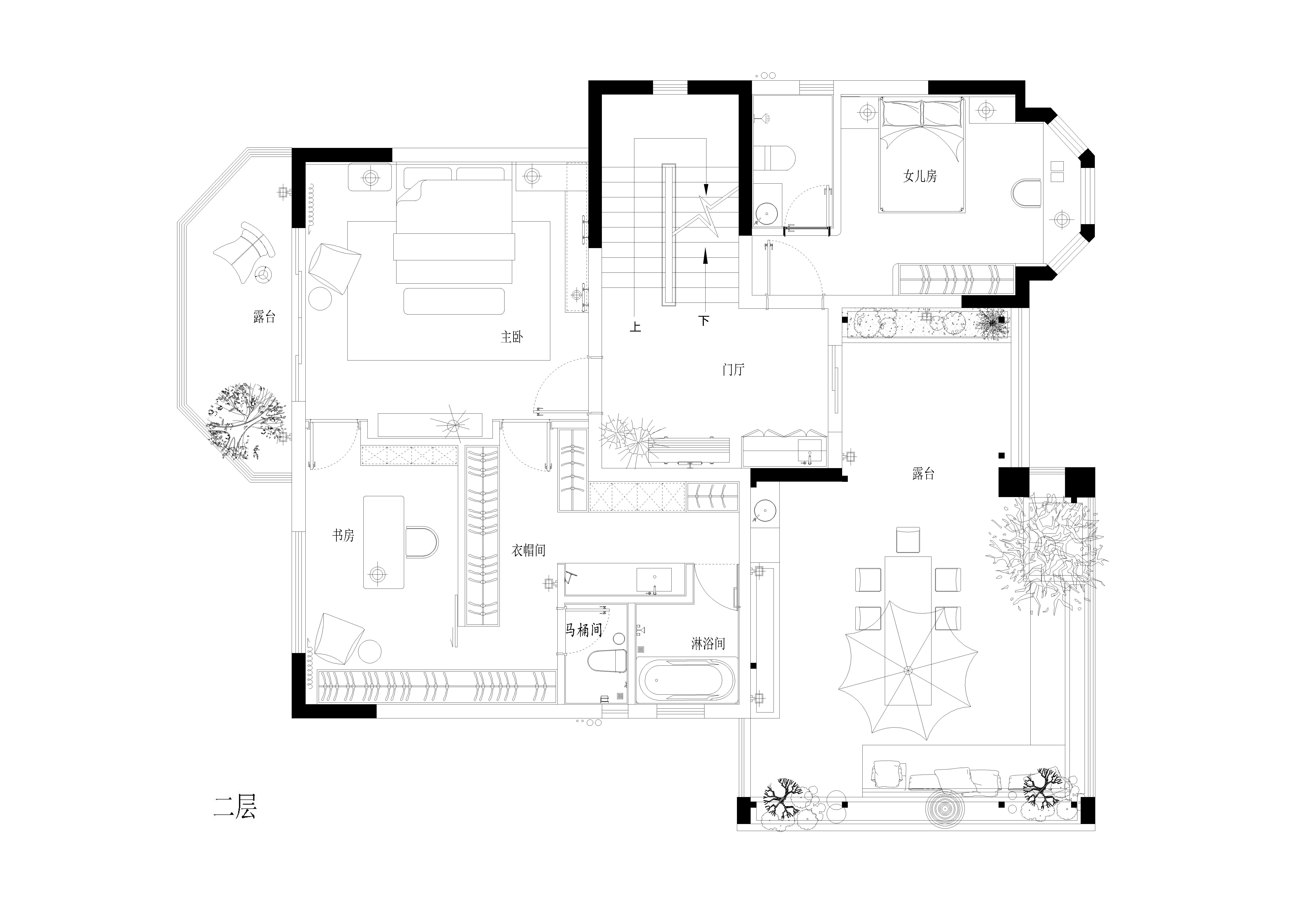 一层布局以开放、通透为主,通过合理的空间划分,将公共空间相互融合,形成开阔的视野和流畅的动线。低调的留白处理,赋予了艺术饰品更多的展示空间。 阳光漫过纱帘,一壶清茶,悠悠袅袅,暗香沁入心脾。