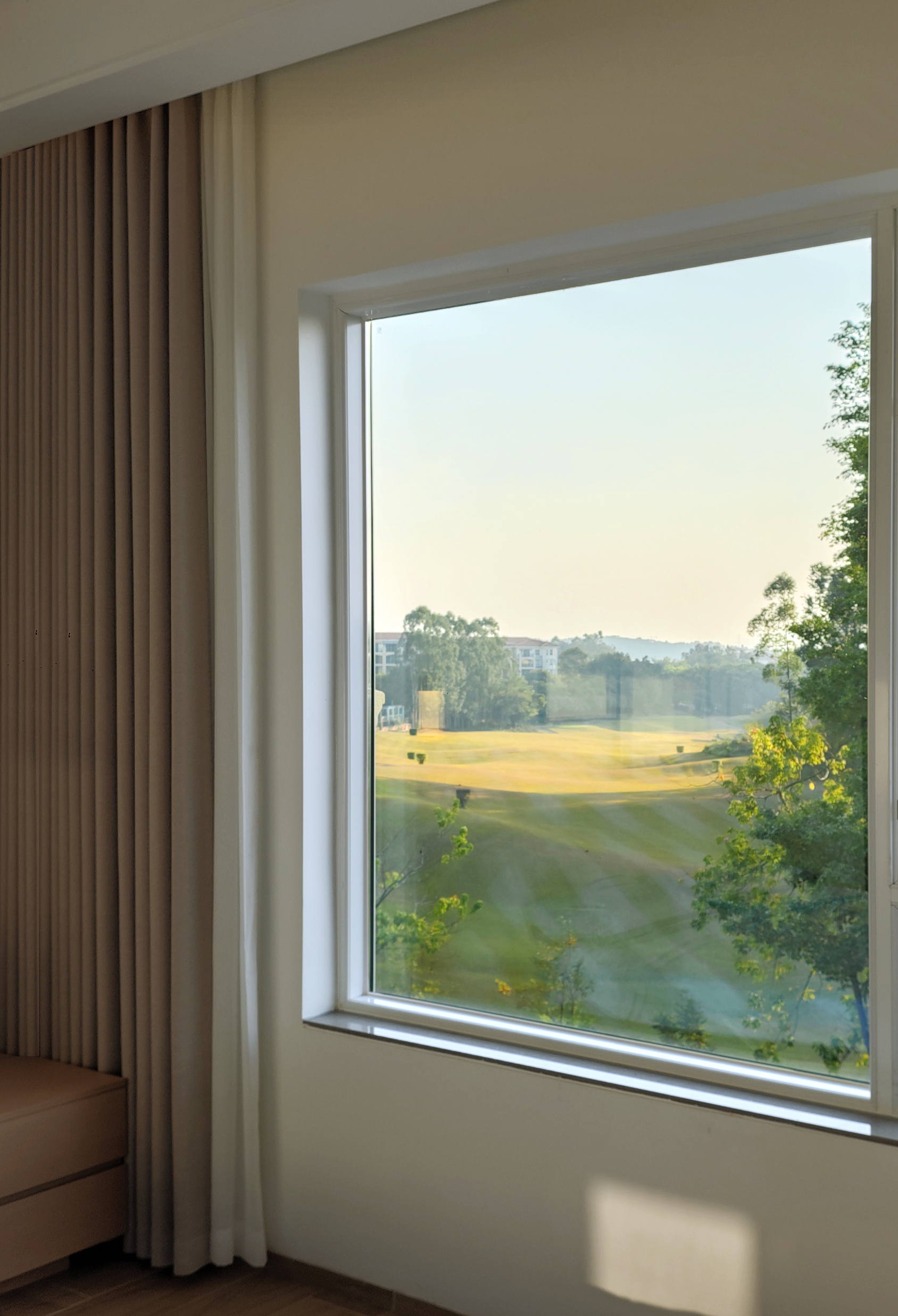 花园连着高尔夫,无论在花园、客厅、房间都能看到绿油油的果岭草坪,悠然舒适,是童年成长中难得的养眼景观。