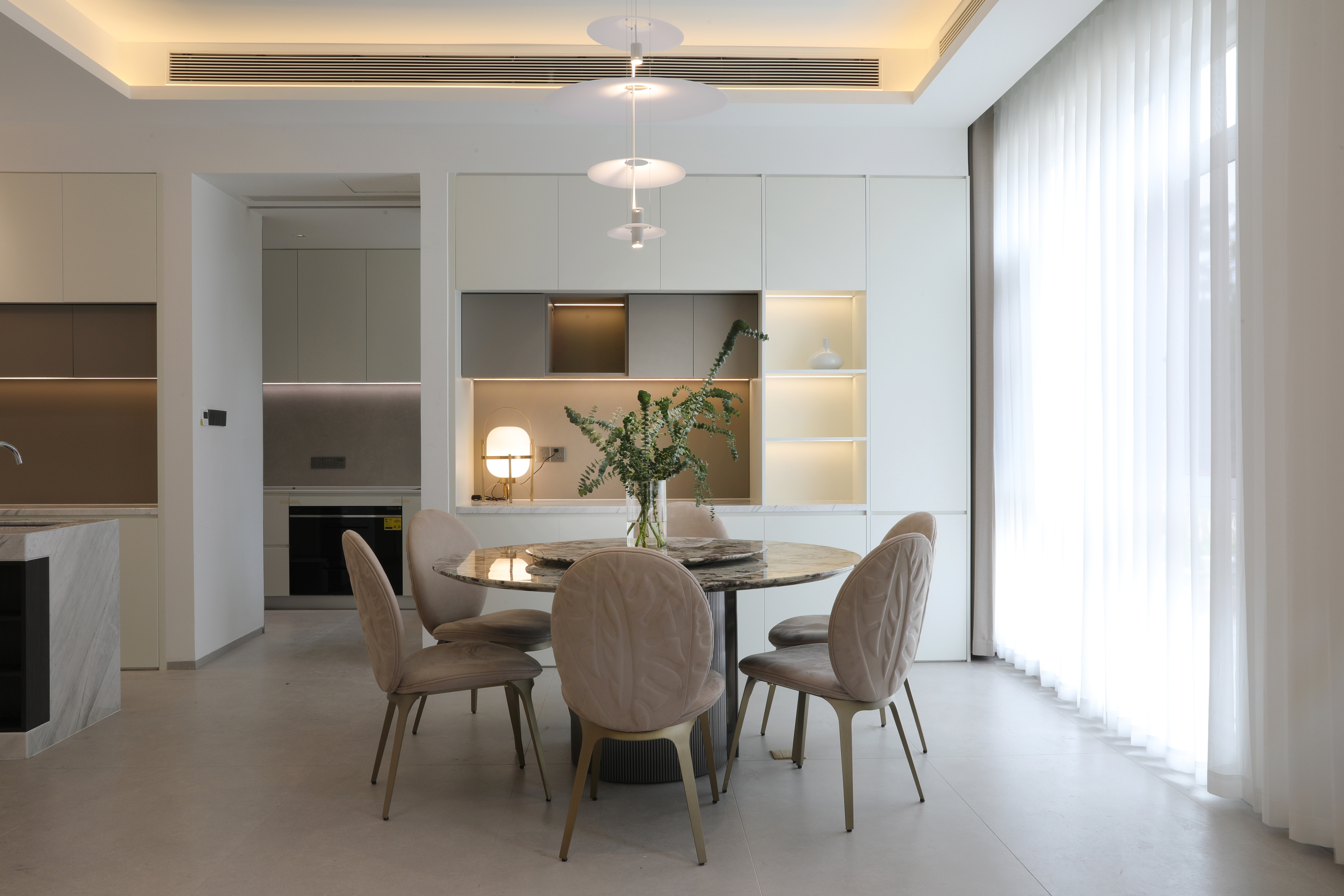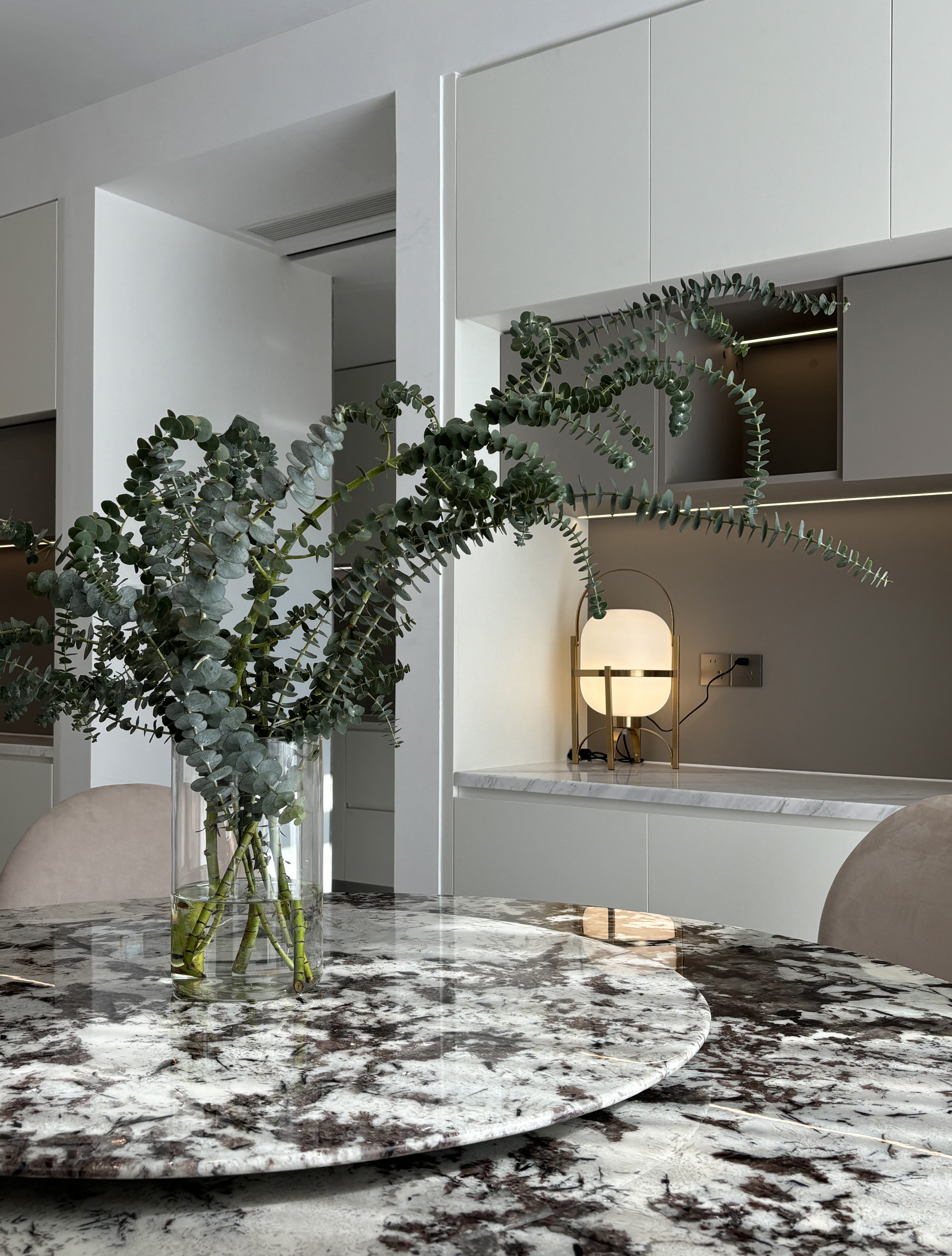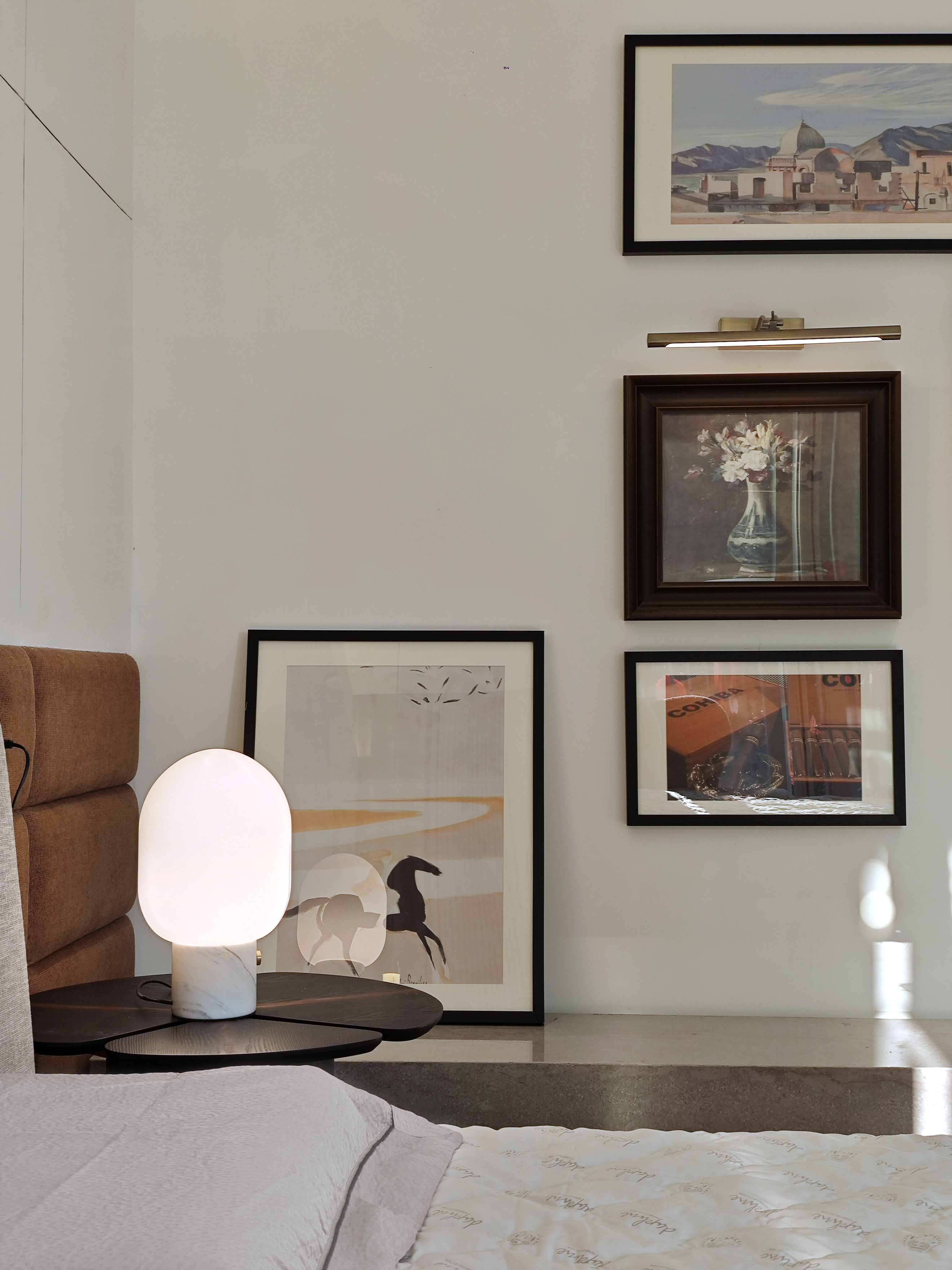 空间布局:布局以开放、通透为主,通过合理的空间划分,将公共空间相互融合,形成开阔的视野和流畅的动线。低调的留白处理,赋予了艺术饰品更多的展示空间。