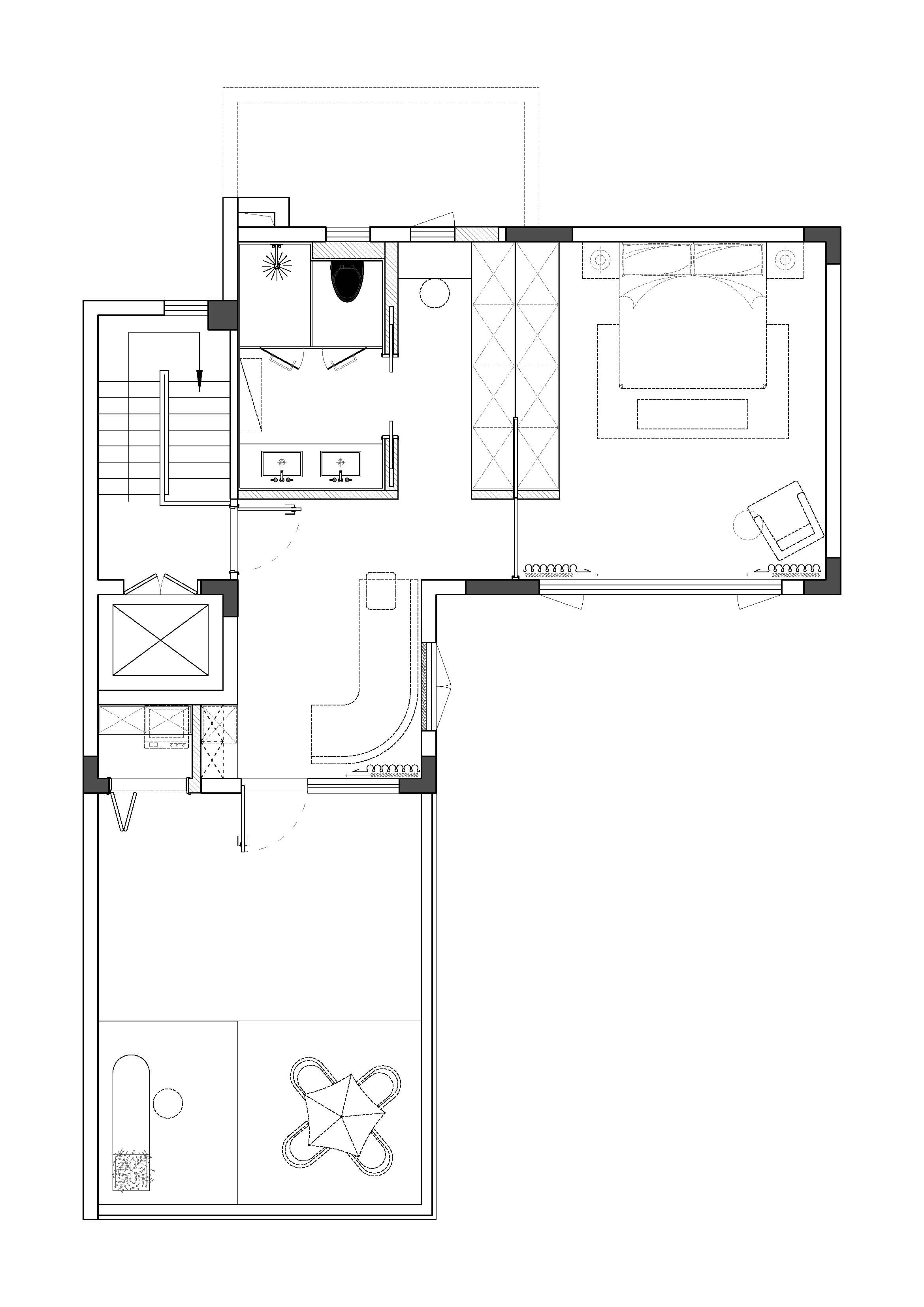 空间布局:空间布局兼顾夫妻与女儿的起居需求,同时预留灵活区域,满足家族团聚场景。