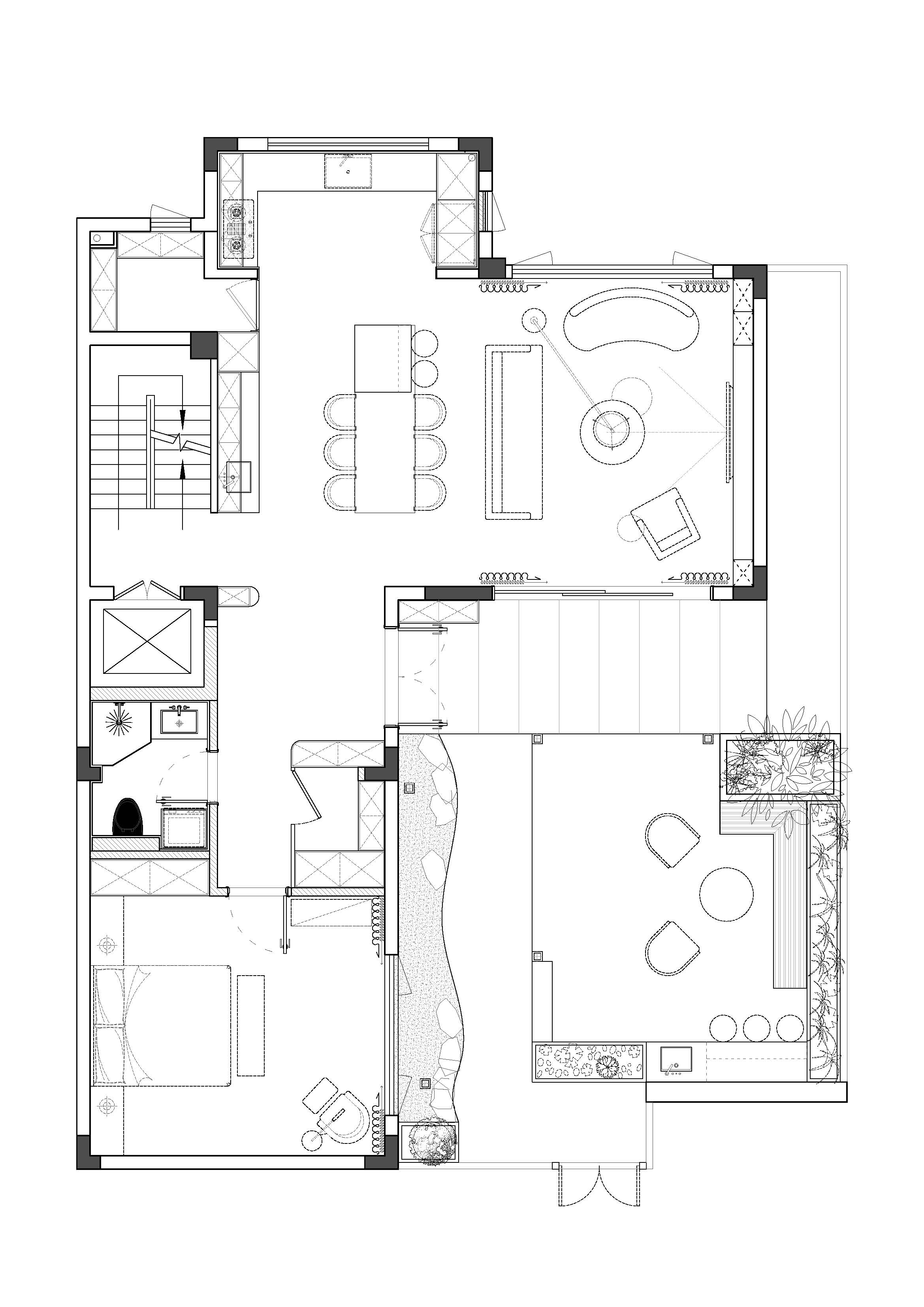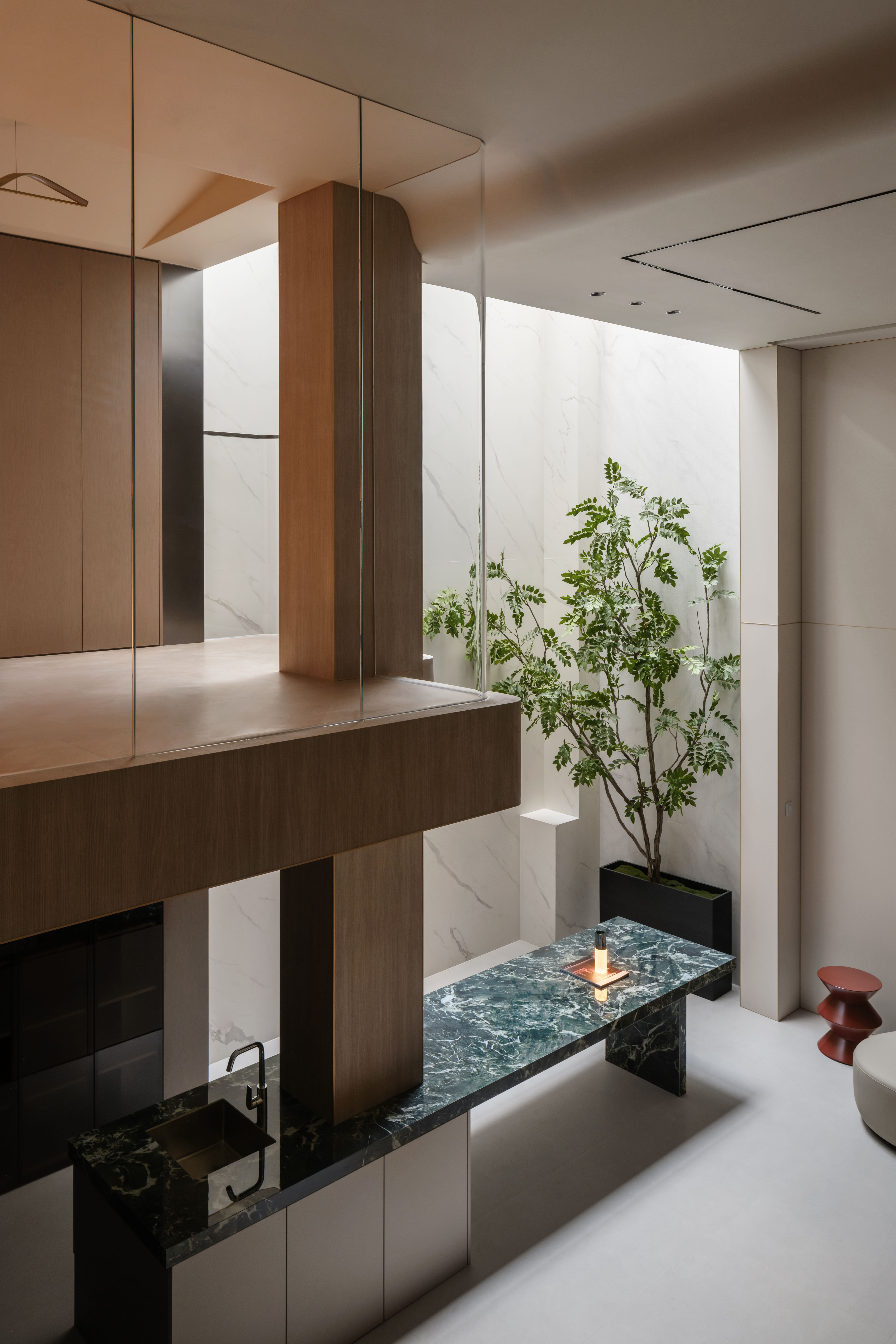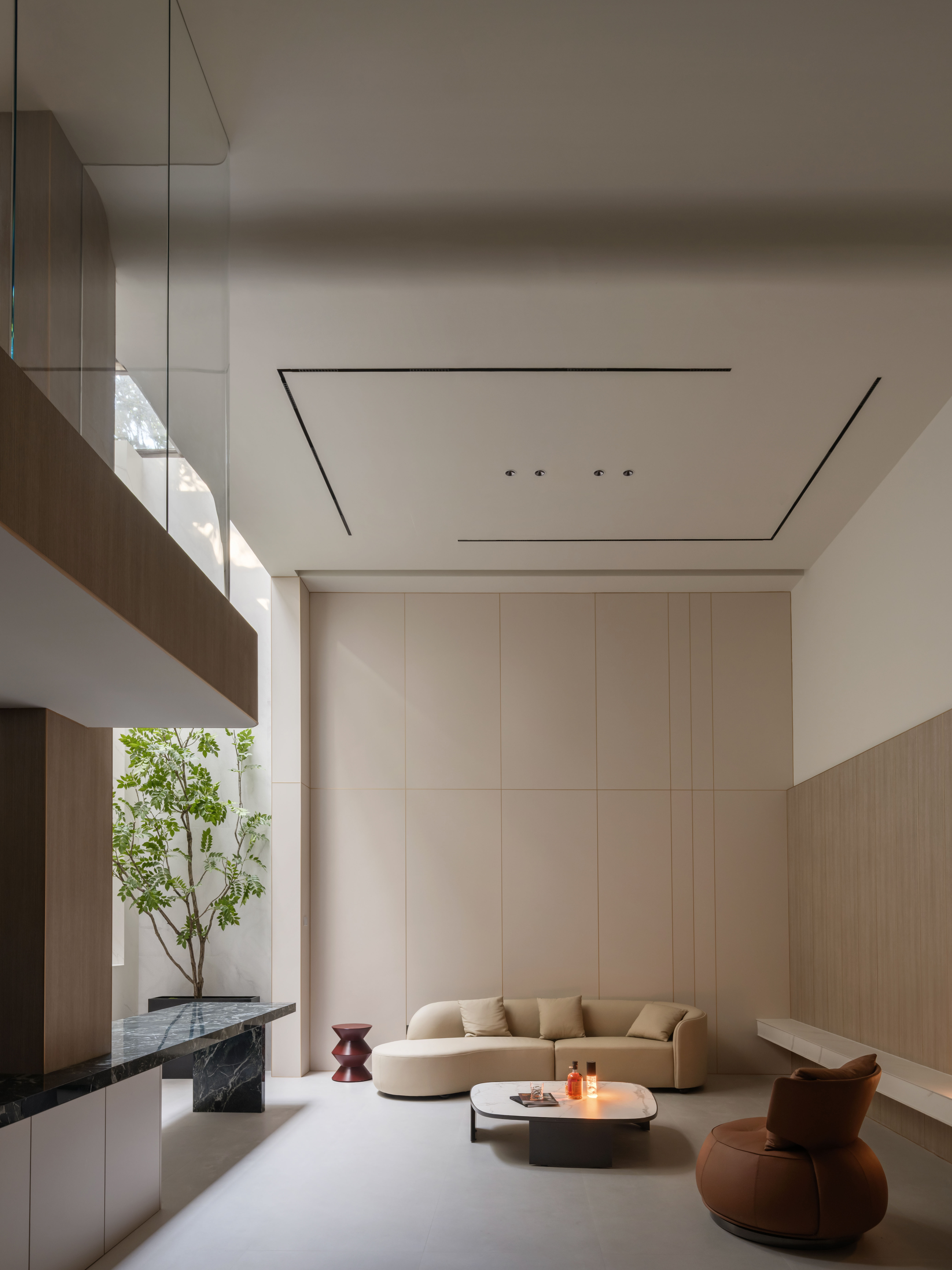 空间意境:结合自然生态的外部环境,引景入室,营造通透开阔的观景视野;创造一种自然生态的松弛舒适的生活都市生活方式。
