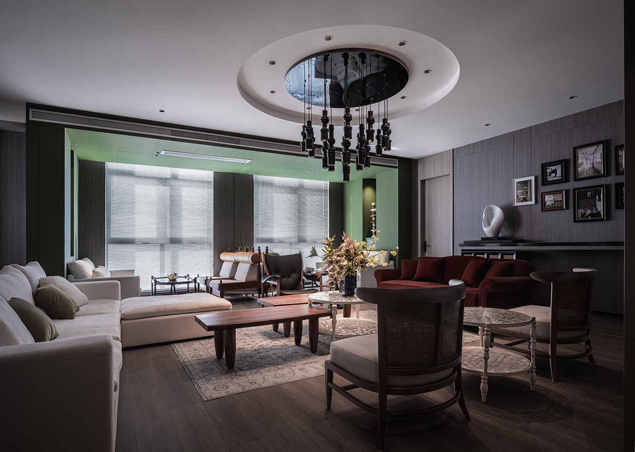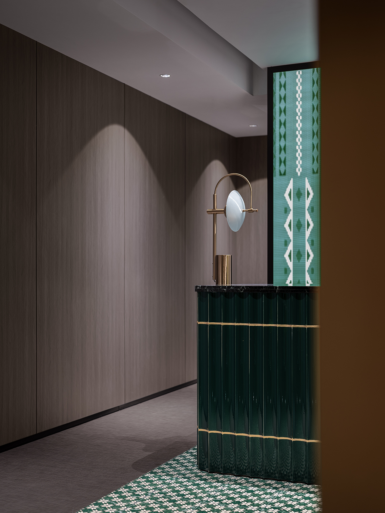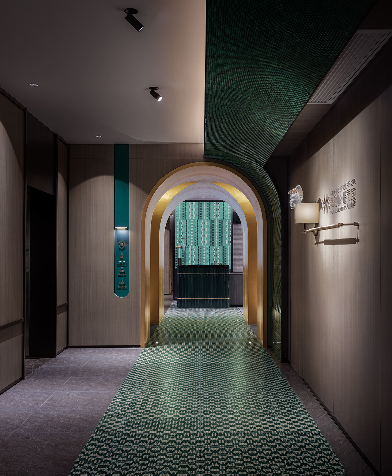 空间意境:公区融合项目当地传统文化元素,将当地纹样与雨林翡翠绿、佛寺金相结合,营造庄重而富活力的氛围。