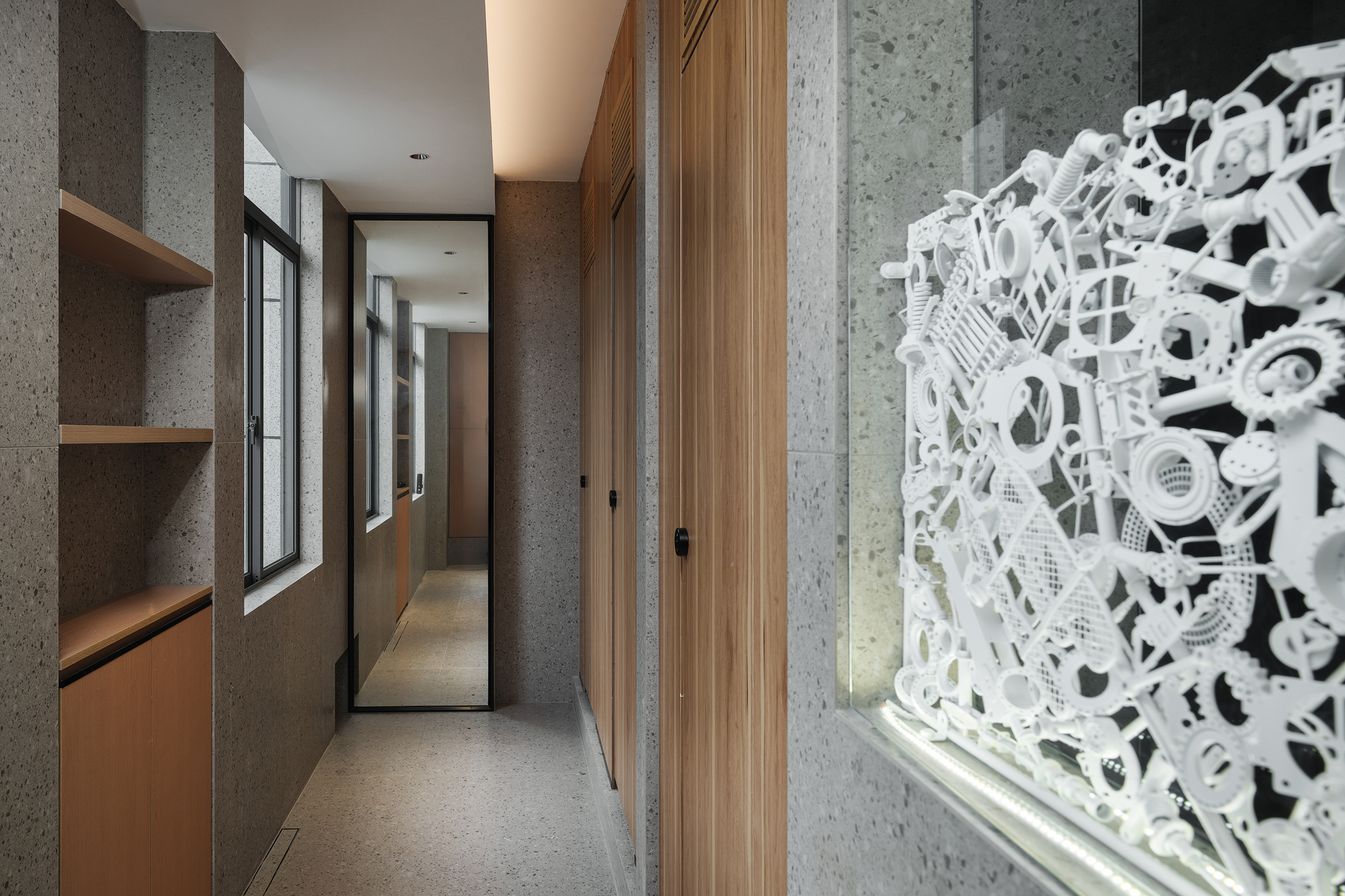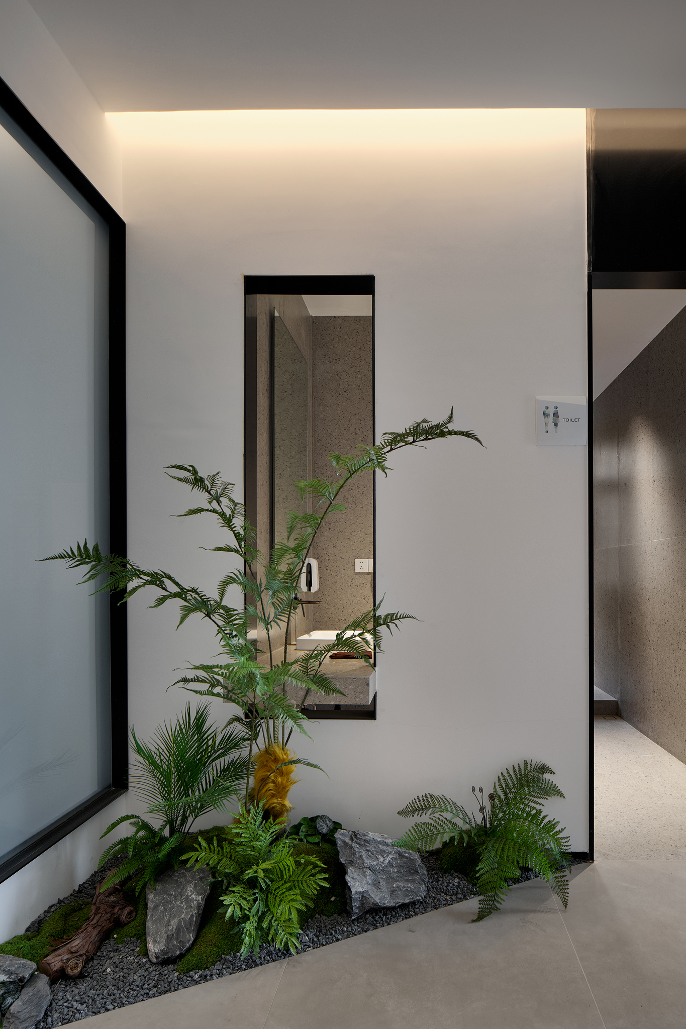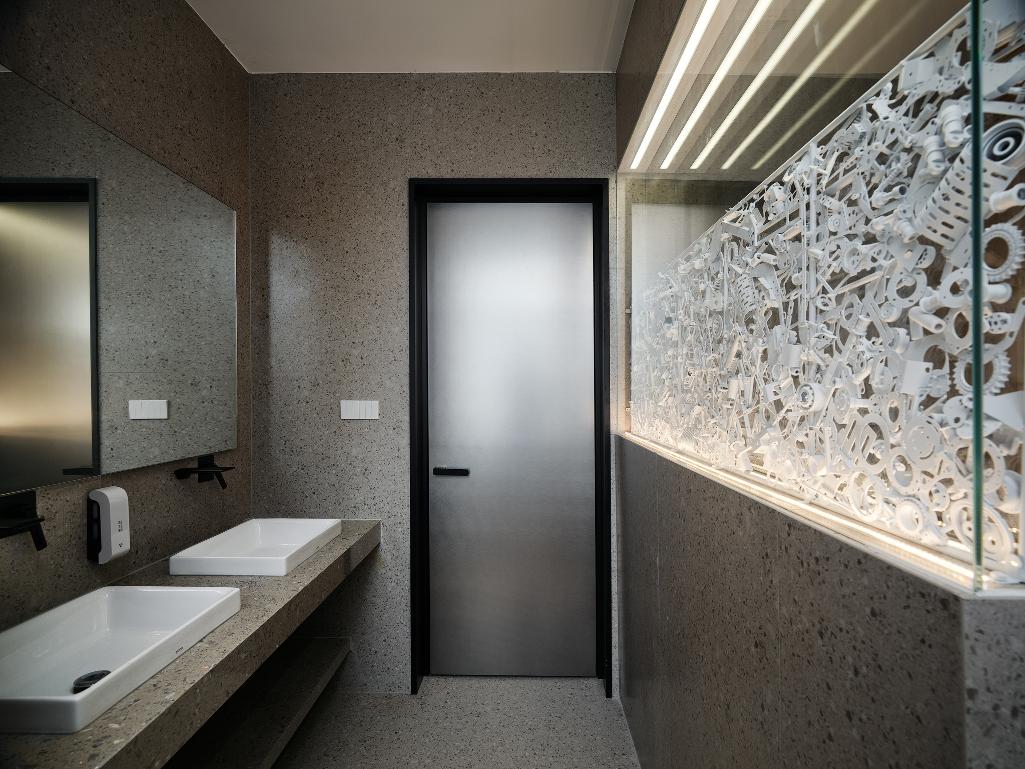 设计选材:以废弃的模型零件作为隔断的形式展现,展现浓浓的机械美学。坚持将机械感融入许多细节,除了柱子与天花穿插感,在柱子边缘还做了一圈造型,酷似在组装零件的时候,需要掰断的那部分,也是充满了组装玩味。