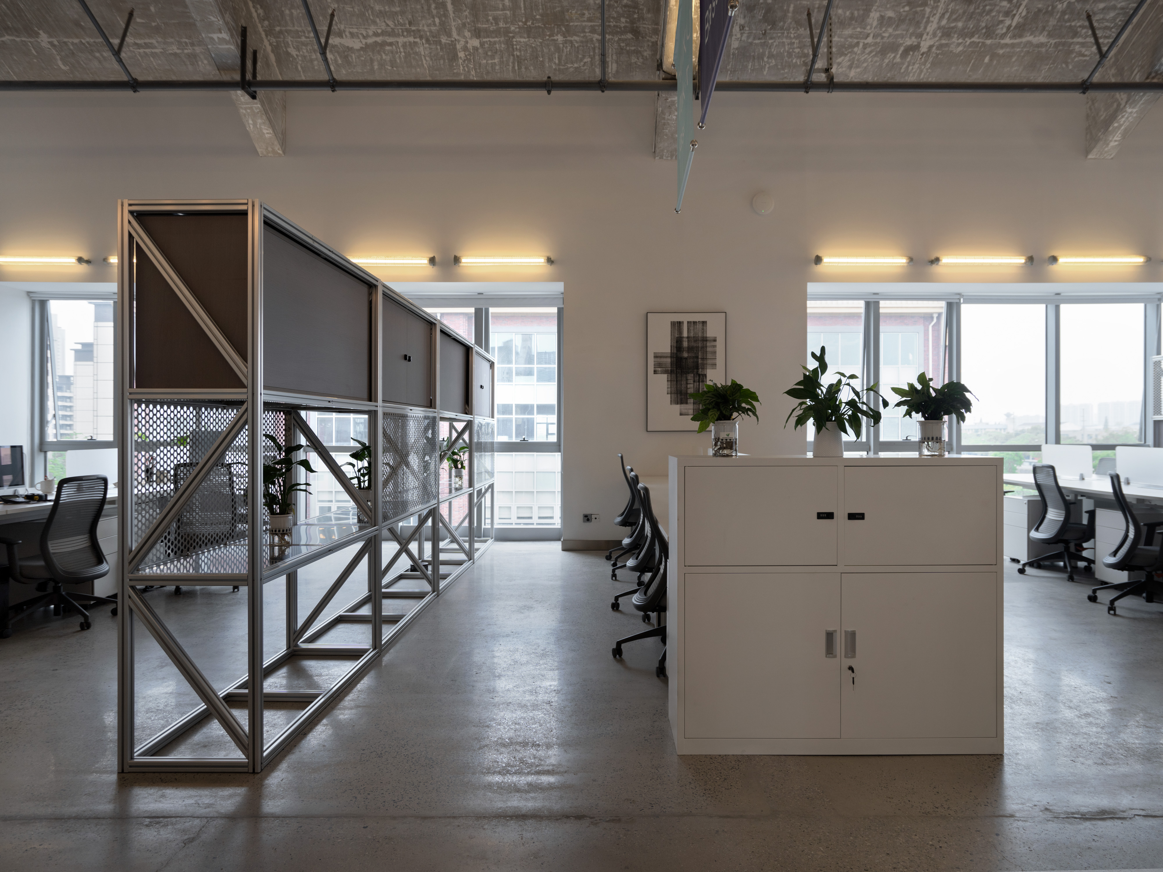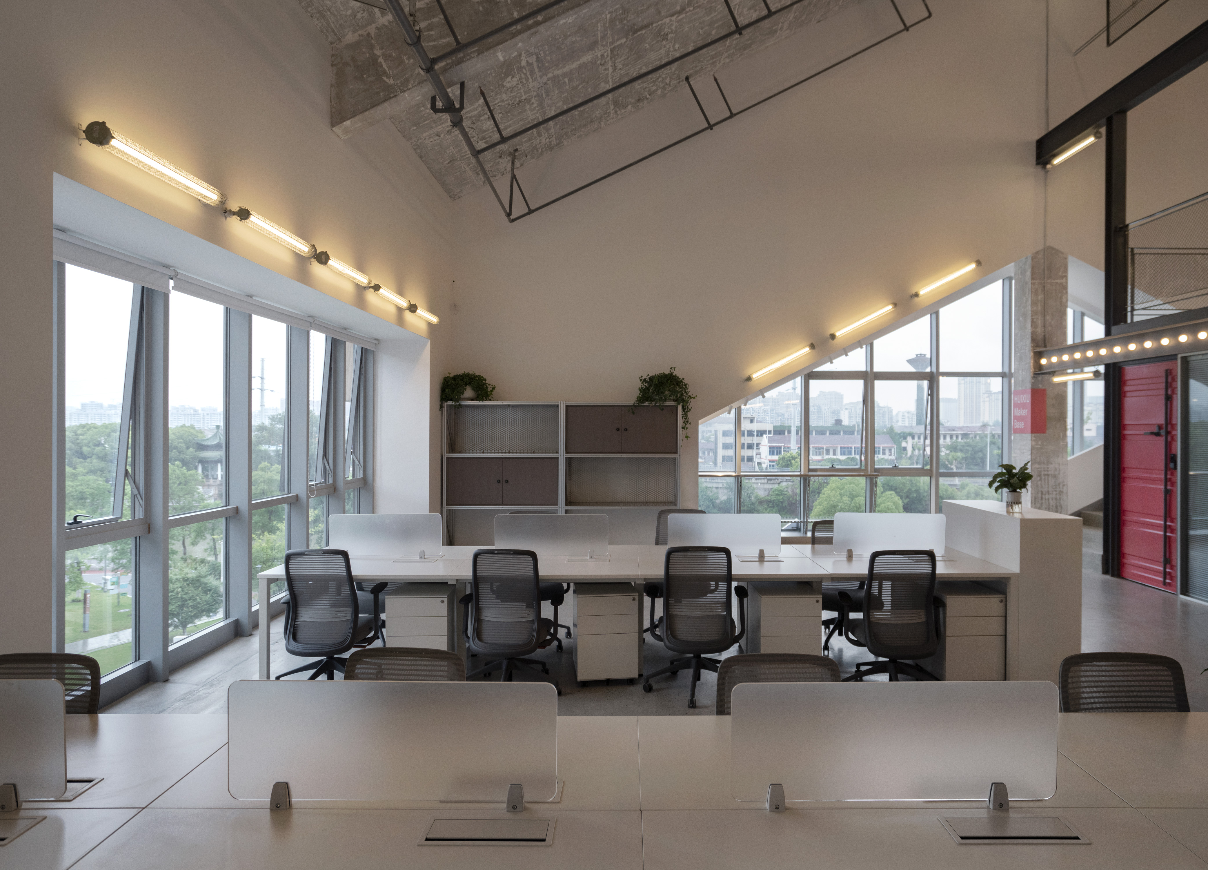 该项目是位于常州市天宁区凤凰岛北路的一处商业建筑内,委托方希望我们把它改造成一个服务社区的共享办公空间。本项目主要服务于社区中的中小型公司以及一些自由职业者,他们有着不同的定位和特点。我们希望打造一个包容性比较强的共享空间,让各个行业的不同个性都能够在此兼容,因此使用了较多的设计元素使整个空间更具丰富的混搭感。 The project is located in a commercial building on Fenghuangdao North Road, Tianning District, Changzhou City. The client hopes that we can transform it into a co-working space serving the community. This project mainly serves small and medium-sized companies in the community as well as some freelancers, who have different positioning and characteristics. We want to create a more inclusive shared space, so that different personalities of various industries can be compatible here, so the use of more design elements to make the whole space more rich sense of mixing and matching.