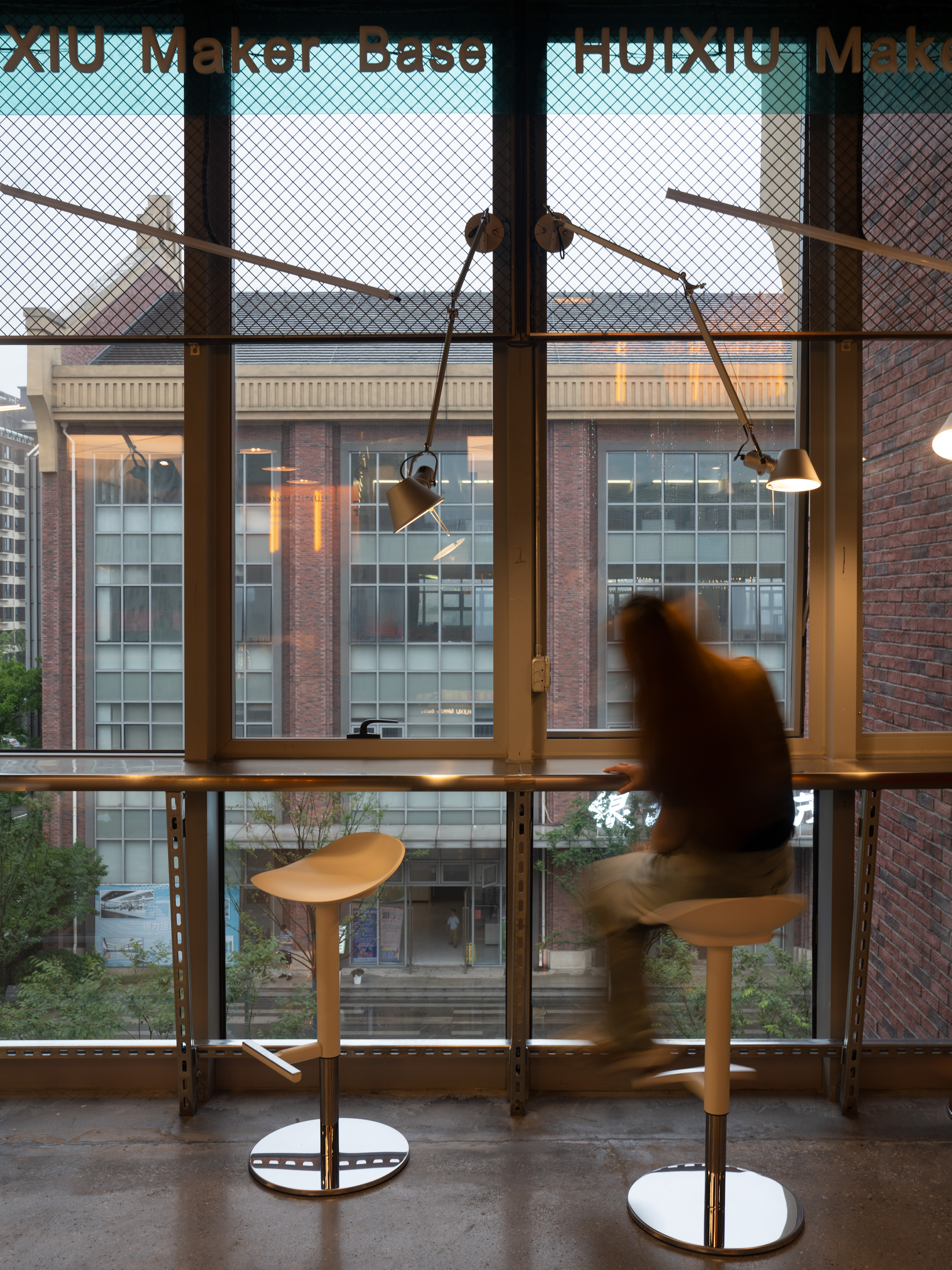 ▲窗边吧桌 Bar Table By Window ————窗边设置有吧桌,我们希望这里除了办公和社交以外也为人们提供一些独处空间。 There is a bar table by the window, which we hope will provide some solitude for people in addition to working and socializing.