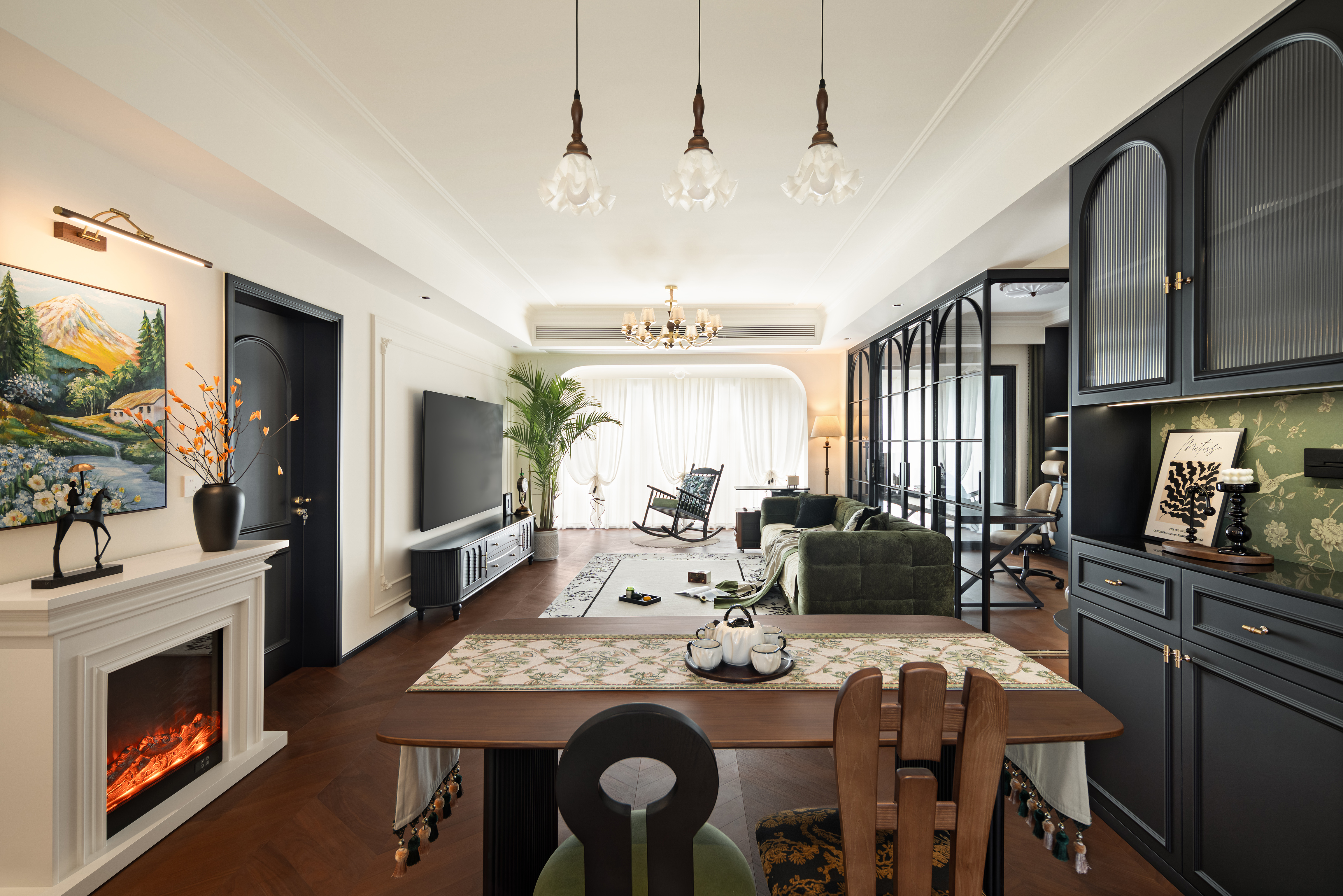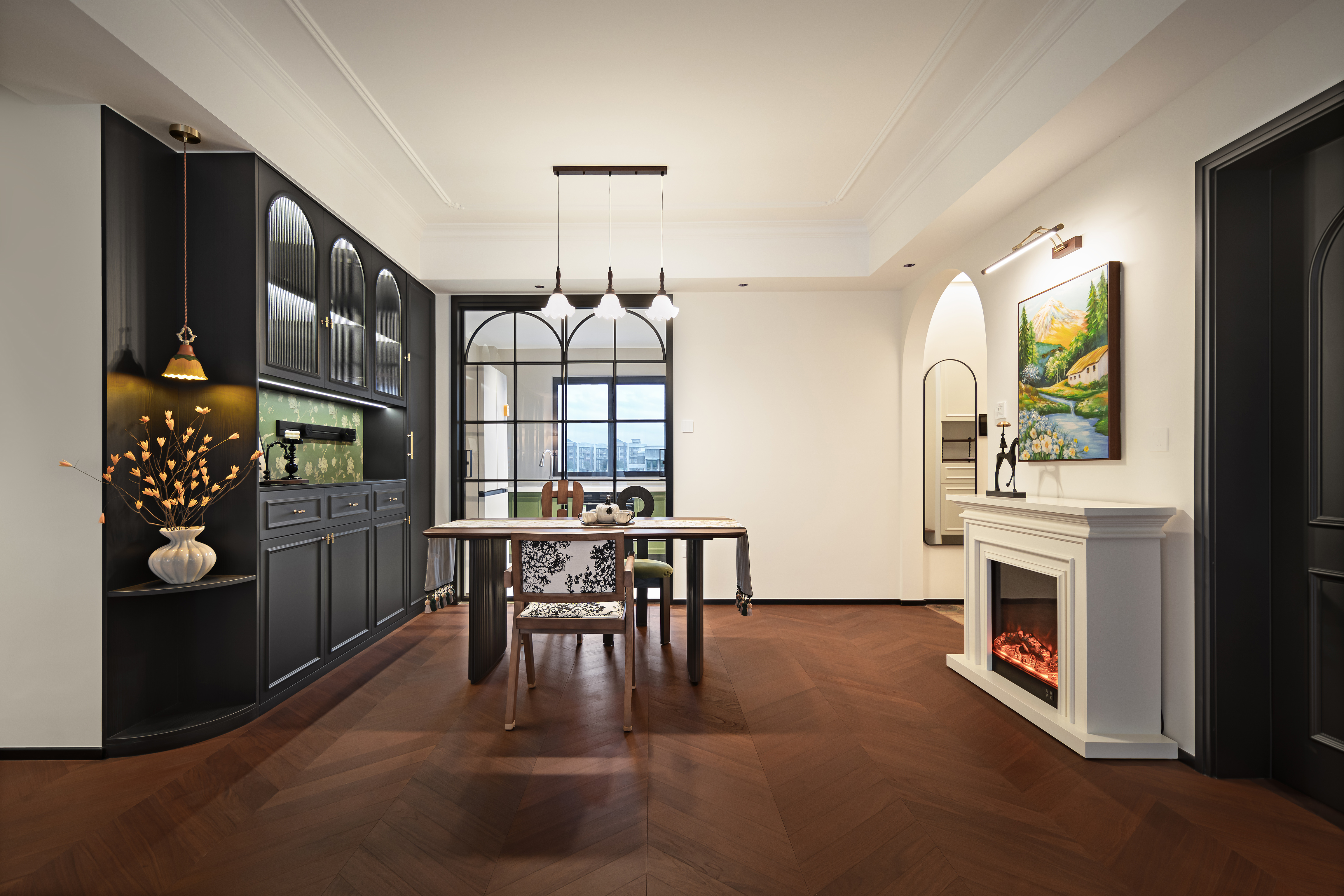 复古吊灯投下柔和光晕,映照在花瓶上,伴着壁炉的温暖,餐厅每一次的用餐都像是一场浪漫的聚会。