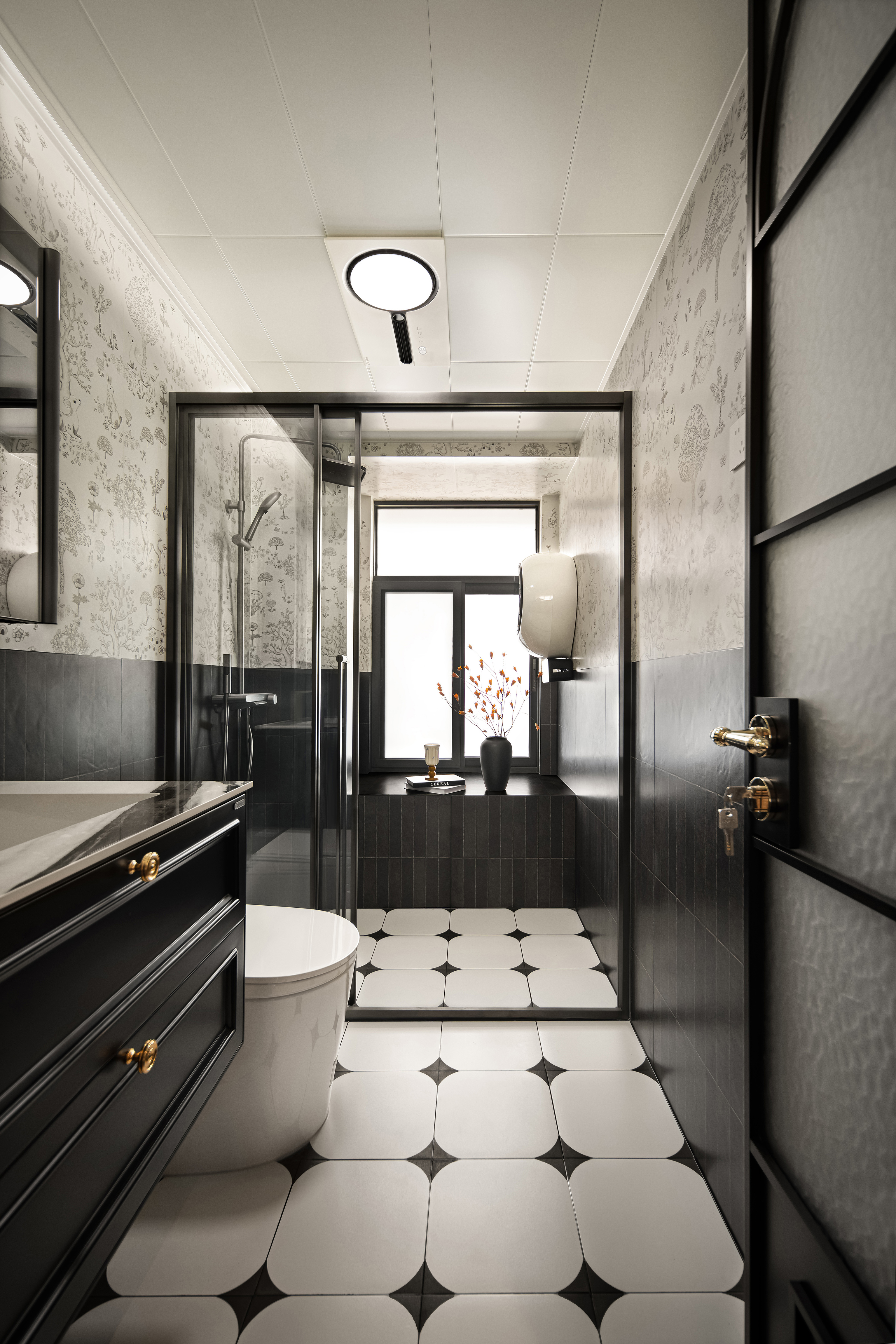 卫生间仿幻想成欧式古典花园,将复古灵感与实用功能深度融合,花纹壁纸宛如花园小径的石板,界定了空间层次。色彩丰富的地面花砖,像是花园里绽放的多彩花朵,为空间注入活力。