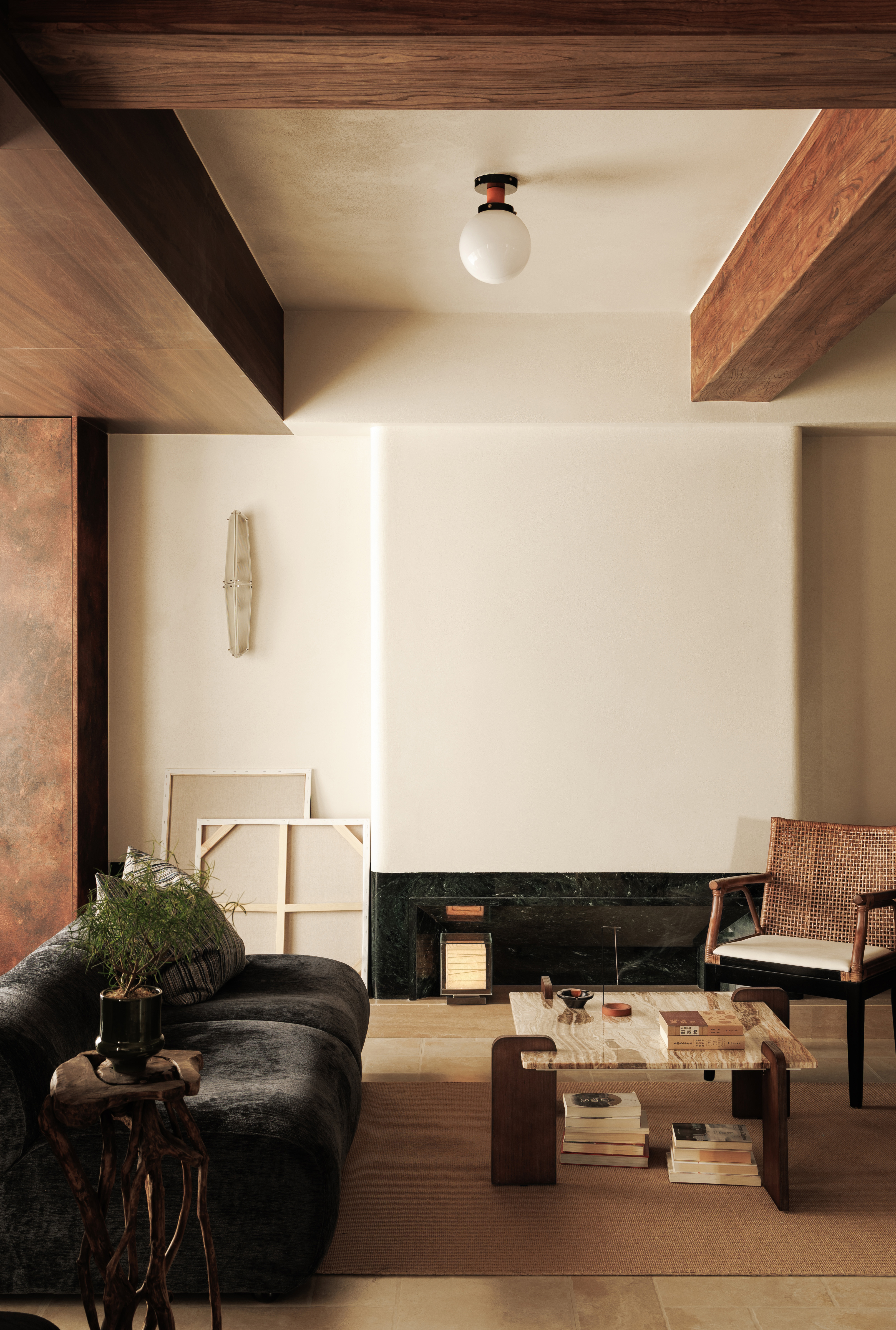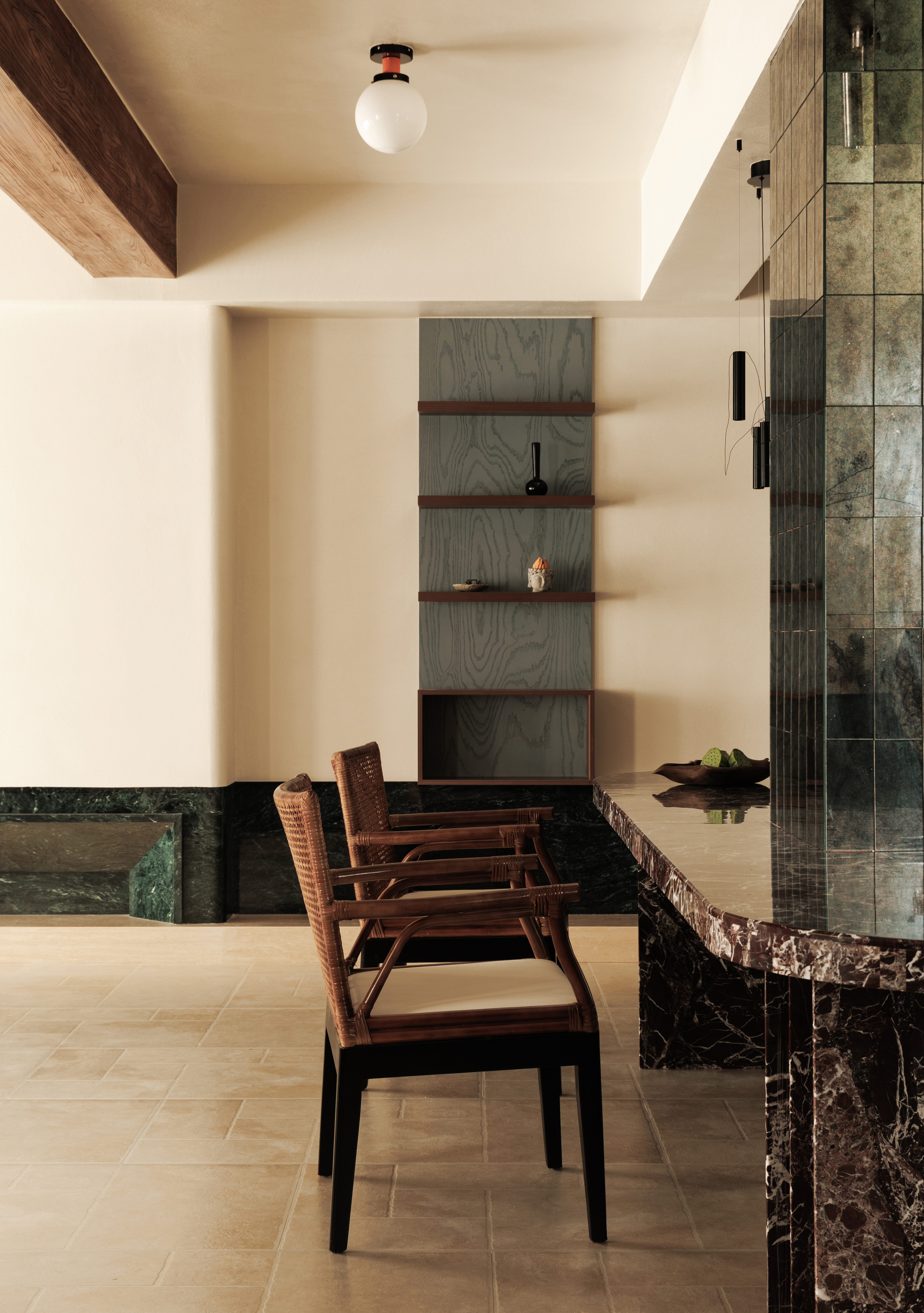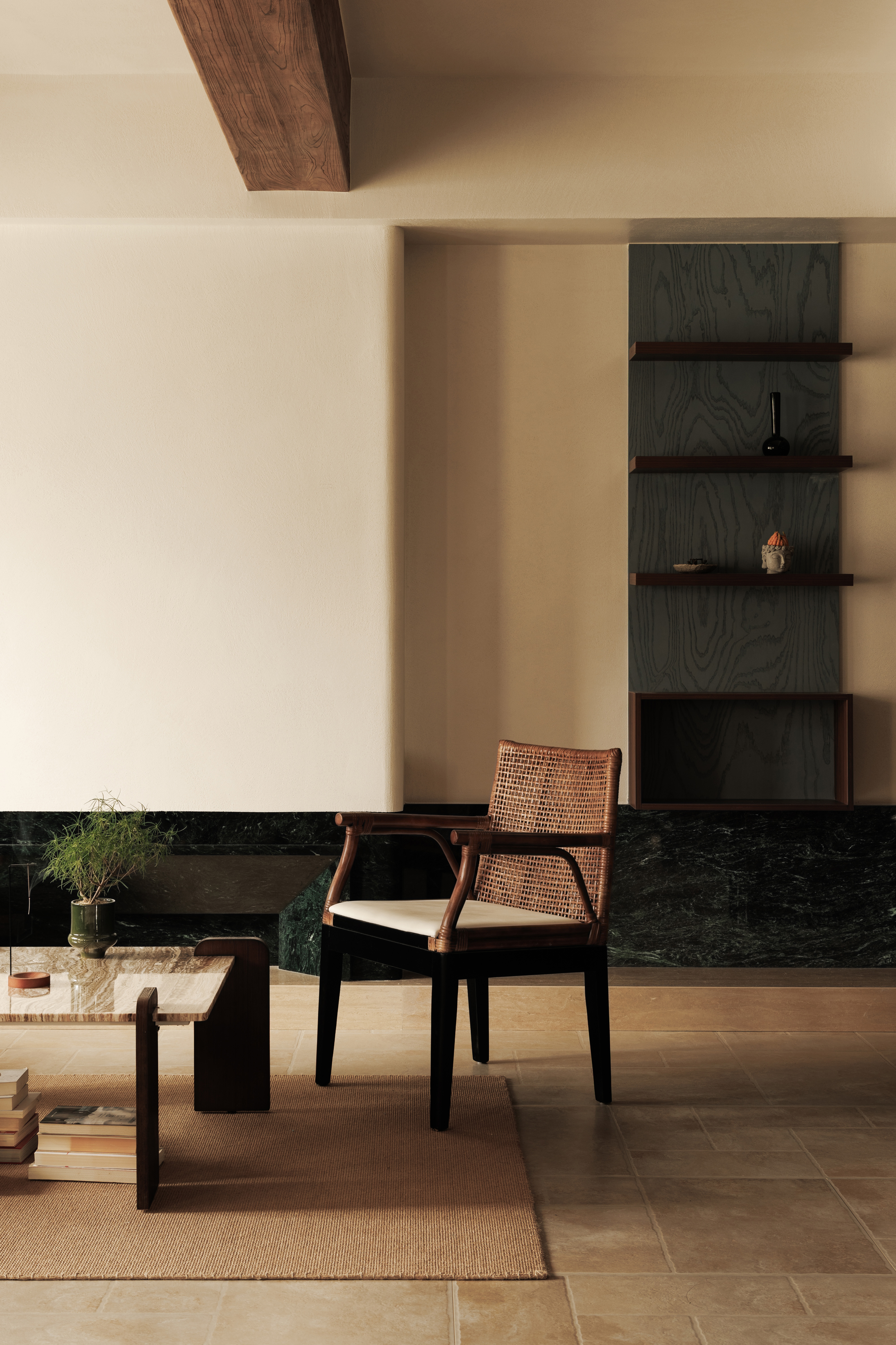 山与缦的结合,正如坚硬的石材被一层轻柔薄雾包裹,晨光穿过氤氲,洒下柔和的光线。石材与原木的粗犷肌理,并非冰冷的展示,它们承载着时间的记忆与自然的呼吸;而当它们与纱帘的朦胧、绒布的温润光泽相遇,便构成了空间中最动人的叙事——触感上,是粗糙与光滑的低语;视觉上,则是自然与人文的交融。 -