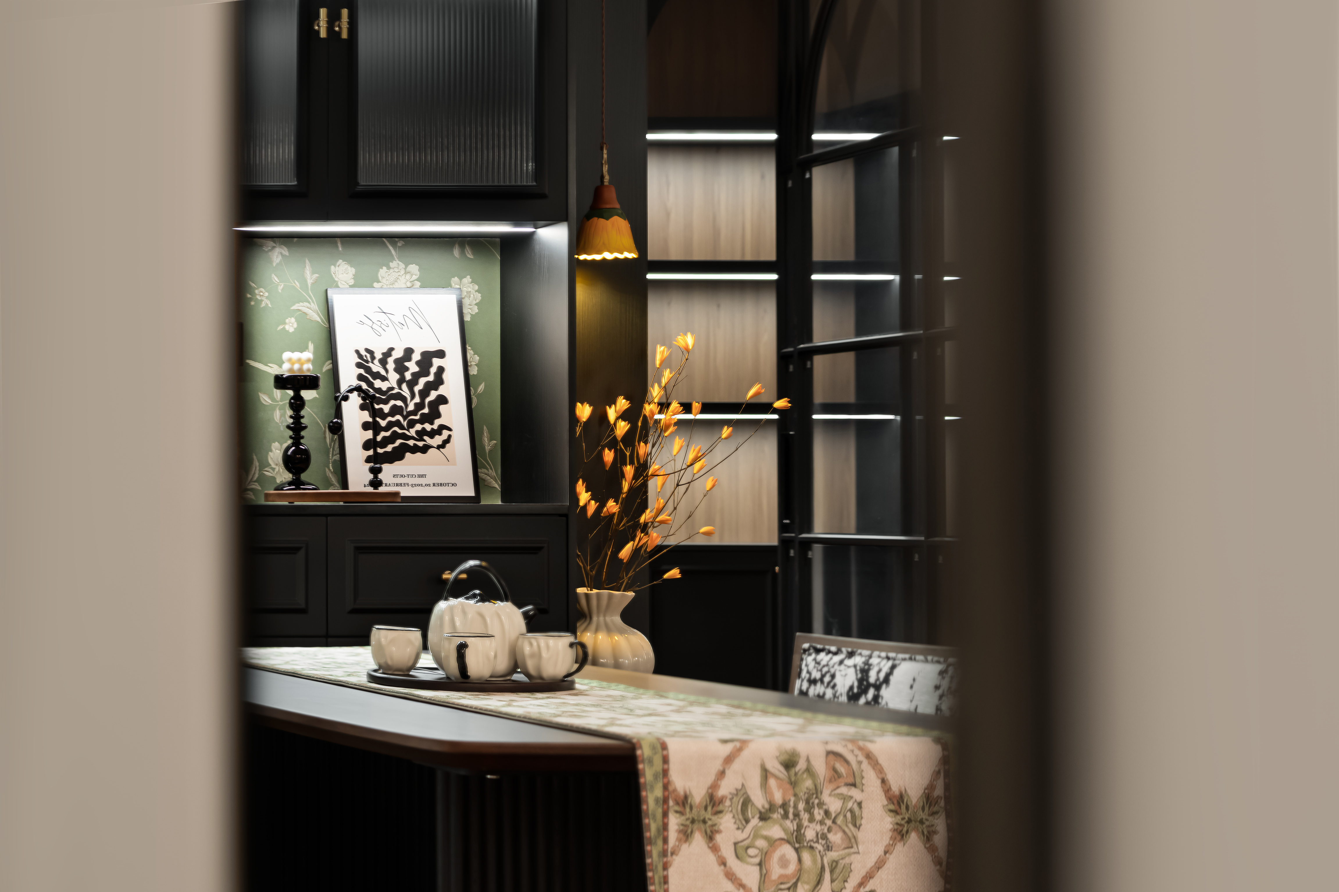 空间意境:餐厅壁炉跳跃的火苗让用餐变成了浪漫的约会,热情、奔放。