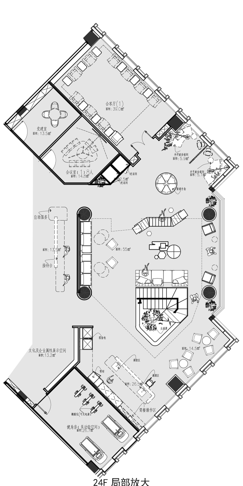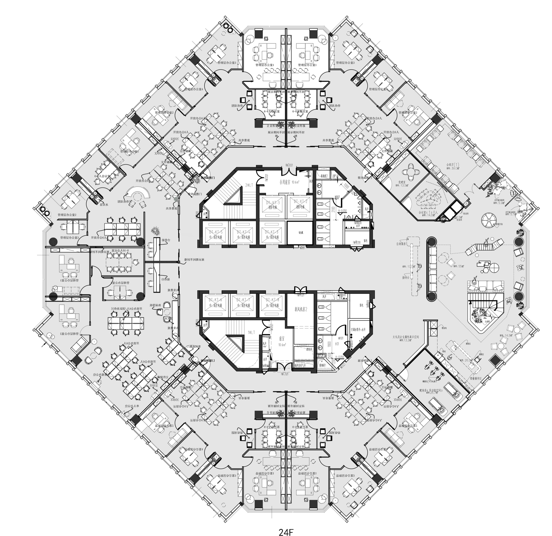 里面的局部放大平面隐藏布局亮点,大面积办公部分有一条内环游,方便业主后期租赁经营。 -