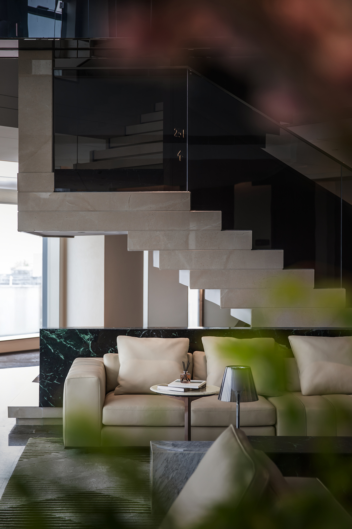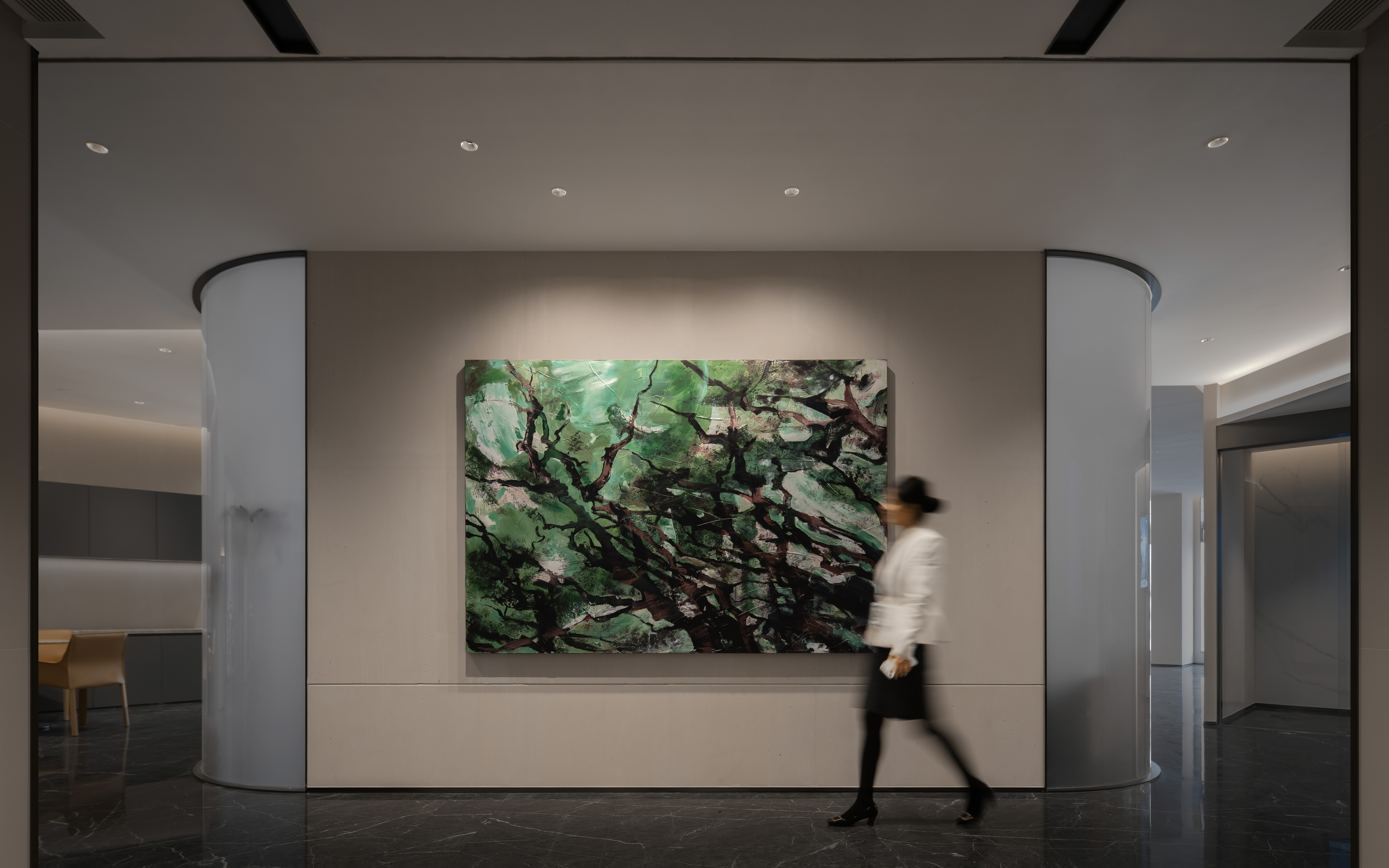 设计选材:共享区域墙面运用大量的人造石材,是废料的再运用。自然色系与现代设计的碰撞,光影以明暗渐变介入,消解界面的冷感,让静态的材质肌理与流动的人影形成微妙互文。这里不仅是办公场所,更是容纳各样文化和可能性的创新空间。