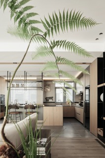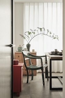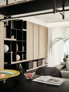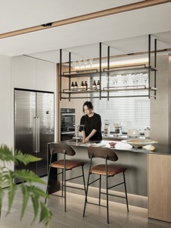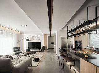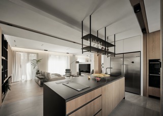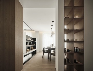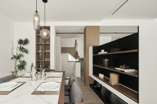 空间布局:设计师于是决定重整住宅结构和动线,在精确满足衣食住用等需求的基础上,构建出一种自由与雅致、奢华与质朴、张扬与内敛之间的对照与平衡,为居室的真正主角——生活内容物创造出生长的空间与土壤。 设计师将必备功能区重新全部植入:将原门厅2/3面积用于构建新的西式厨房;将起居室面积也扩大一倍。 西厨是自我的休憩岛,是在一日之晨激发神清气爽状态的充电站。而餐厅则是社交行为的发生地。社交早已成为当代城市中产家庭生活的重要内容,当朋友欢聚,餐厅不止需要容纳主客,也要为厨师团队留出余裕。以生活场景为原点发想,兼顾群居与独处,