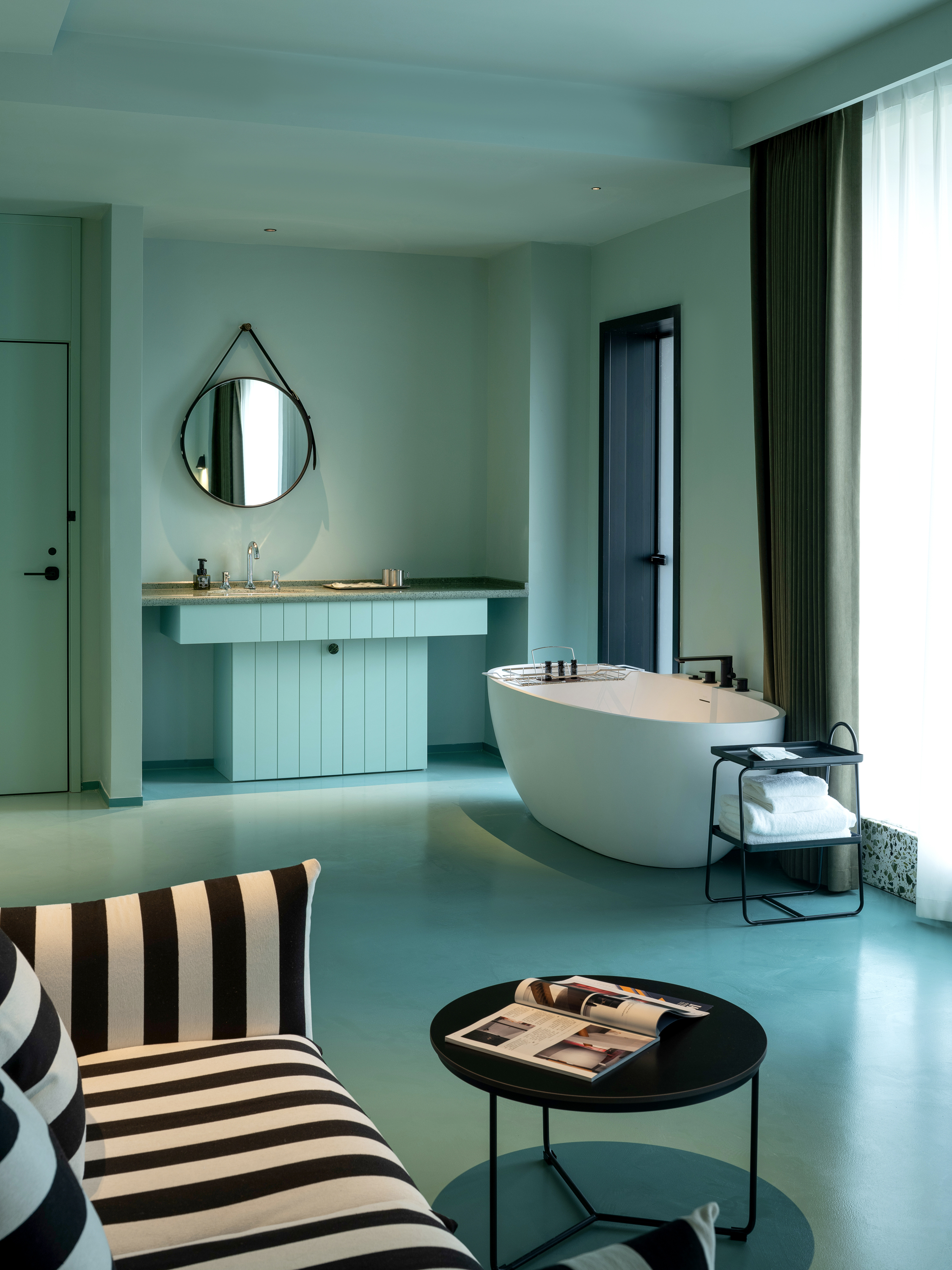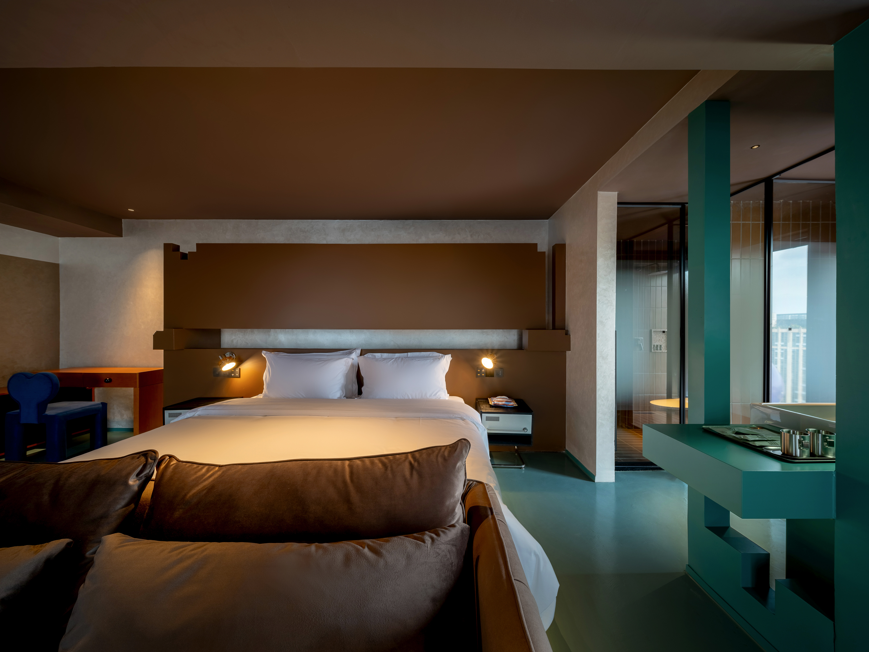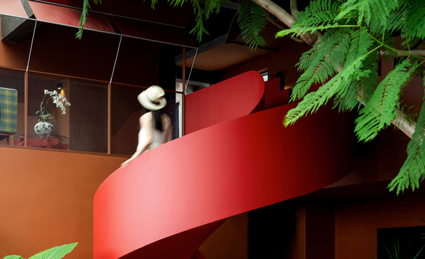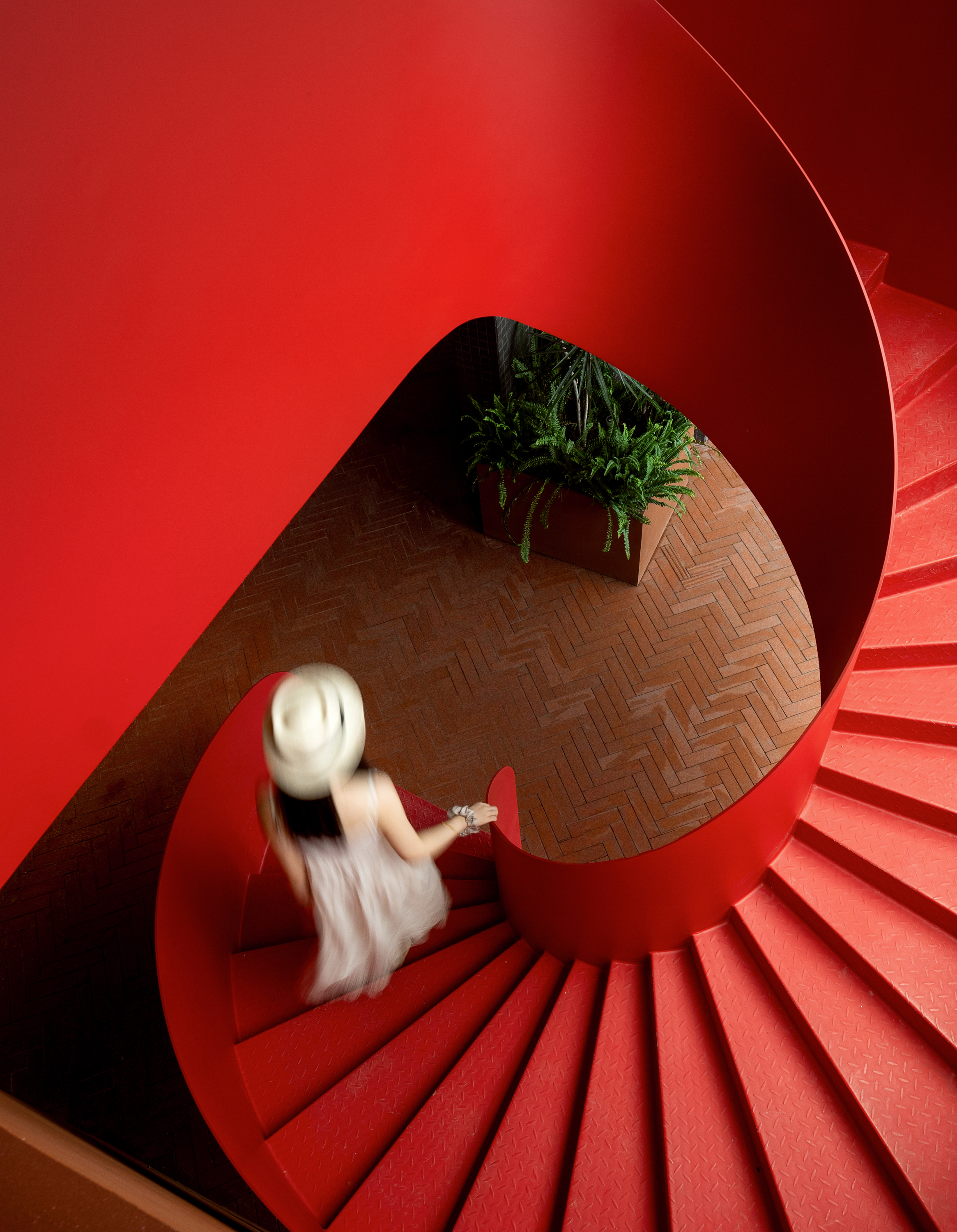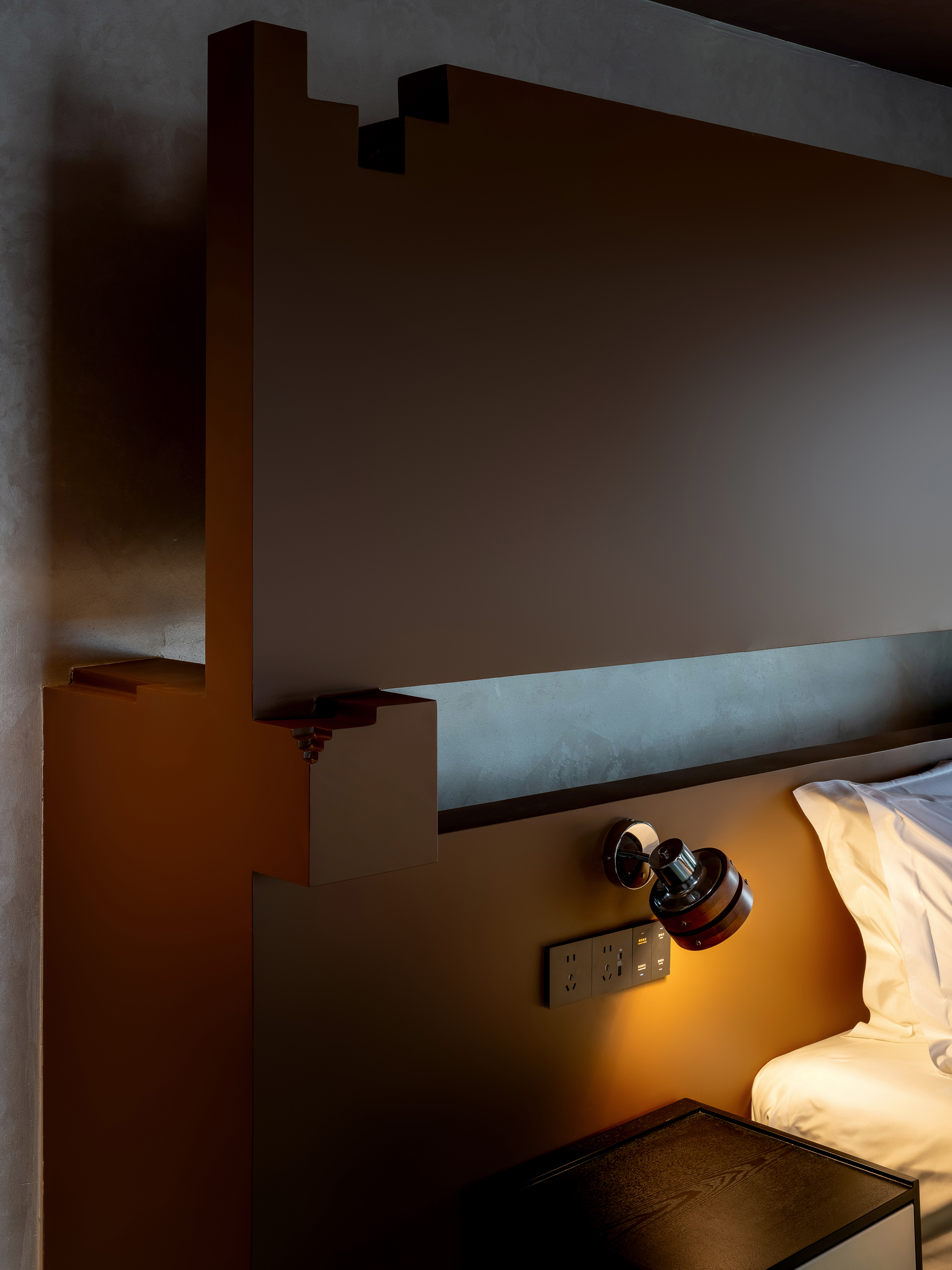项目定位:酒店扎根在成都市中心以西的核心居民区域,四周是斑驳的居民底色,立于市井烟火之中,设计以棕红色极简体块构筑视觉锚点。统一的色彩语言从街道杂色中跳脱,精巧结构穿插出视觉反差,俯仰之间,沸腾的生活气息与当代设计交织融合。