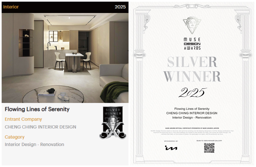 【澄境设计】2025 MUSE Design Awards 郑抿丹弧光逸境绽放灿烂银芒!