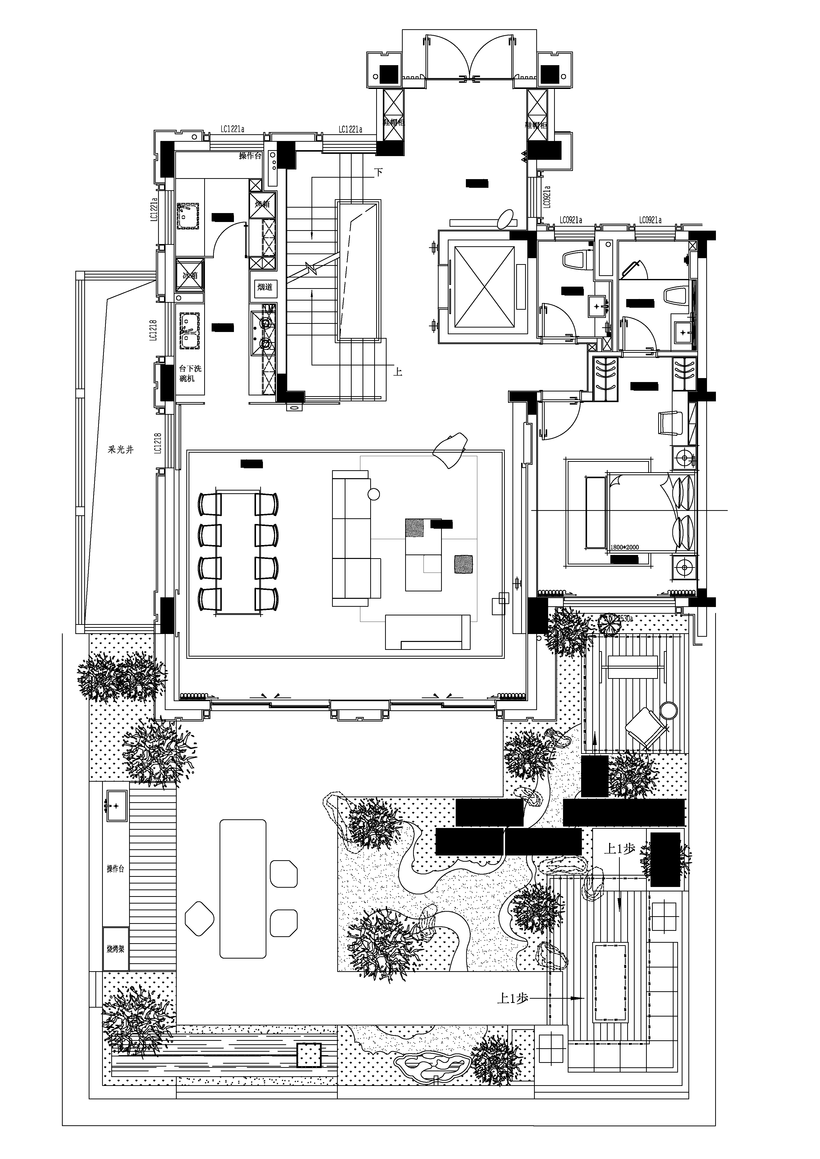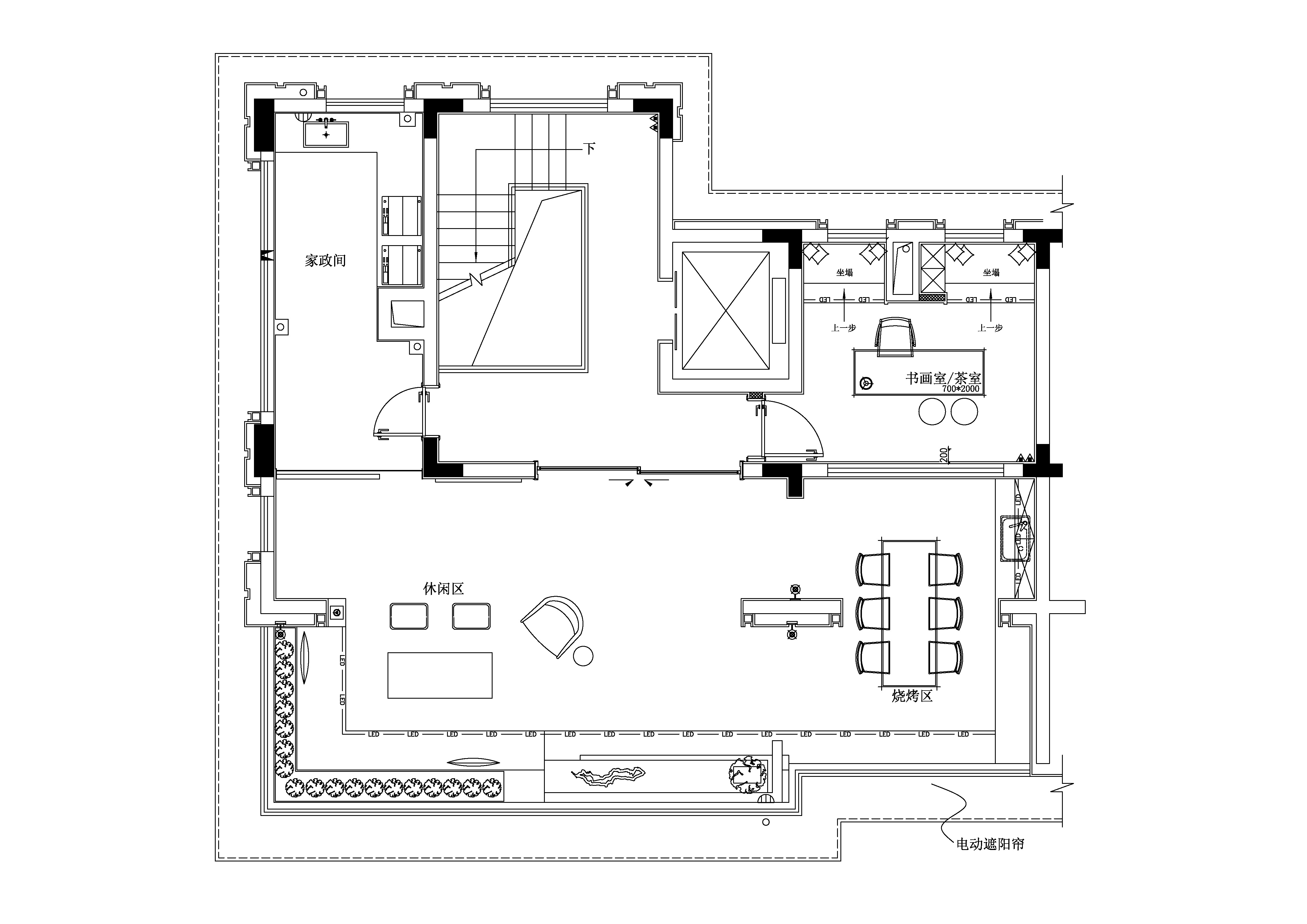 地下室格栅天花取其结构之美镶嵌灯带,呈现出清透的视觉效果,结合温柔的天花光线,赋予空间独特而考究的内涵气质。极具中式韵味与现代感的家居聚合,加之深色禅意桌面,在一枝绿植的熏陶下,生机盎然,张弛有度。