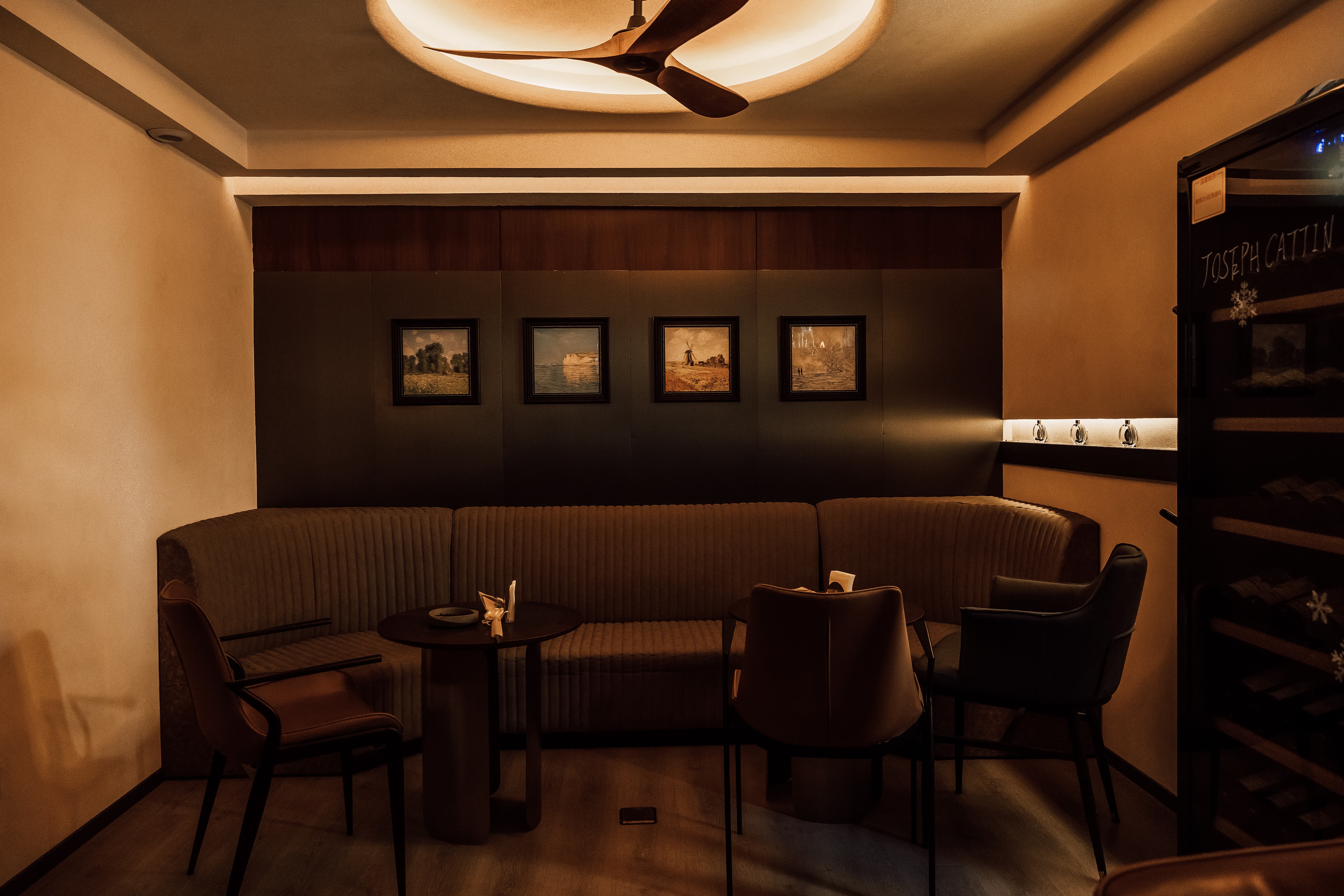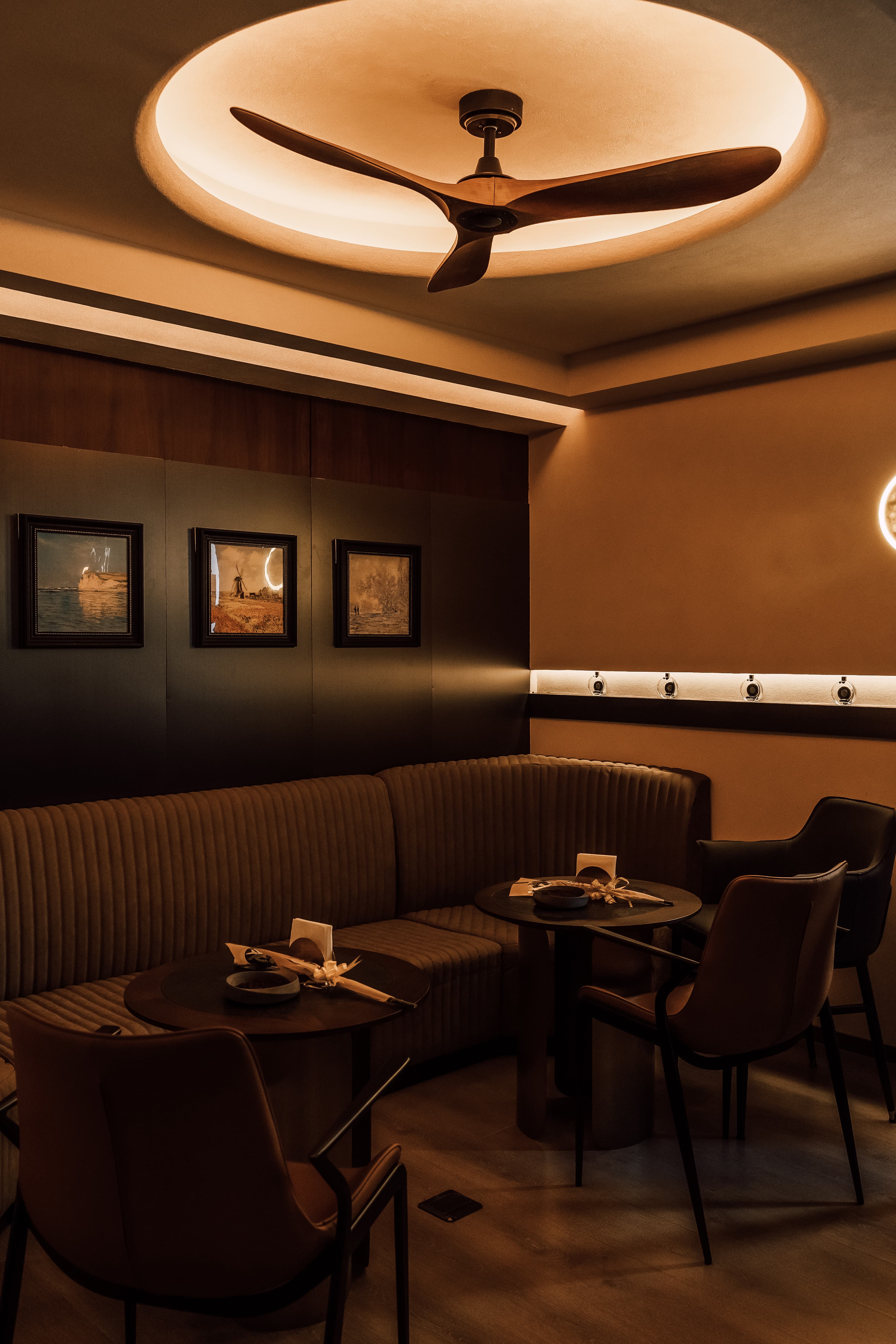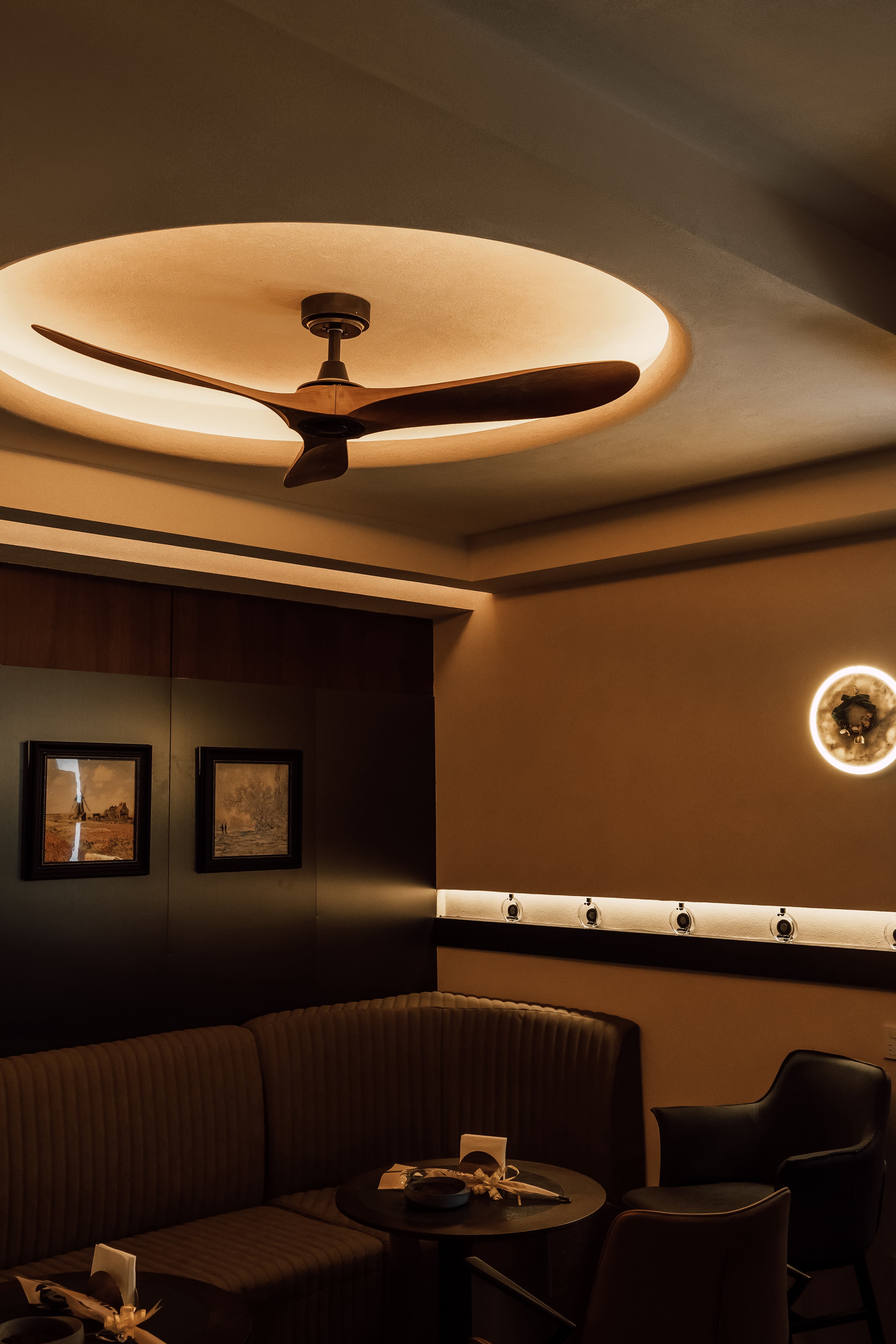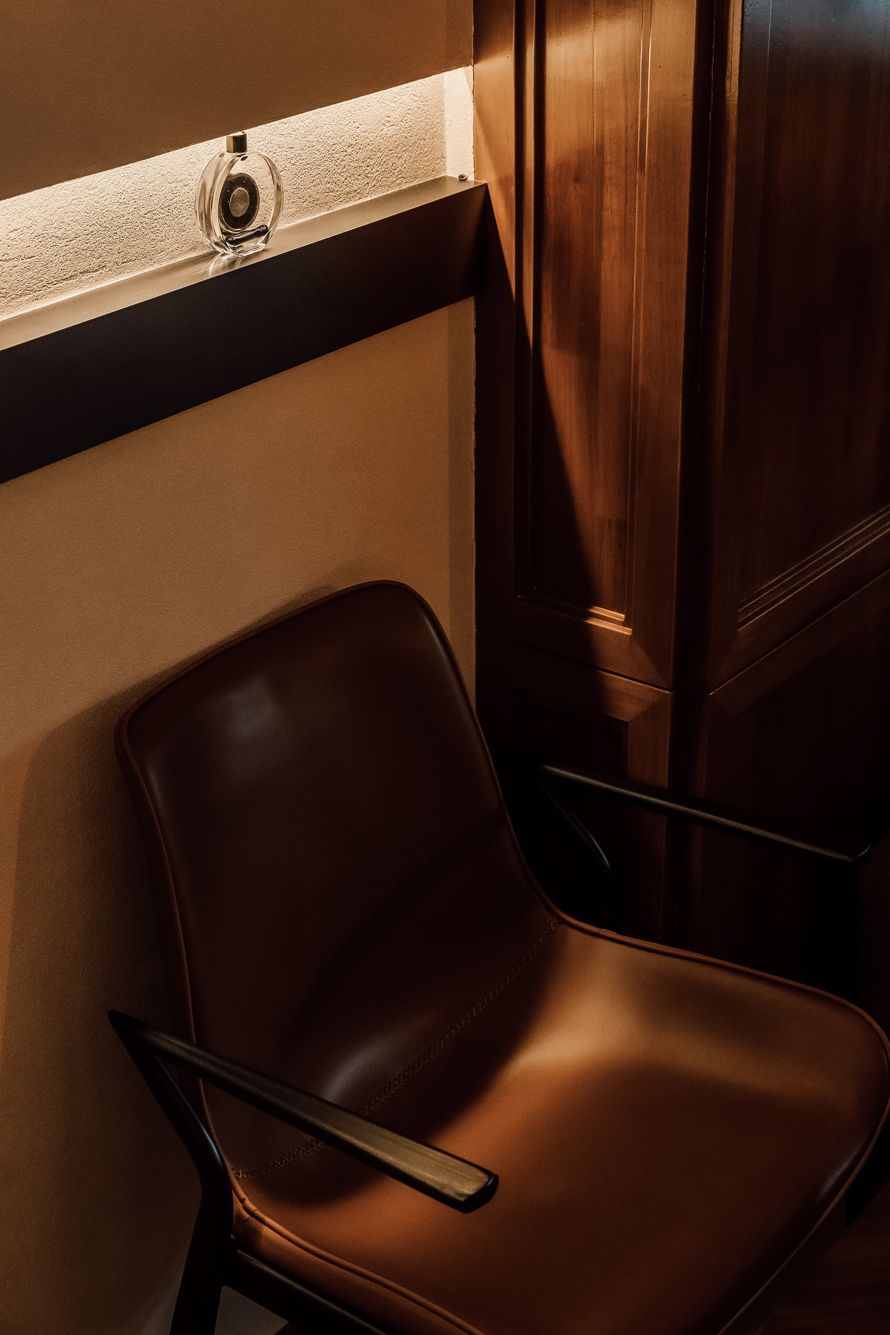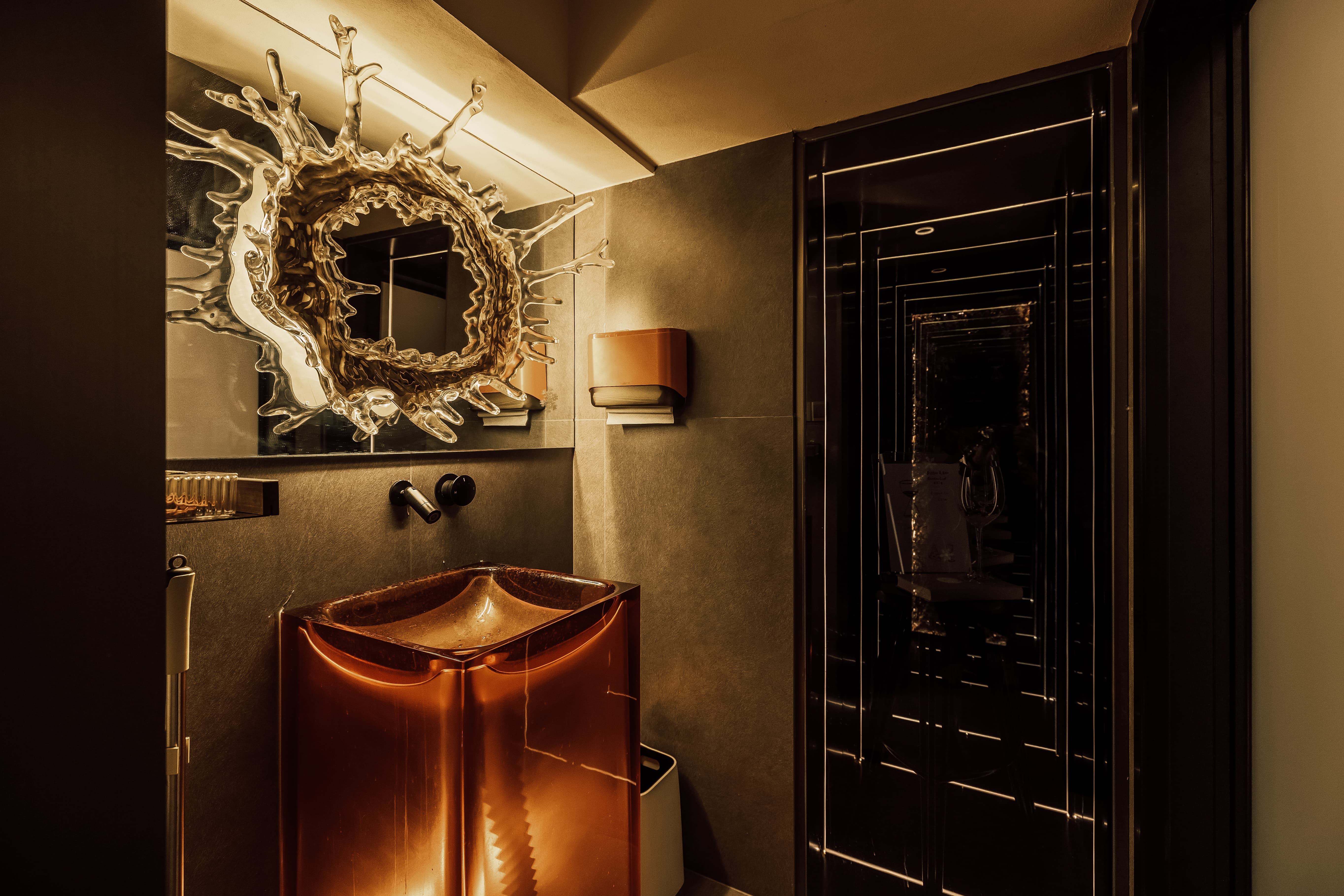 大厅营造的Home bar的氛围,整个空间以温馨为主格调,搭配深渊镜的设计方案,以及深渊镜就是本区域最大的亮点也是最好的记忆点,让人忍不住拿出手机来一个自拍,十分惬意。 -