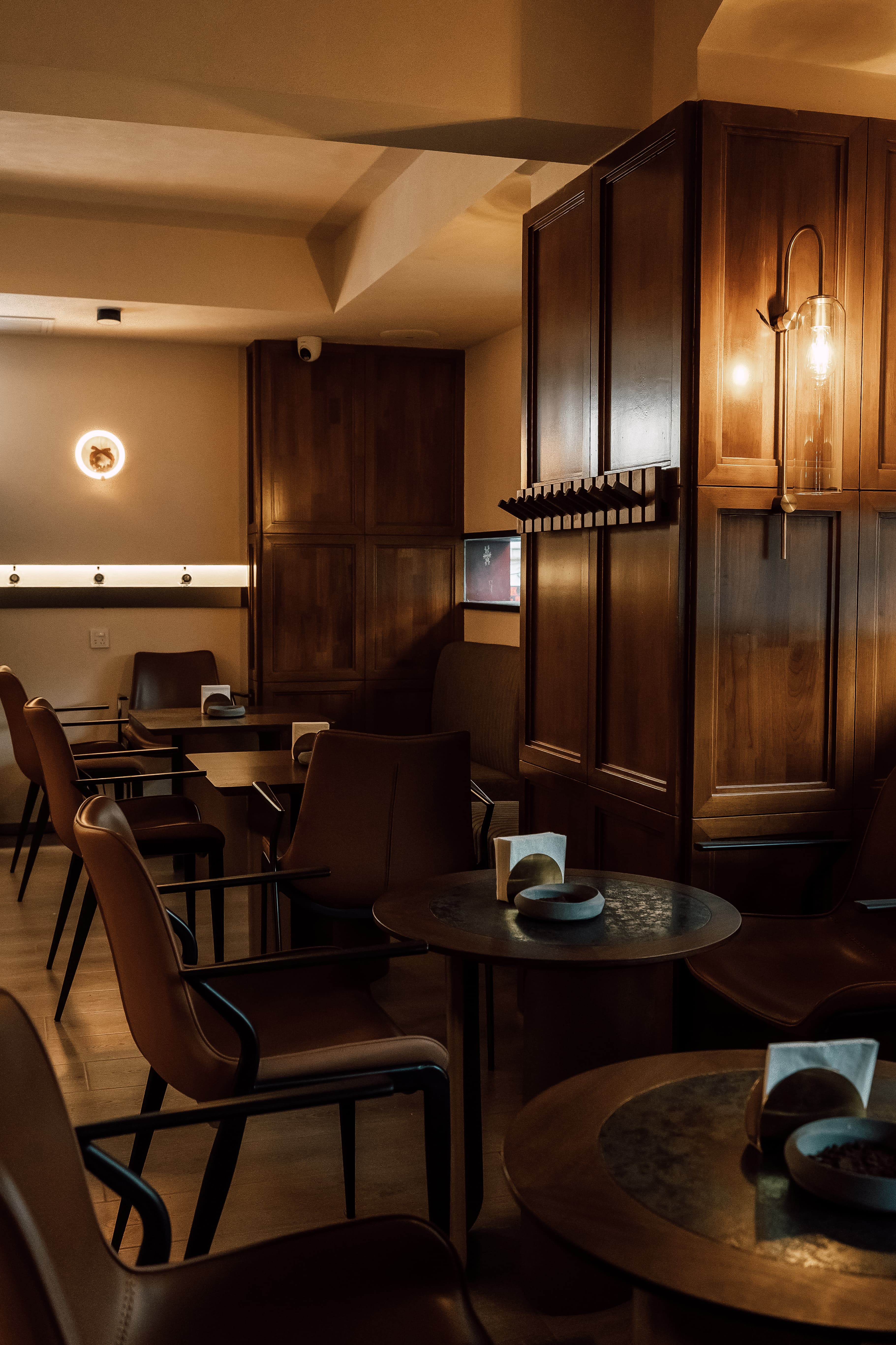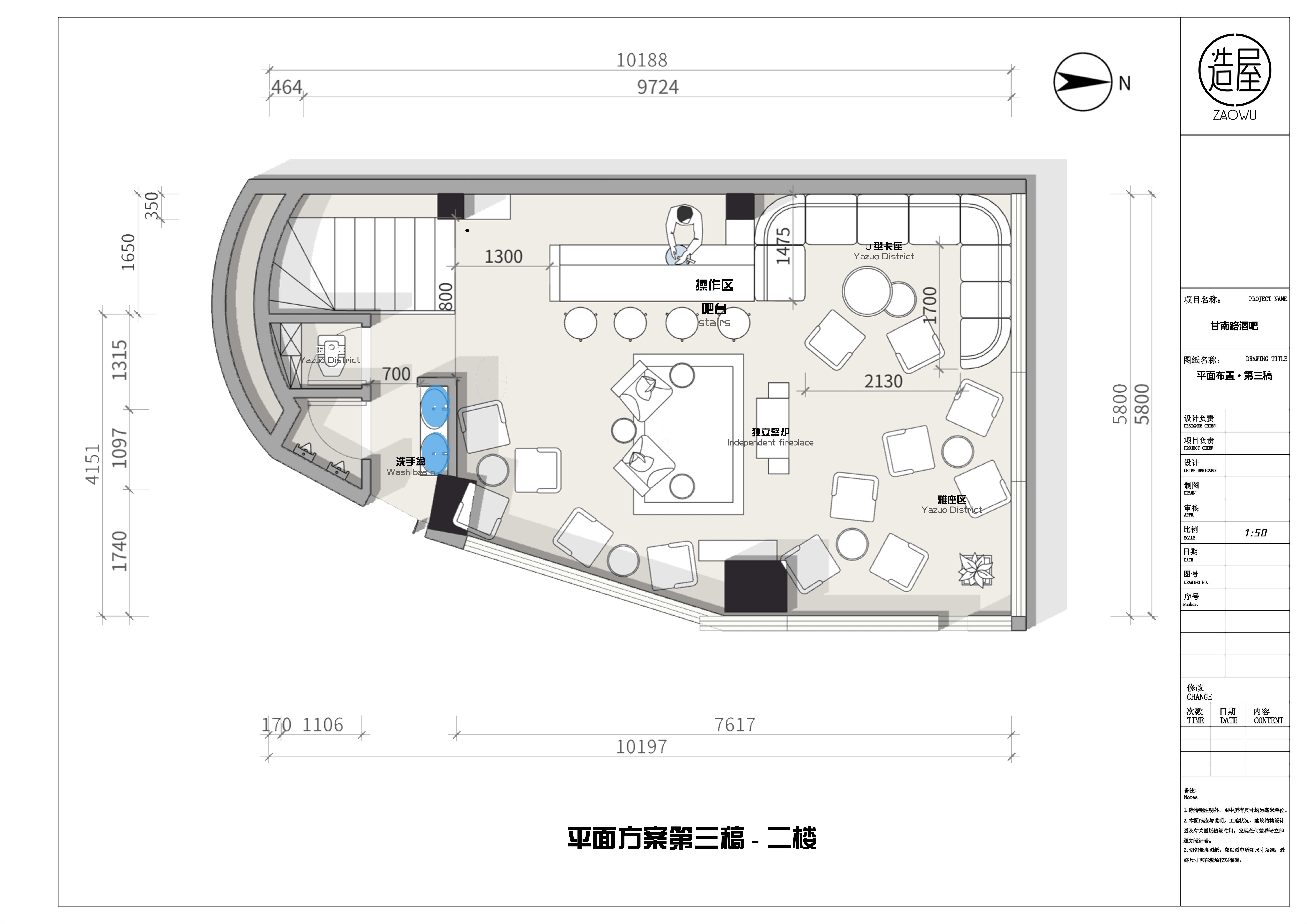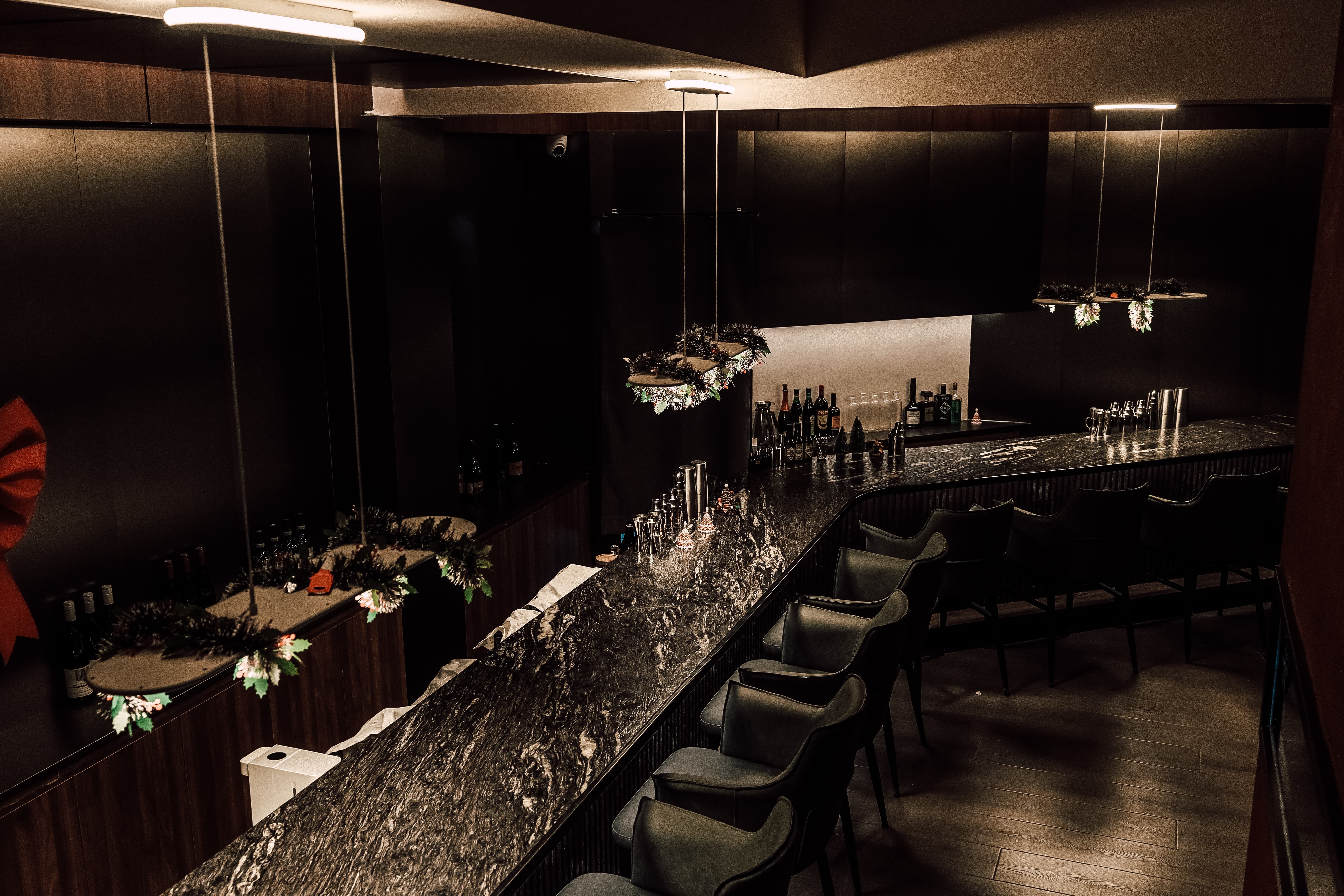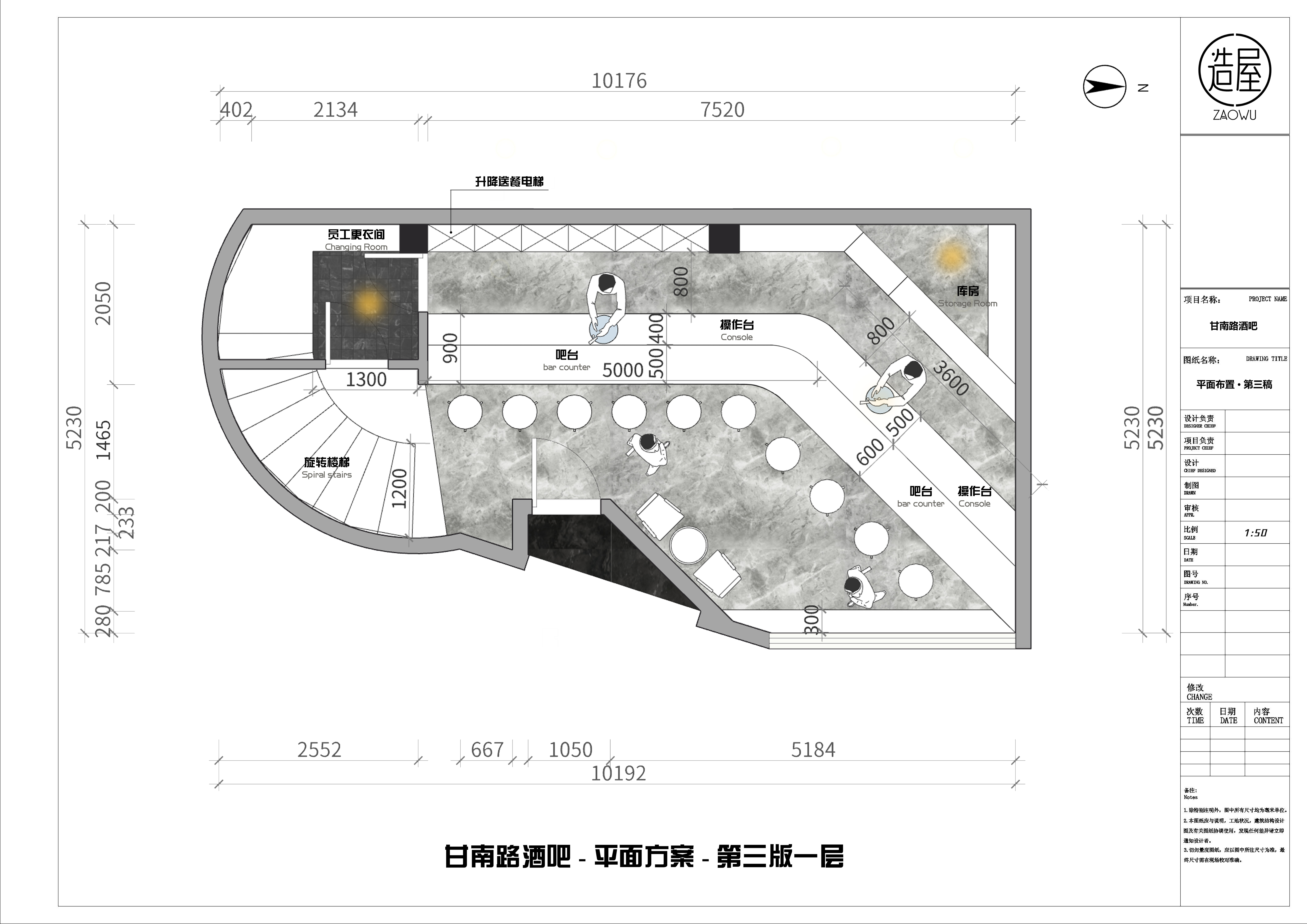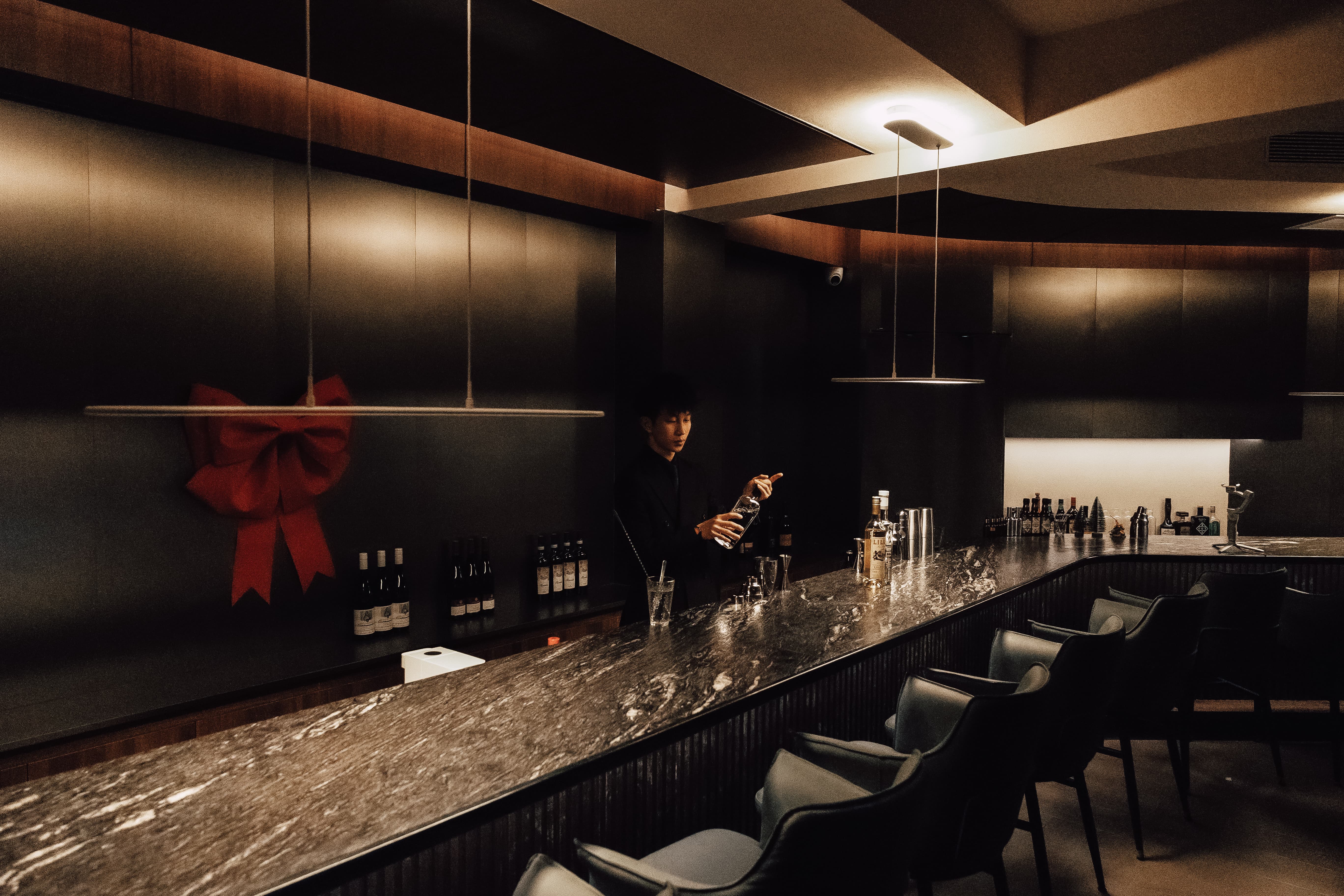 项目定位:营造出暗沉的氛围,让人心情与精神放松下来,入口采用了斜角的设计,使进店顾客与已有顾客避免了直接的接触,8米大吧台是一个亮点,丰富的功能性使调酒师能更好的完成自己的作品,顾客使用的台面达到了60公分,宽阔的台面会让顾客有种放松惬意的地方,长条形窗户是本案的设计亮点,展示出独特的艺术氛围。