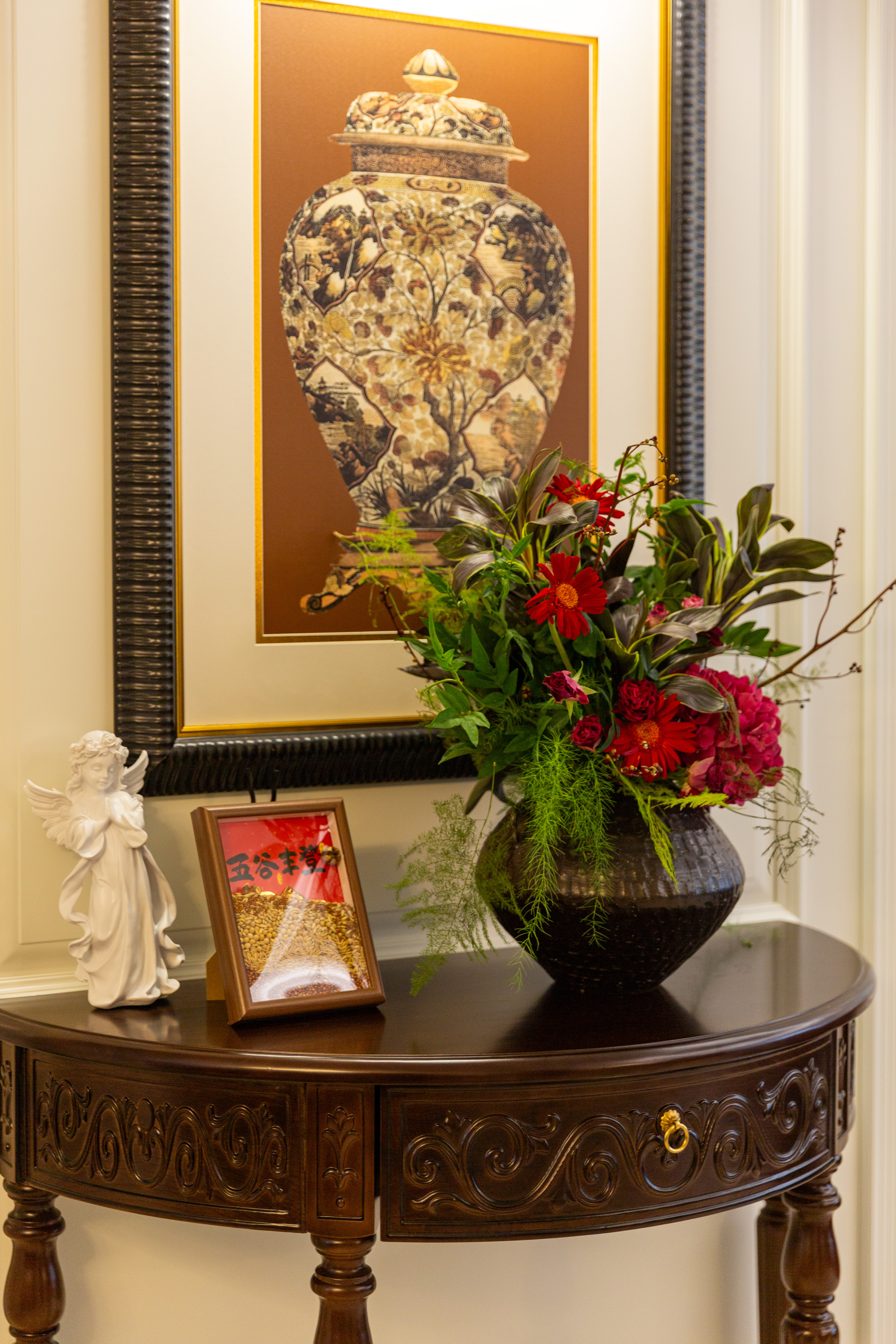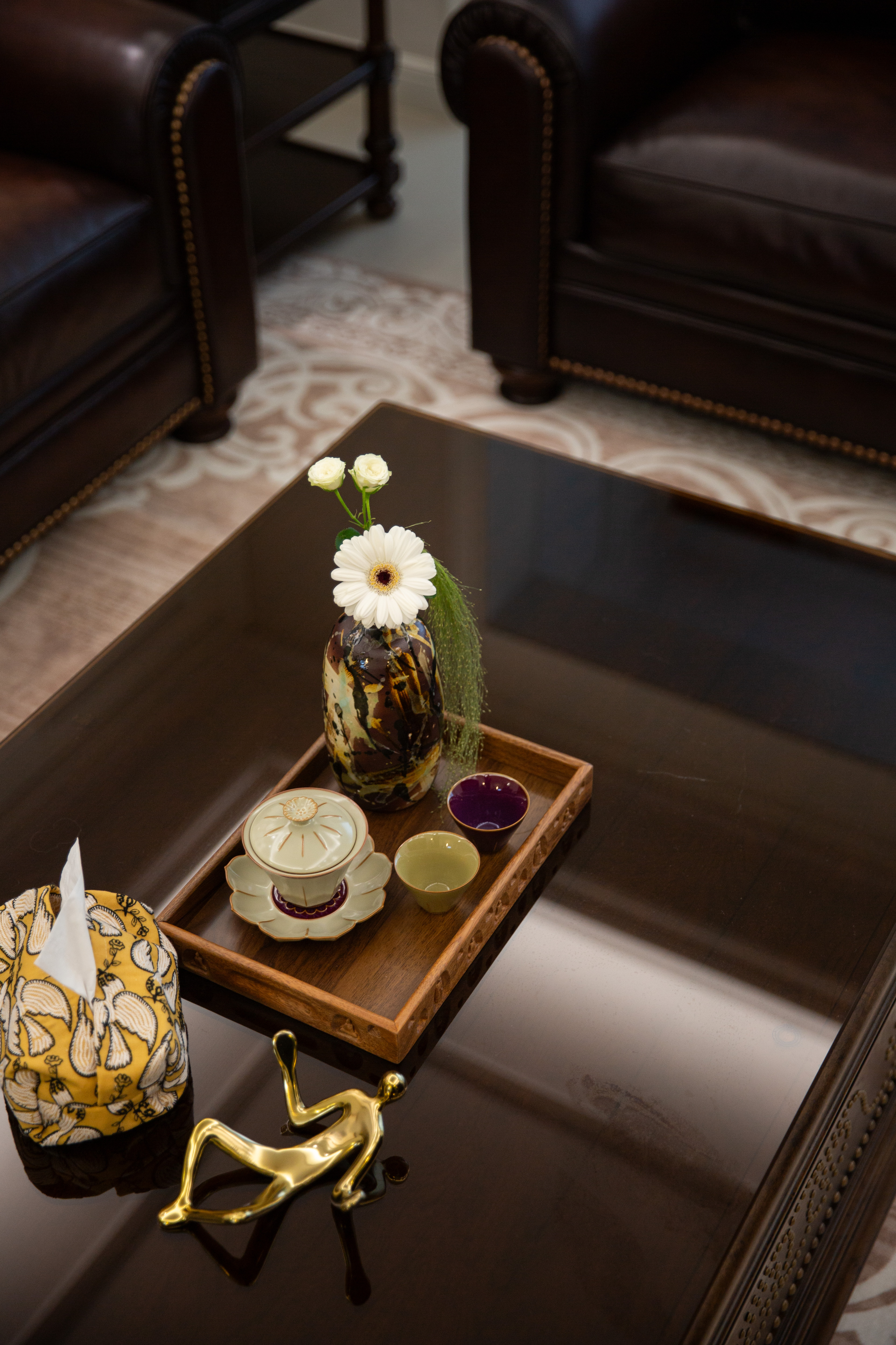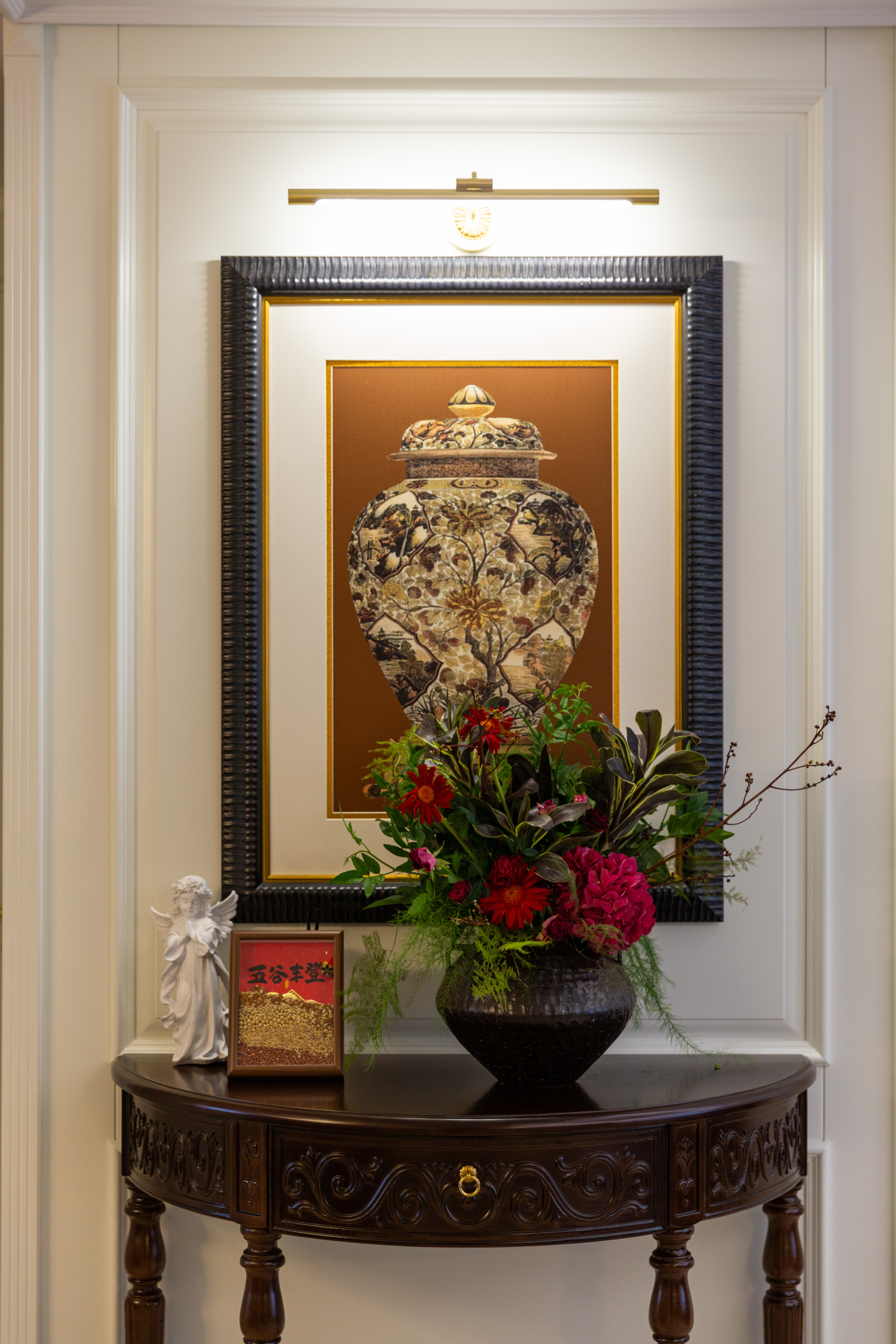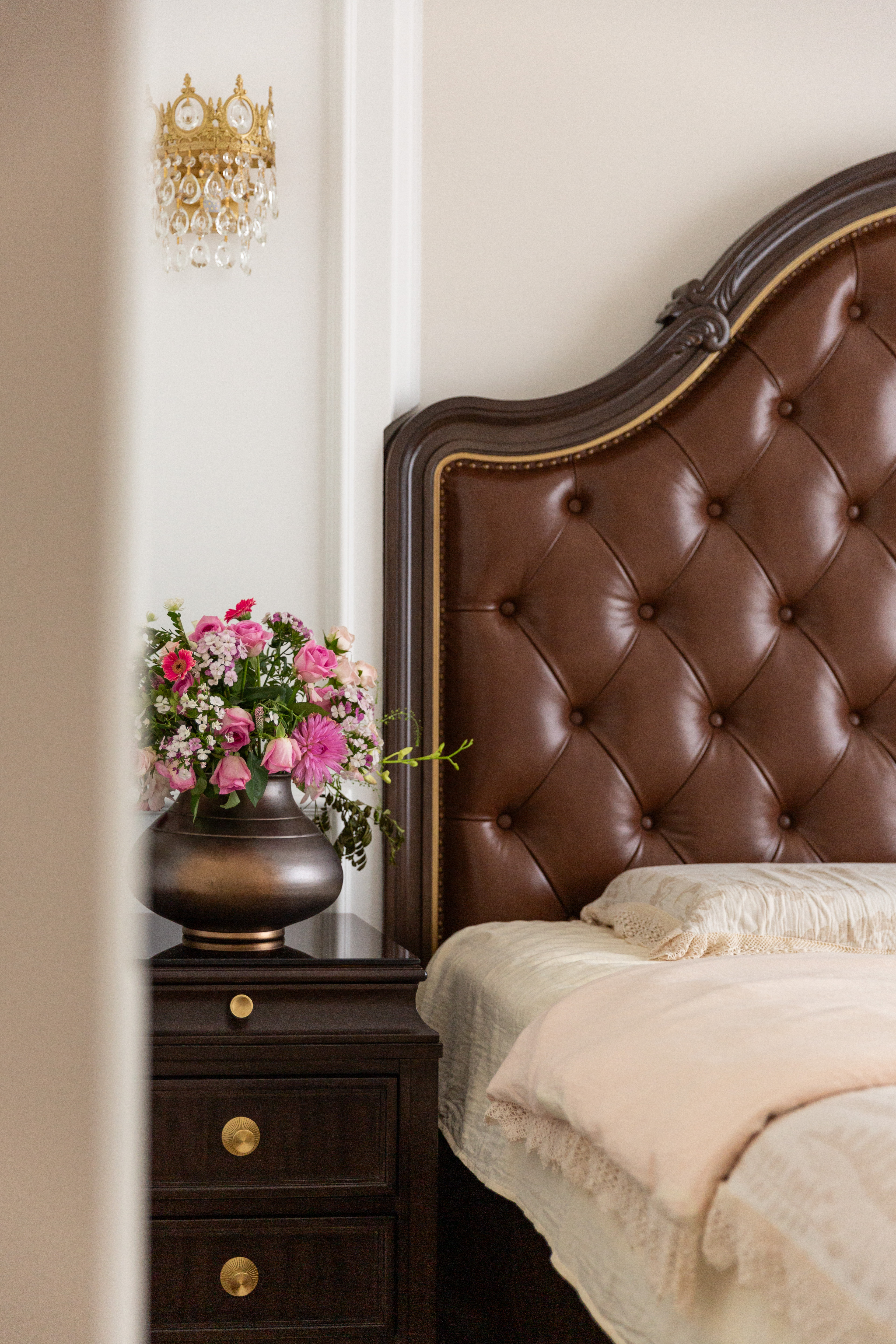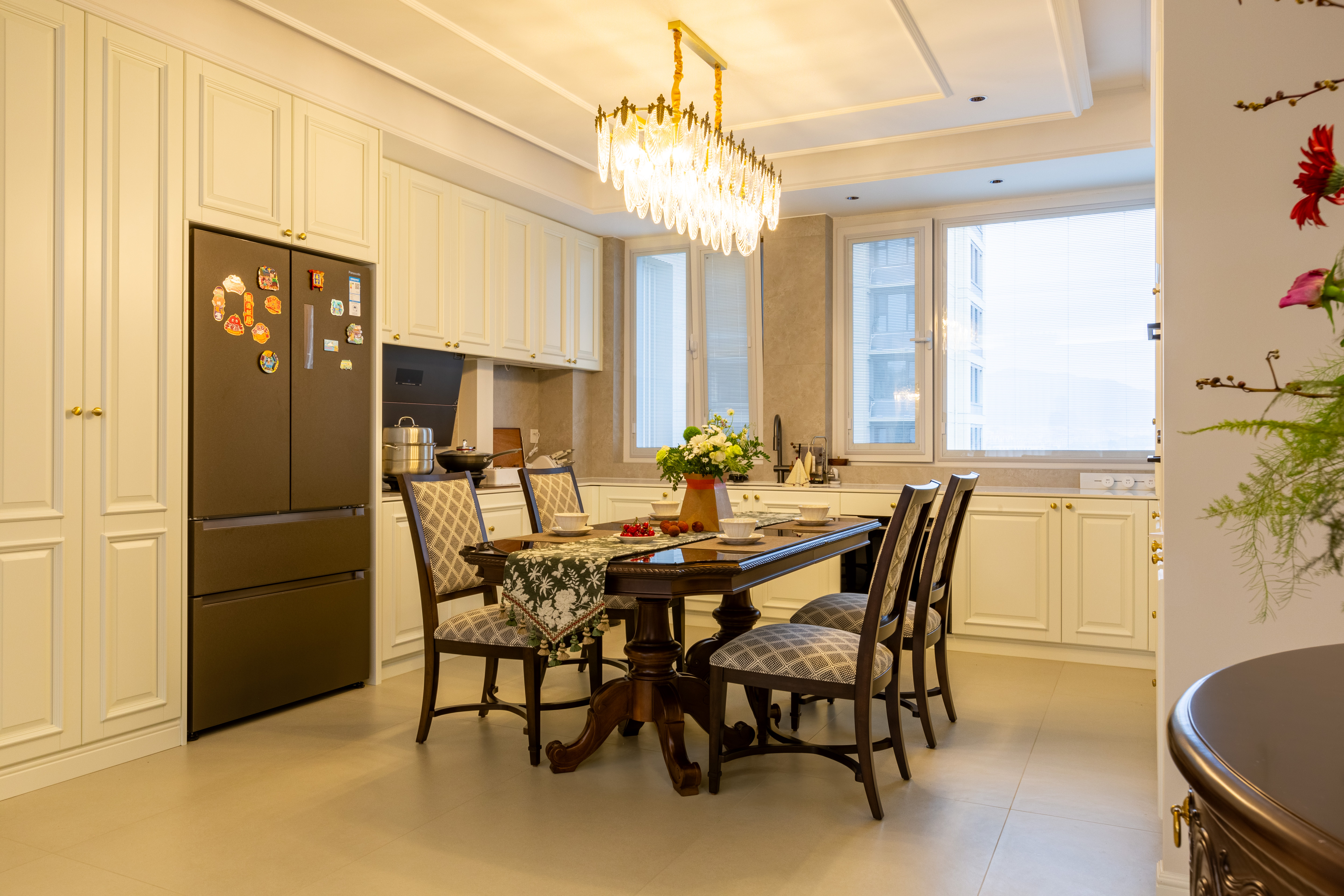 空间意境:深棕皮革与雕花实木碰撞,水晶光影交织复古软装,勾勒出“复古而不陈旧、轻奢而不浮夸”的美式诗意场景,让居家时光满是雅致仪式感。